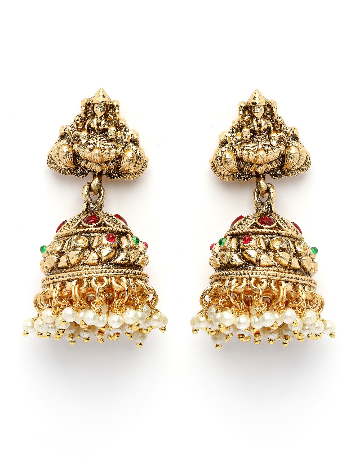 Karatcart Elegant Gold Plated Laxmi Mata Engraved Jhumki Earrings for Women