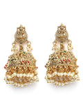 Karatcart Traditional Gold Plated Temple Jhumka Earrings with Laxmi Mata and Pearl Drops for Women