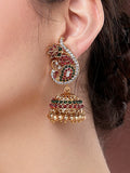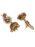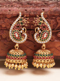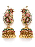 Karatcart Red and Green Gold Plated Peacock Design Jhumki Earrings for Women