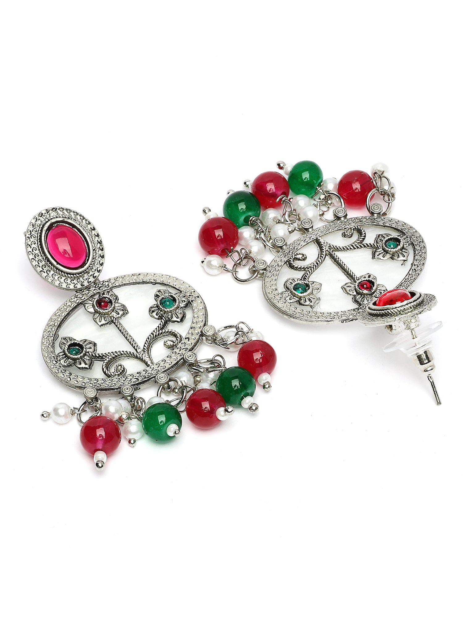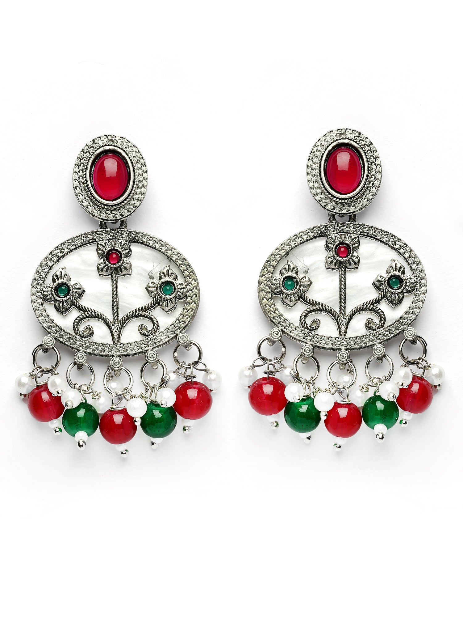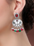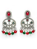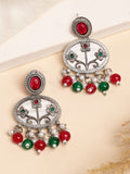 Karatcart Designer Oxidized Silver Red & Green Floral Embellishments Dangler Earrings for Women