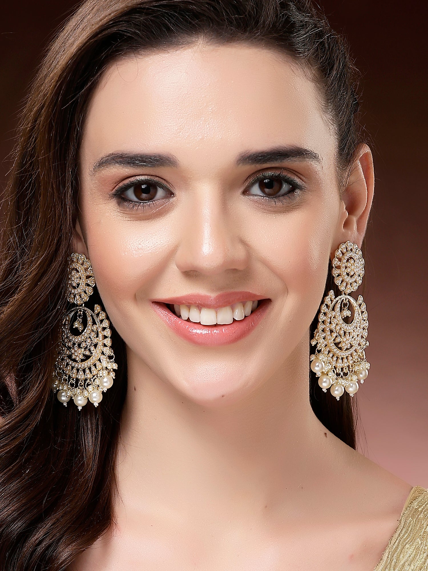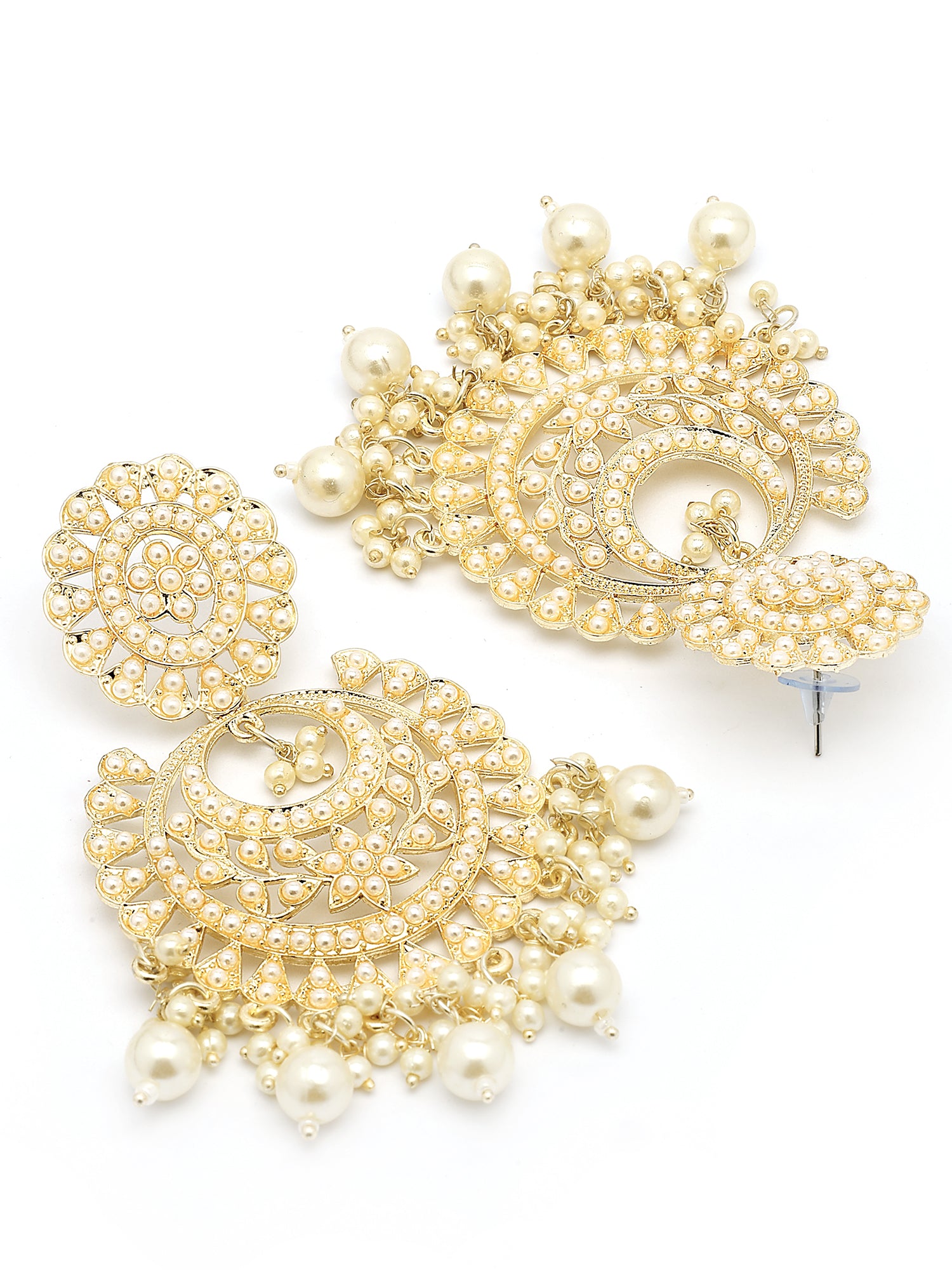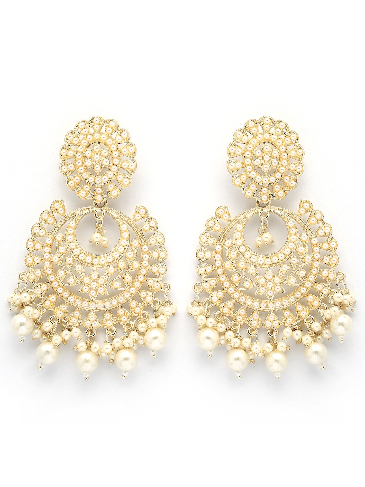 Karatcart Designer Gold-Plated Pearl-Studded Chandbali Earrings for Women