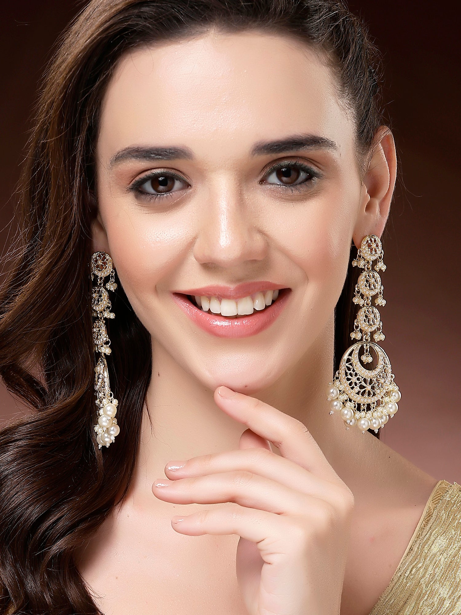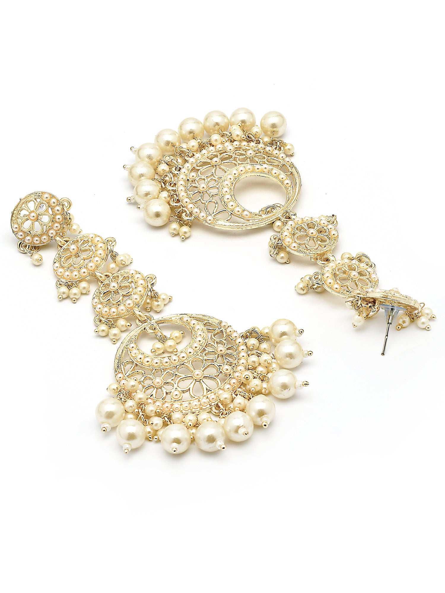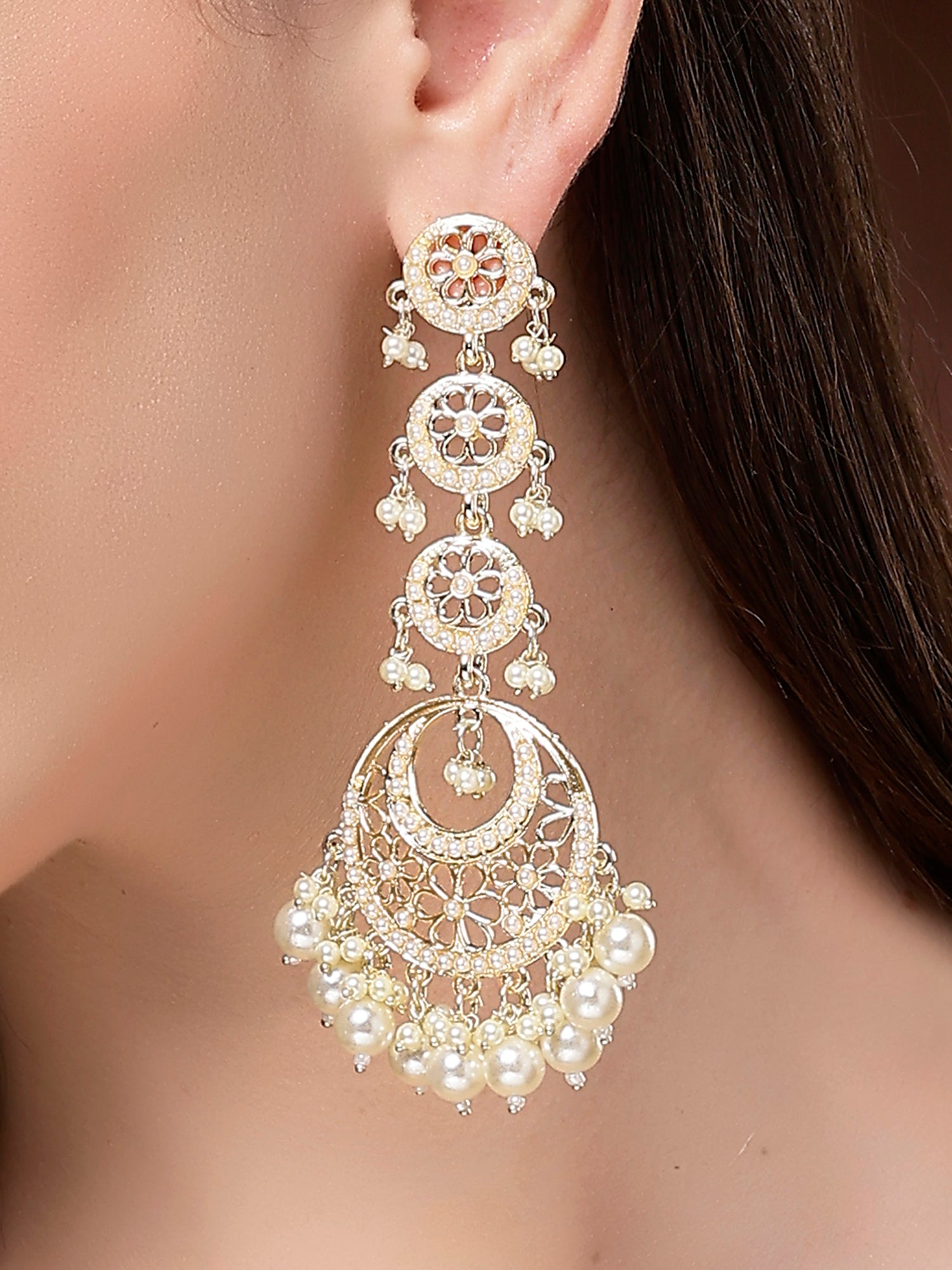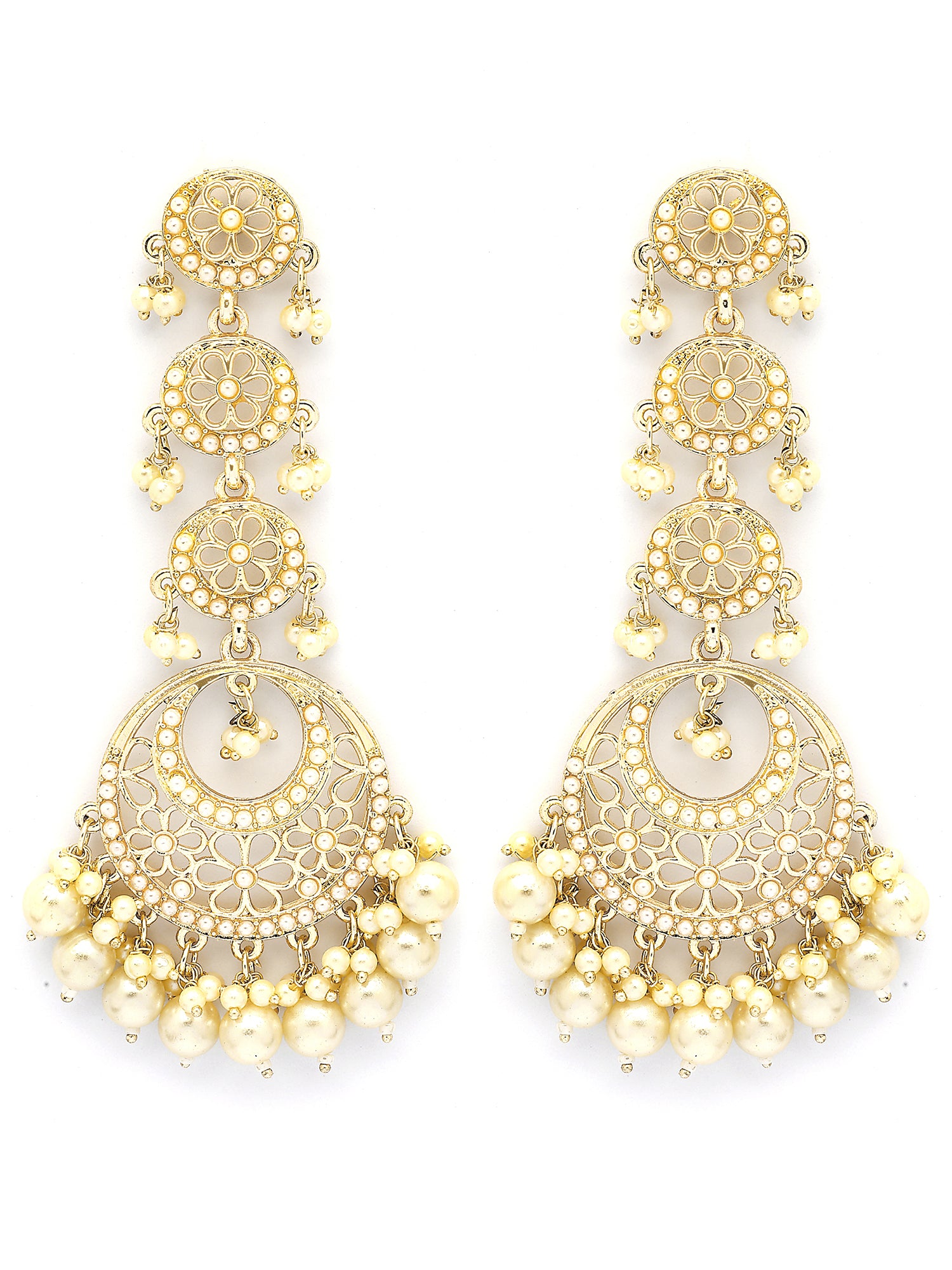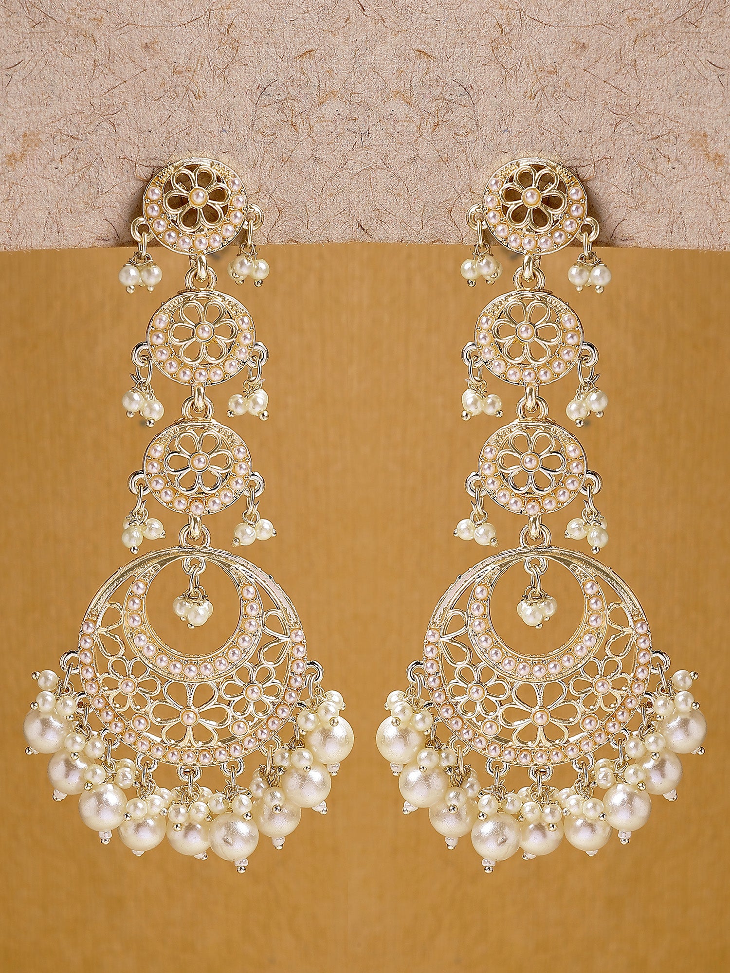 Karatcart Designer Gold-Plated Multi-Tier Pearl Studded Dangler Earrings for Women