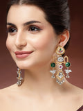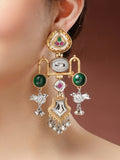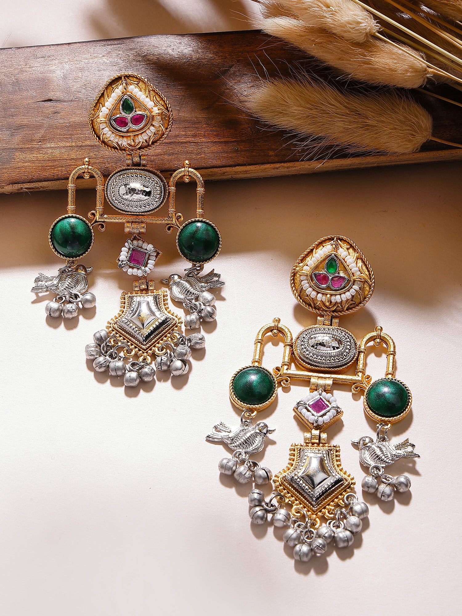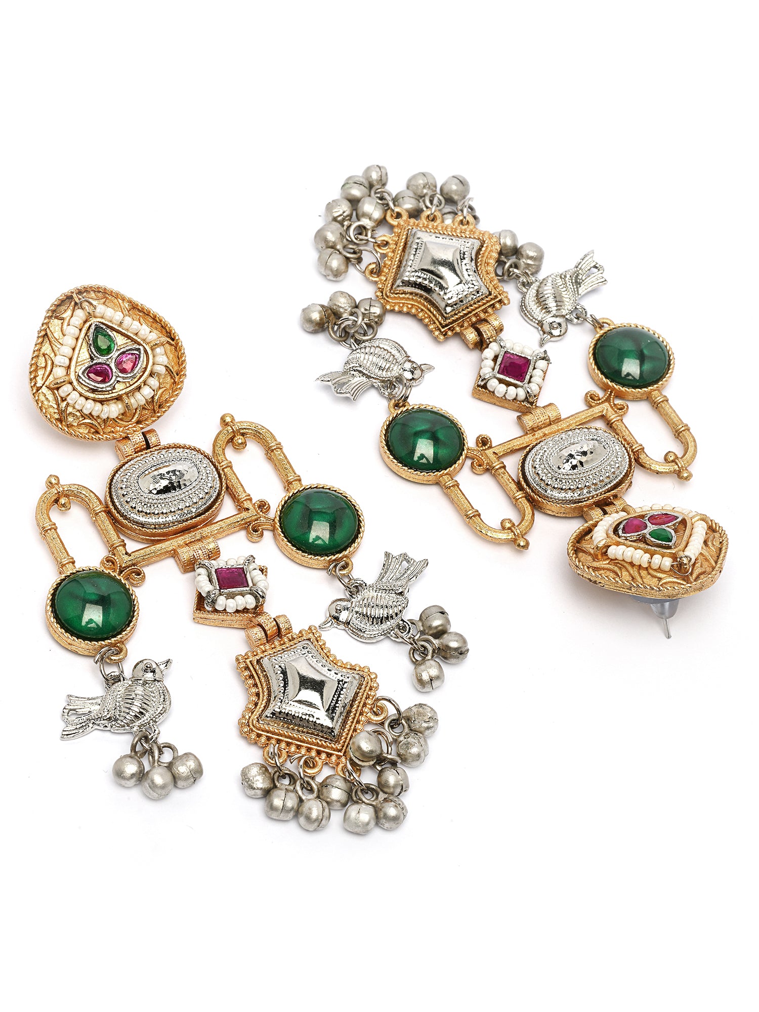 Karatcart Ethnic Gold and Silver Plated Green Stone Dual-Tone Bird Motif Dangler Earrings for Women