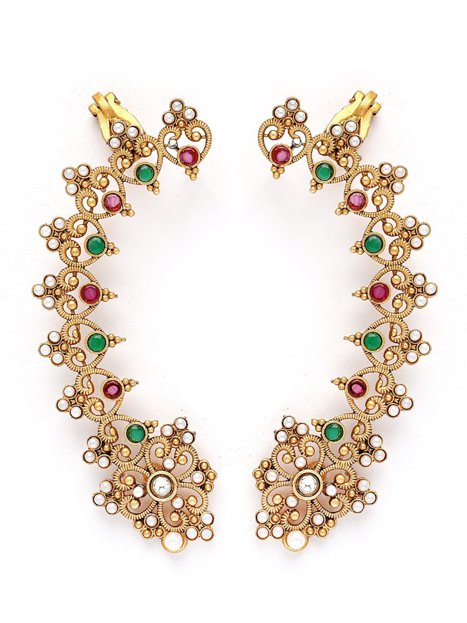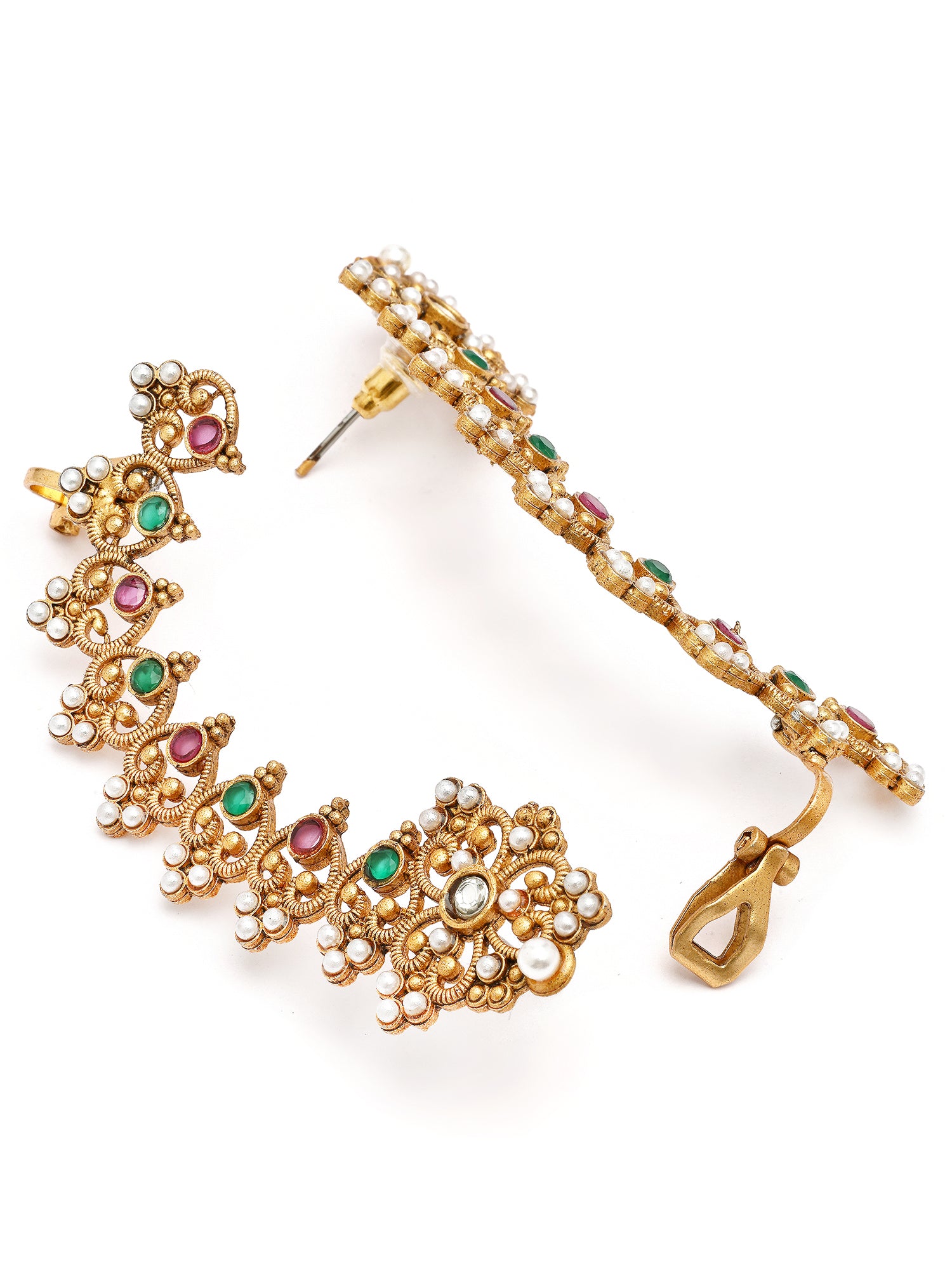 KARATCART Ethnic Gold-Plated Cuff Earrings with Multicolor Stones for Women