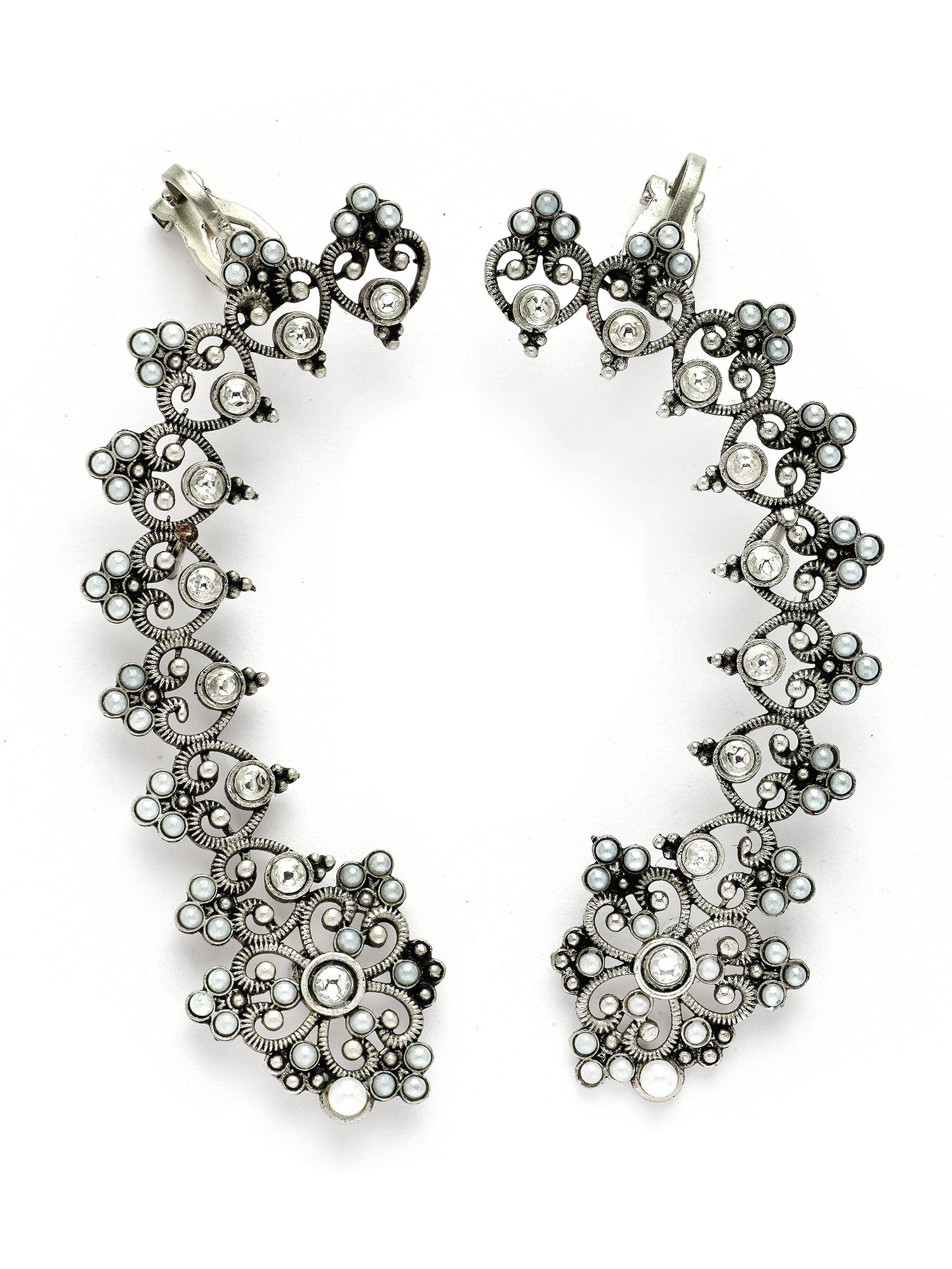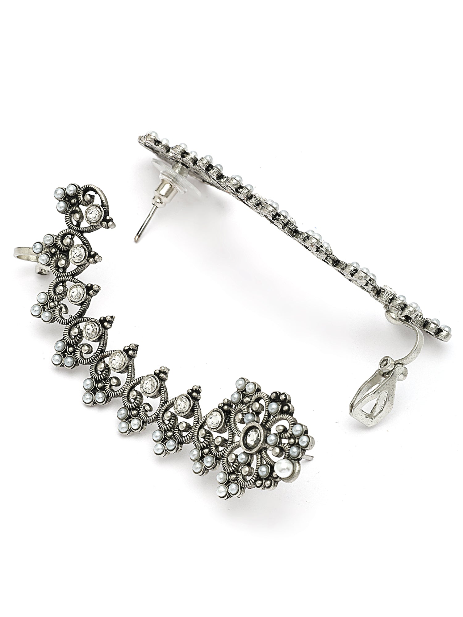 KARATCART Oxidised Silver Cuff Earrings with Multicolor Stones for Women