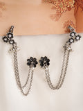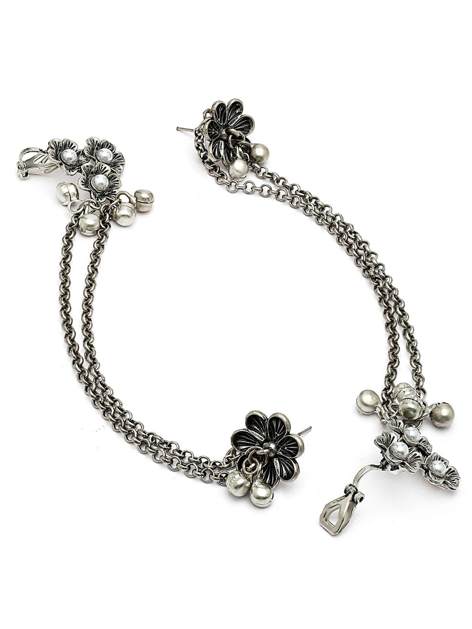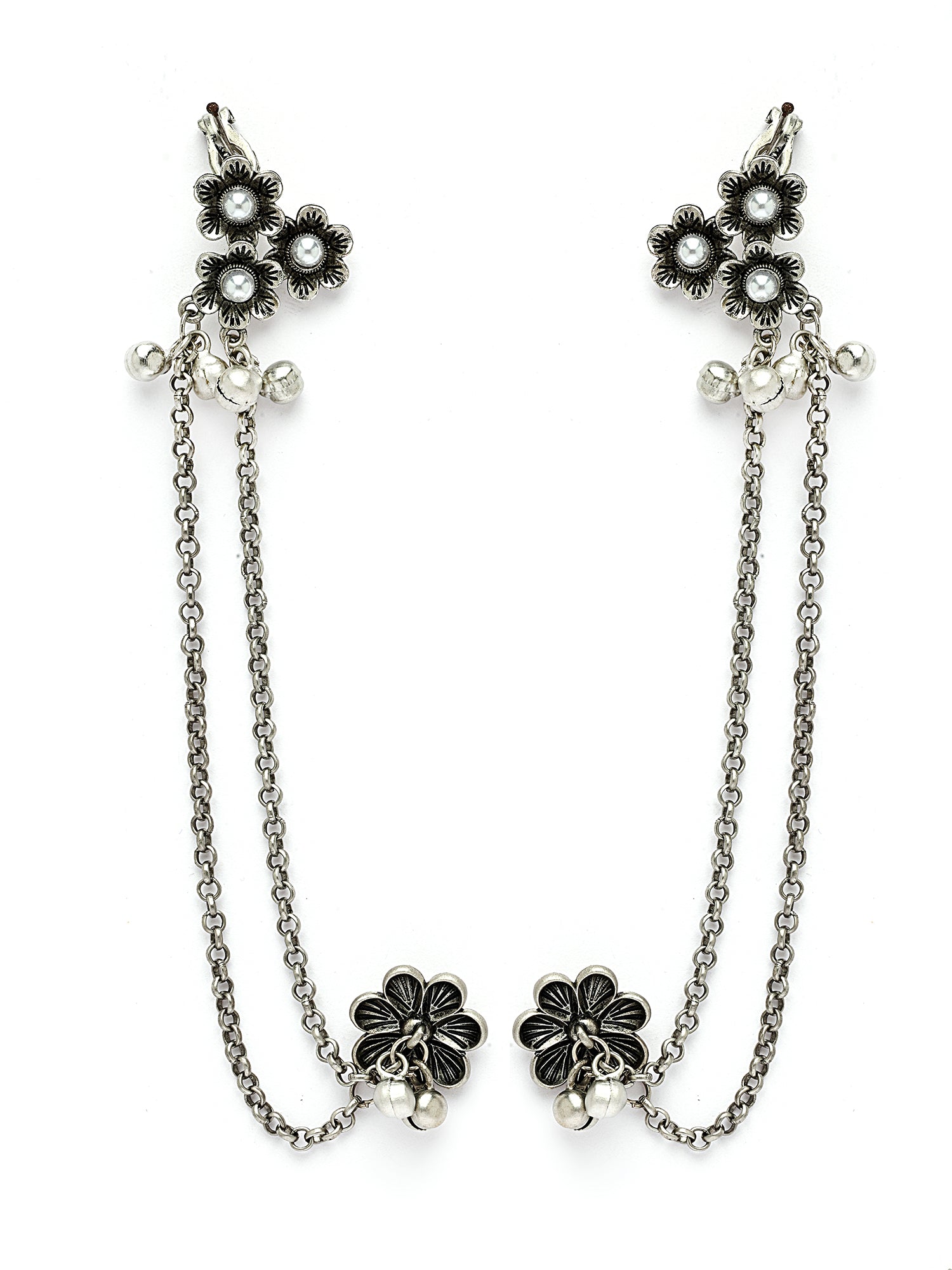 KARATCART Elegant Oxidized Silver Chain Cuff Earrings with Floral Design for Women