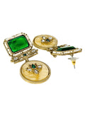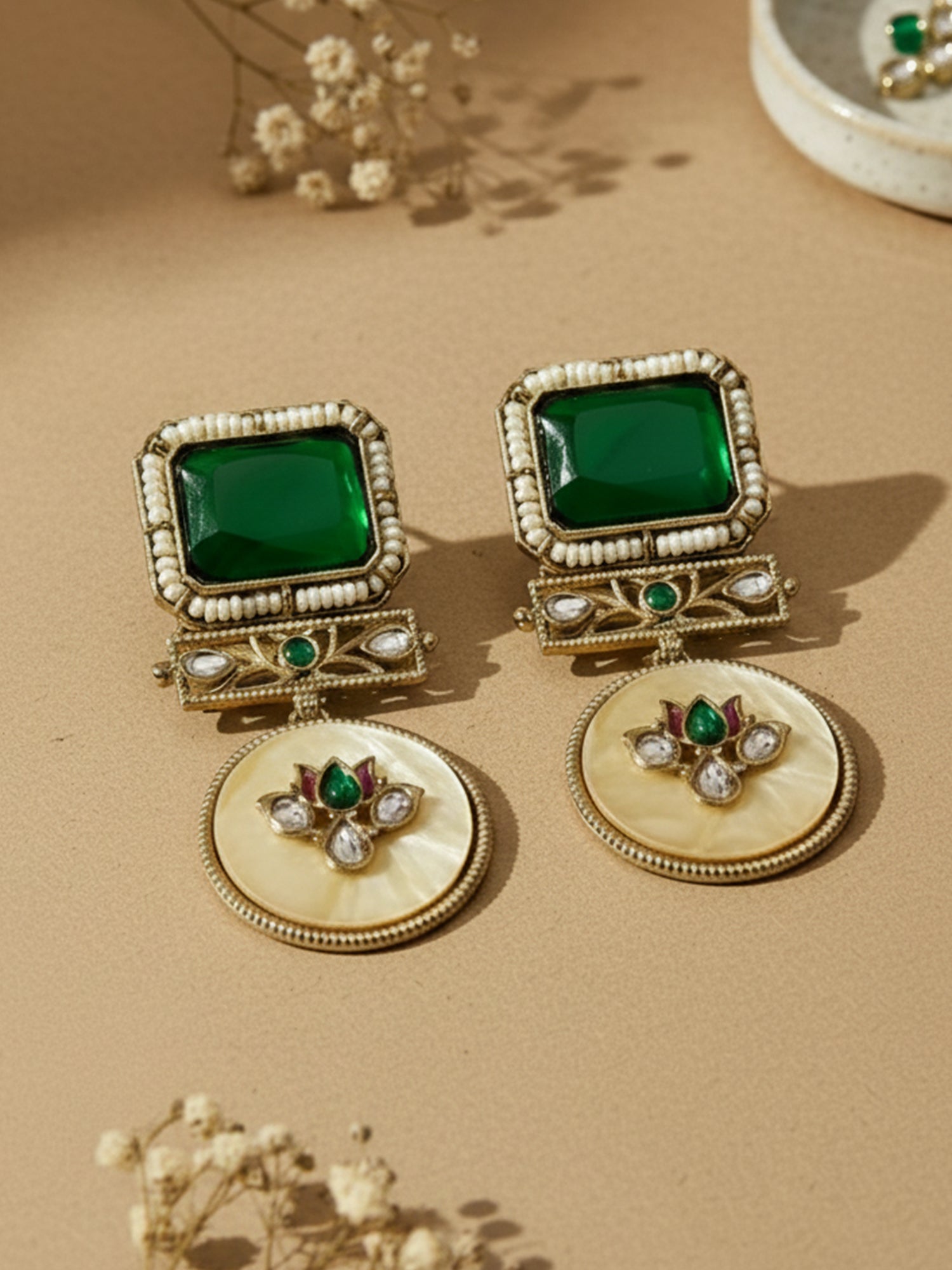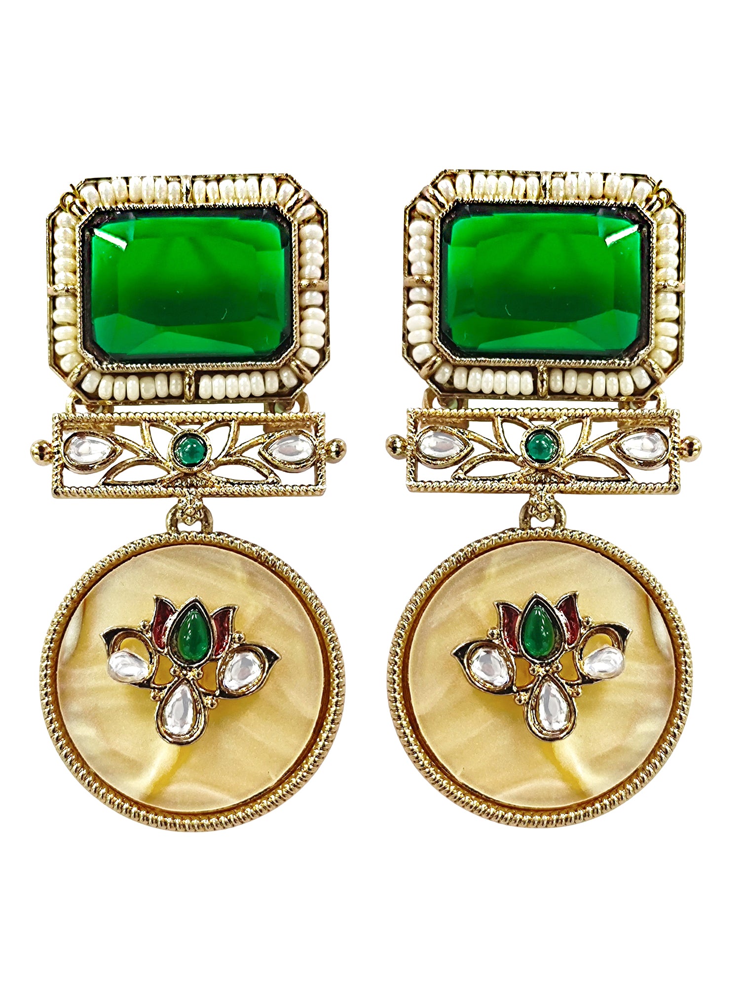 KARATCART Traditional Gold-Plated Green Stone Lotus Drop Earrings for Women