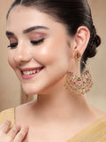 KARATCART Gold-Plated Red and Green Stone Temple Chandbali Earrings for Women