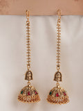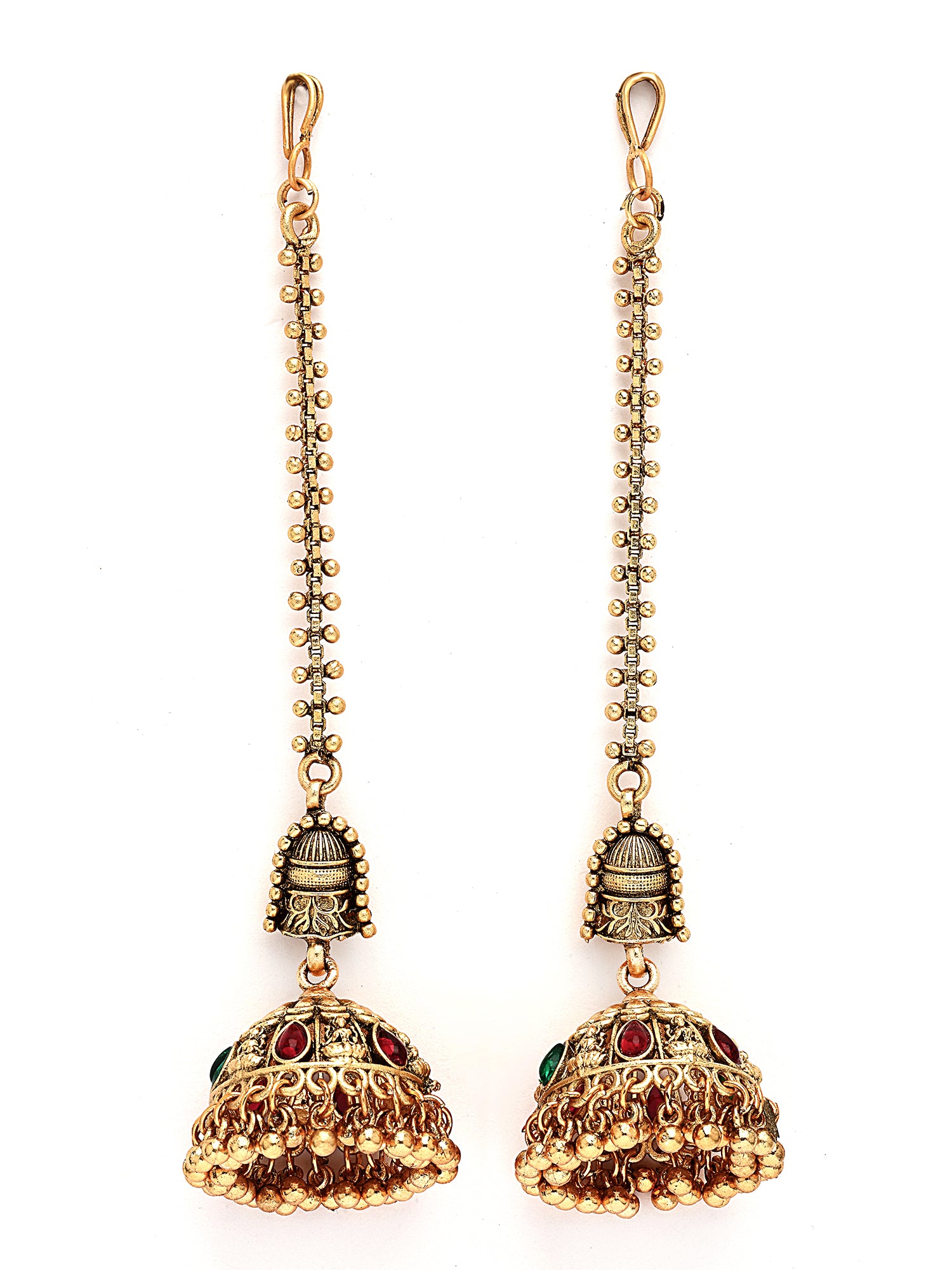 KARATCART Designer Gold-Plated Temple-Inspired Jhumka Earrings with Kaanchain for Women