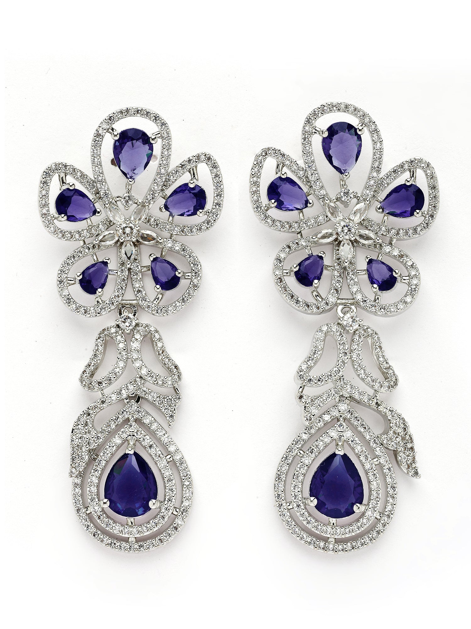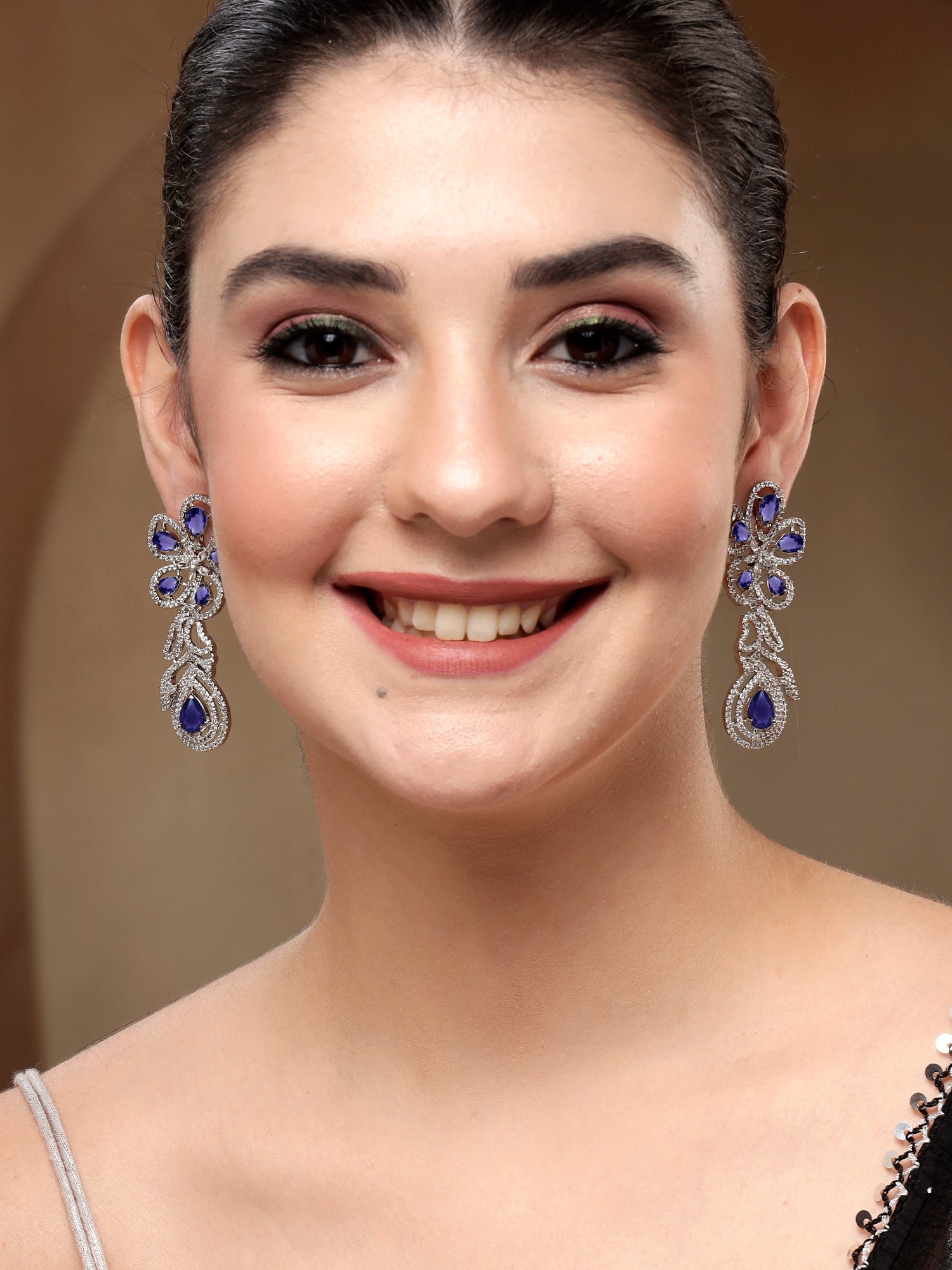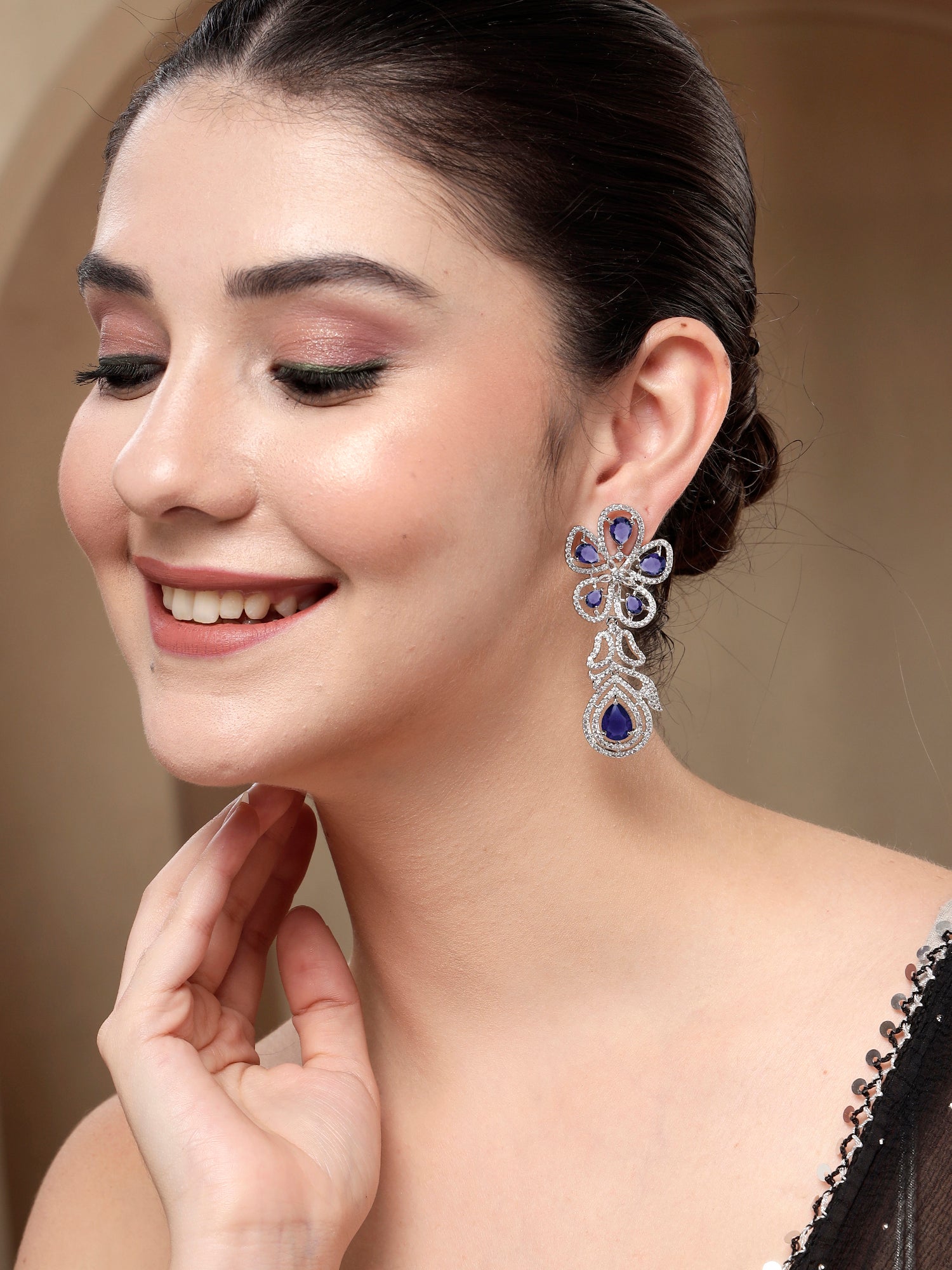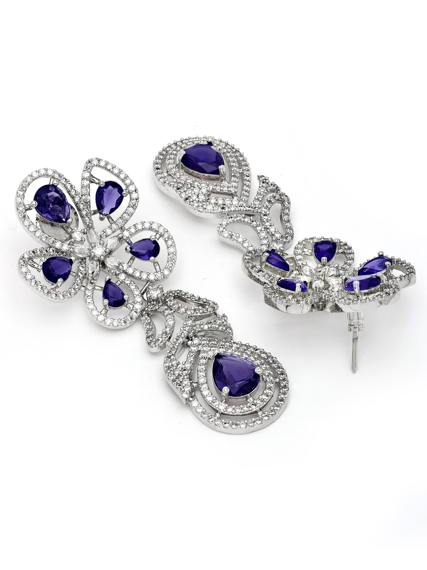 KARATCART Floral Purple American Diamond Silver-Plated Premium Drop Earrings for Women