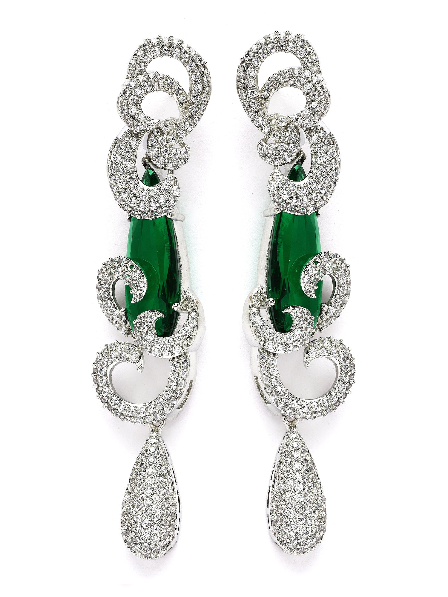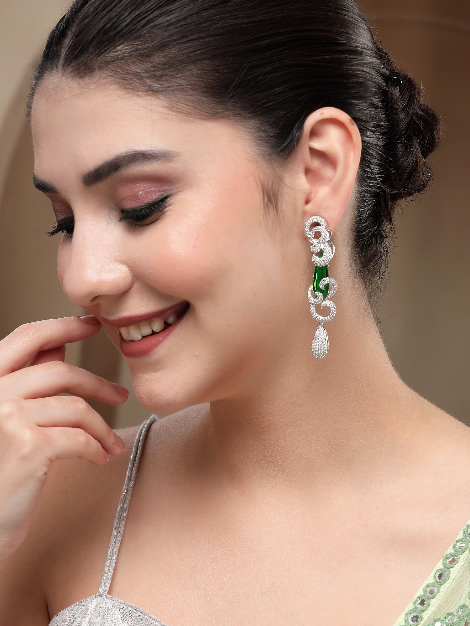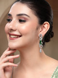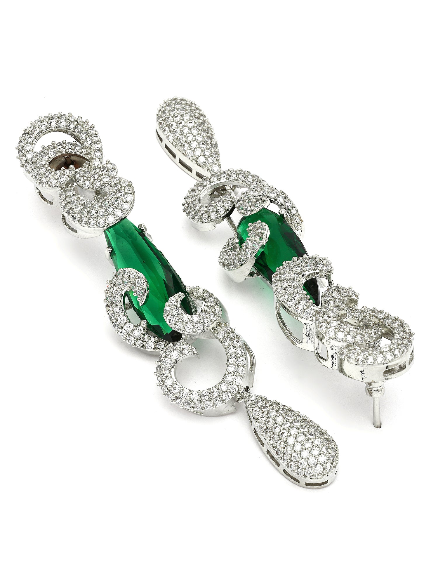 KARATCART Designer Green Teardrop American Diamond Silver-Plated Drop Earrings for Women