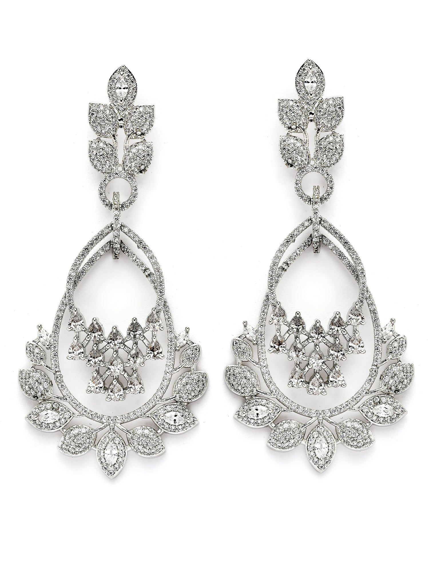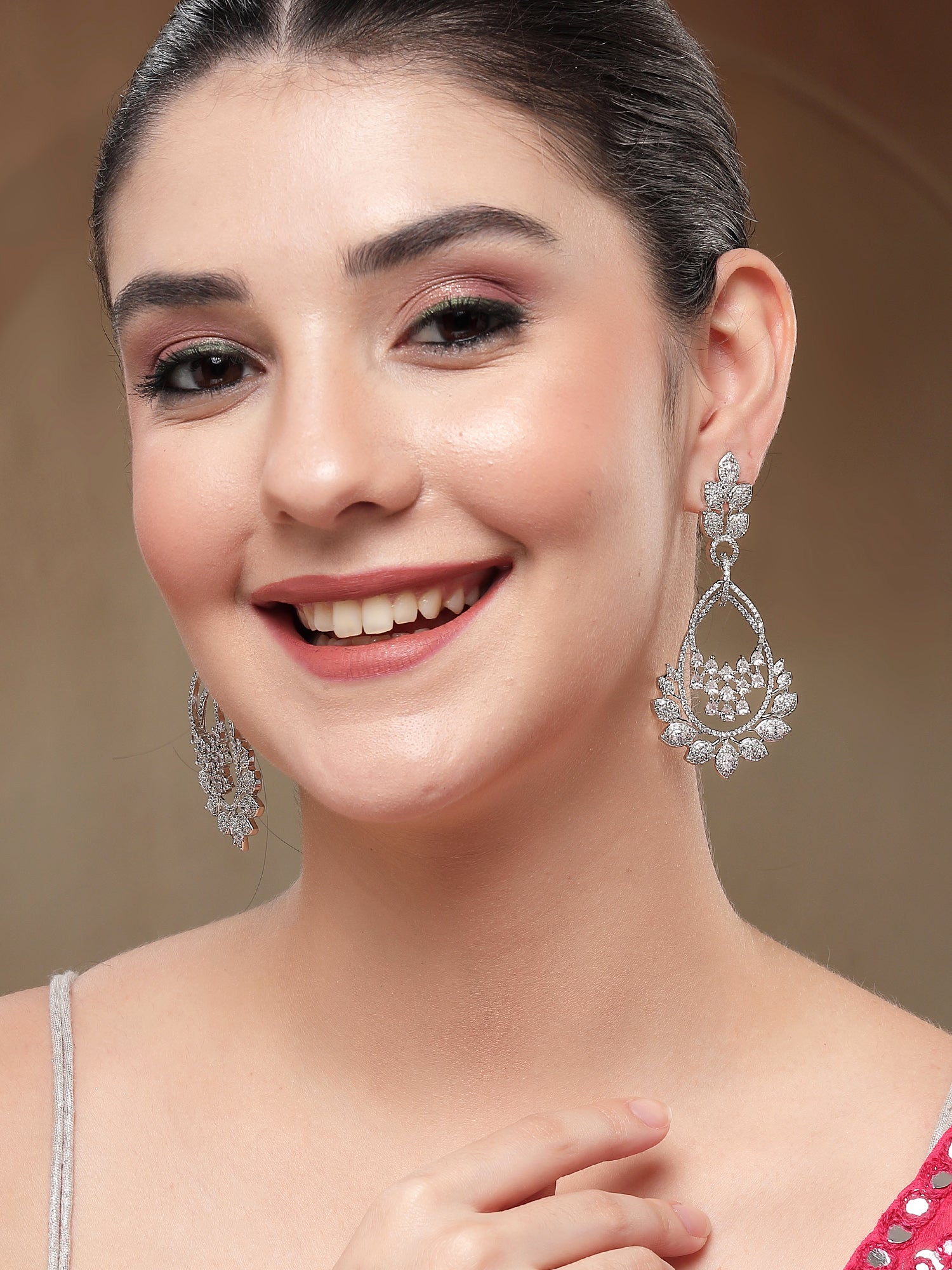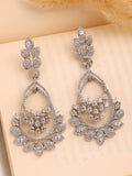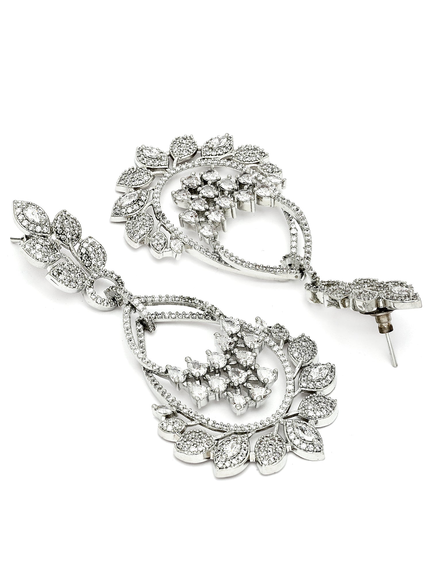 KARATCART Stunning Silver Finish American Diamond Leaf Dangler Earrings for Women