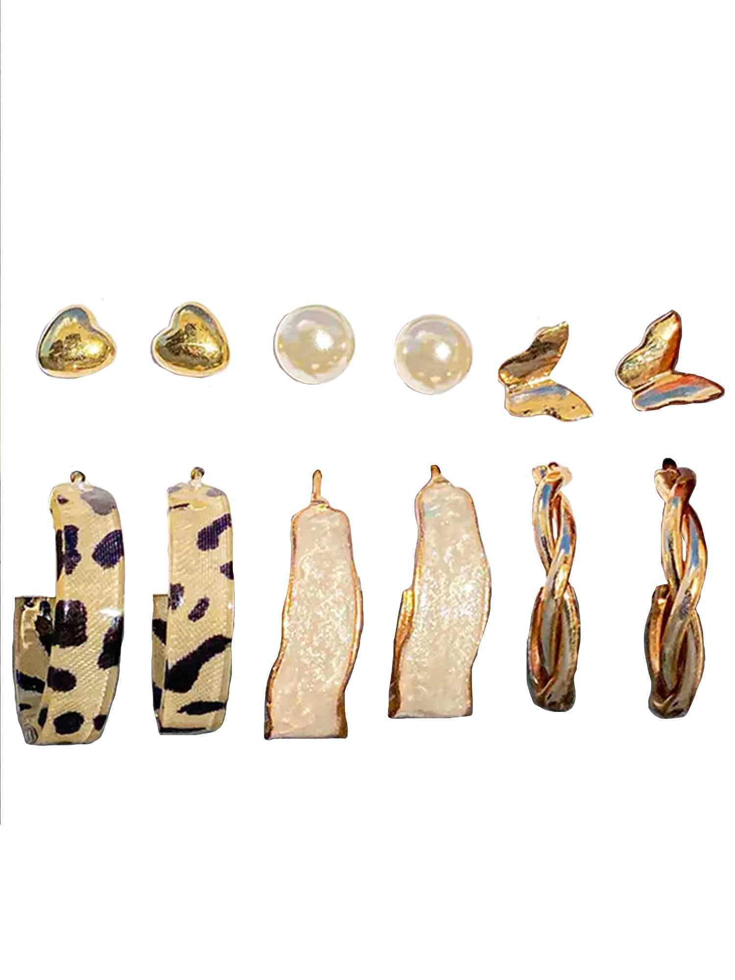 Bohey by KARATCART Fashion White Hoops Gold Plated Combo of 6 Pairs Earring Set for Women