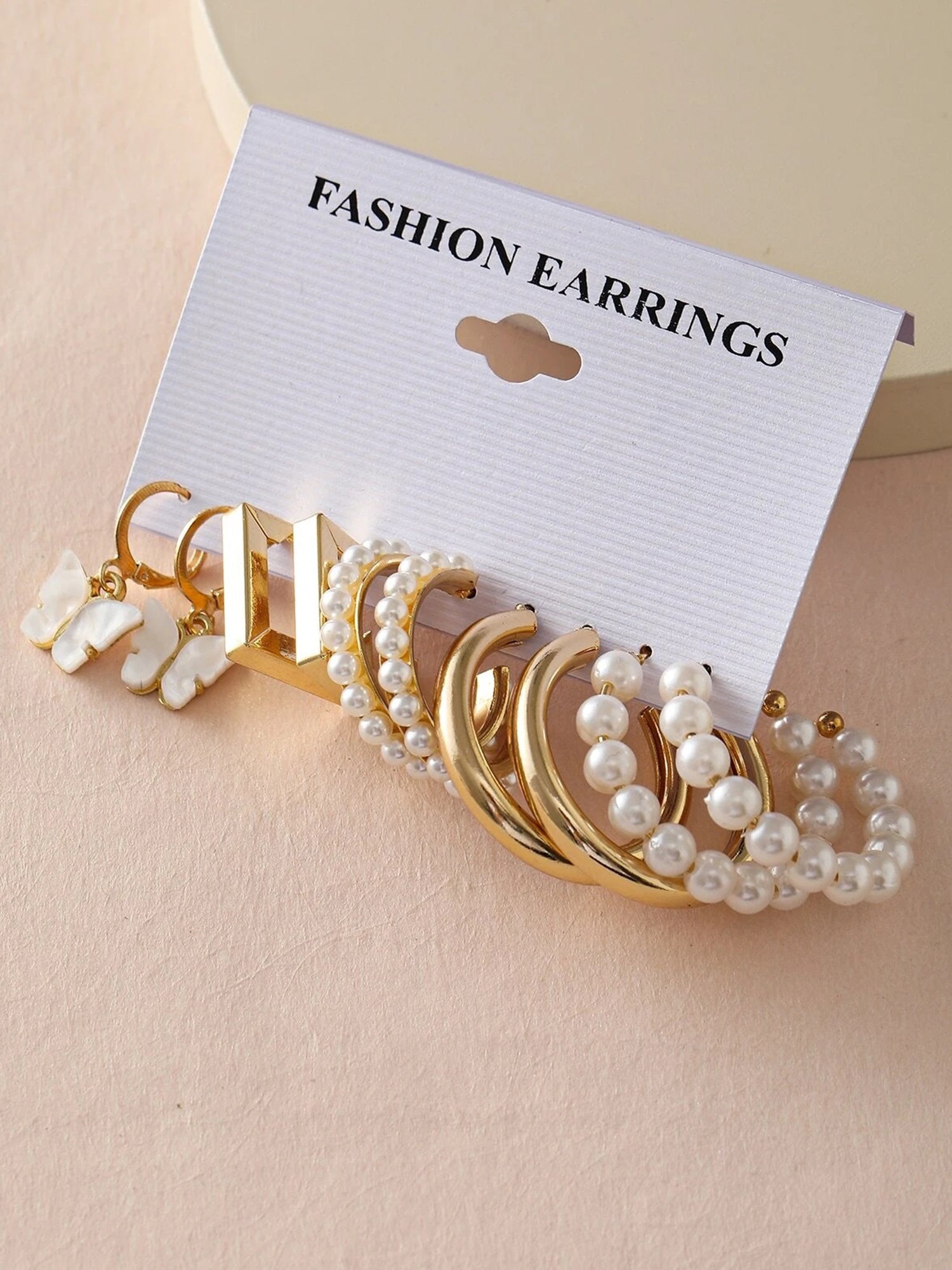 Bohey by KARATCART Set of 5 Gold-Plated Contemporary Hoop Earrings for Women