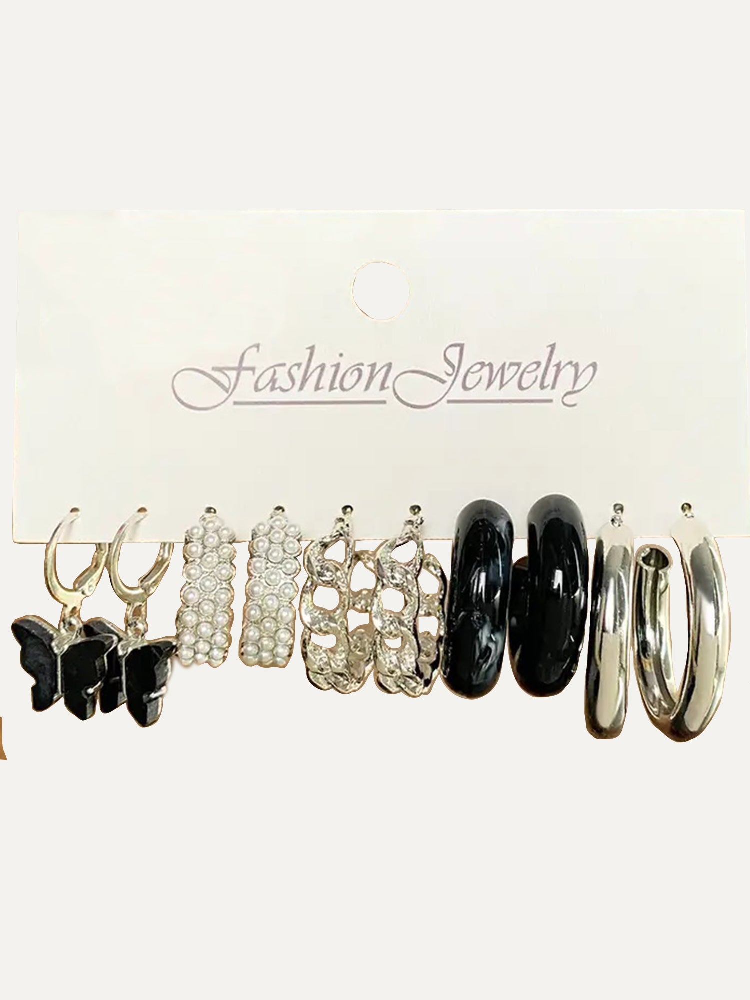 Bohey by KARATCART Set of 5 Pairs Silver Tone Multicolor Hoop Earrings for Women