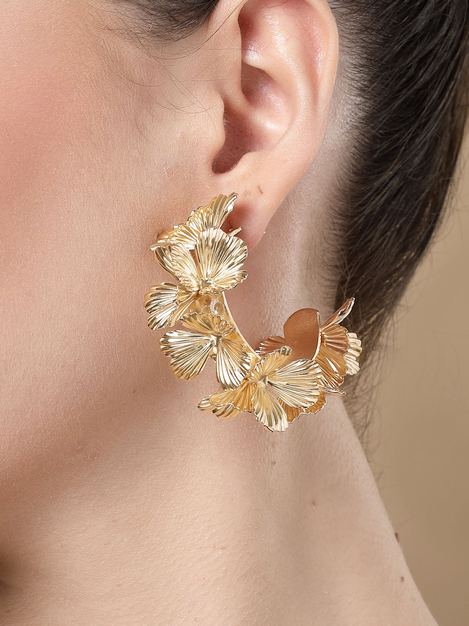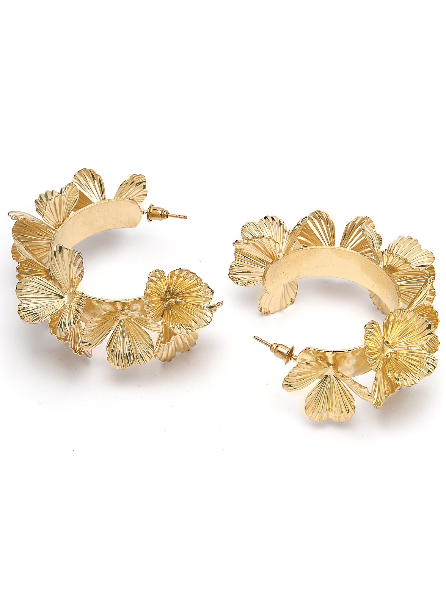 Bohey by KARATCART Floral Design Gold Plated Half Hoop Earrings