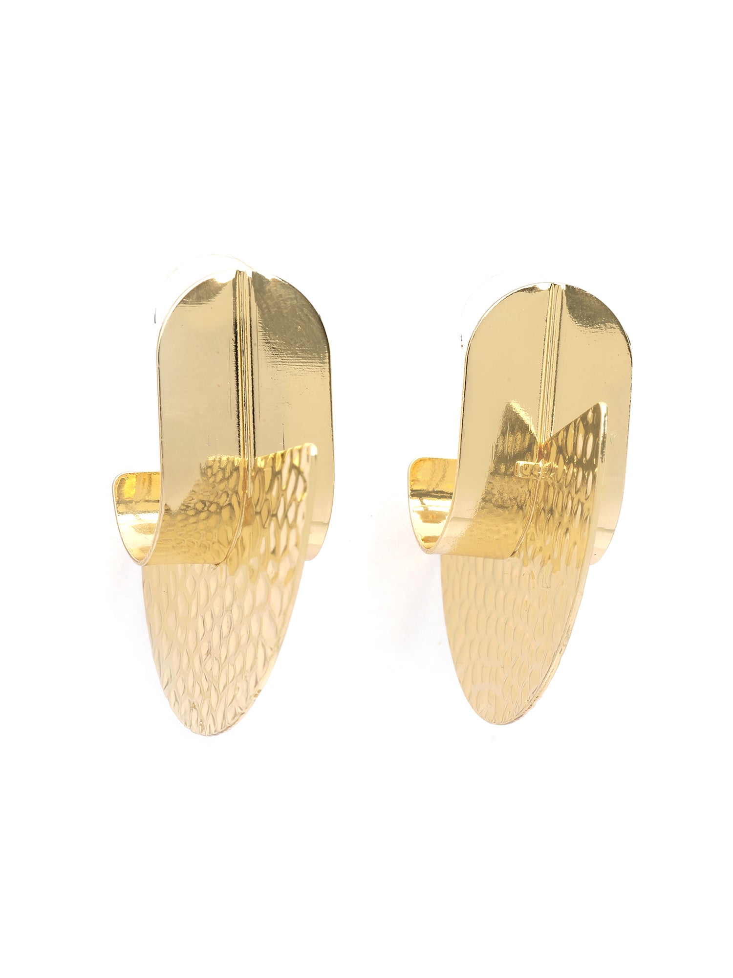Bohey by KARATCART Gold Plated Hammered Half Hoop Earrings