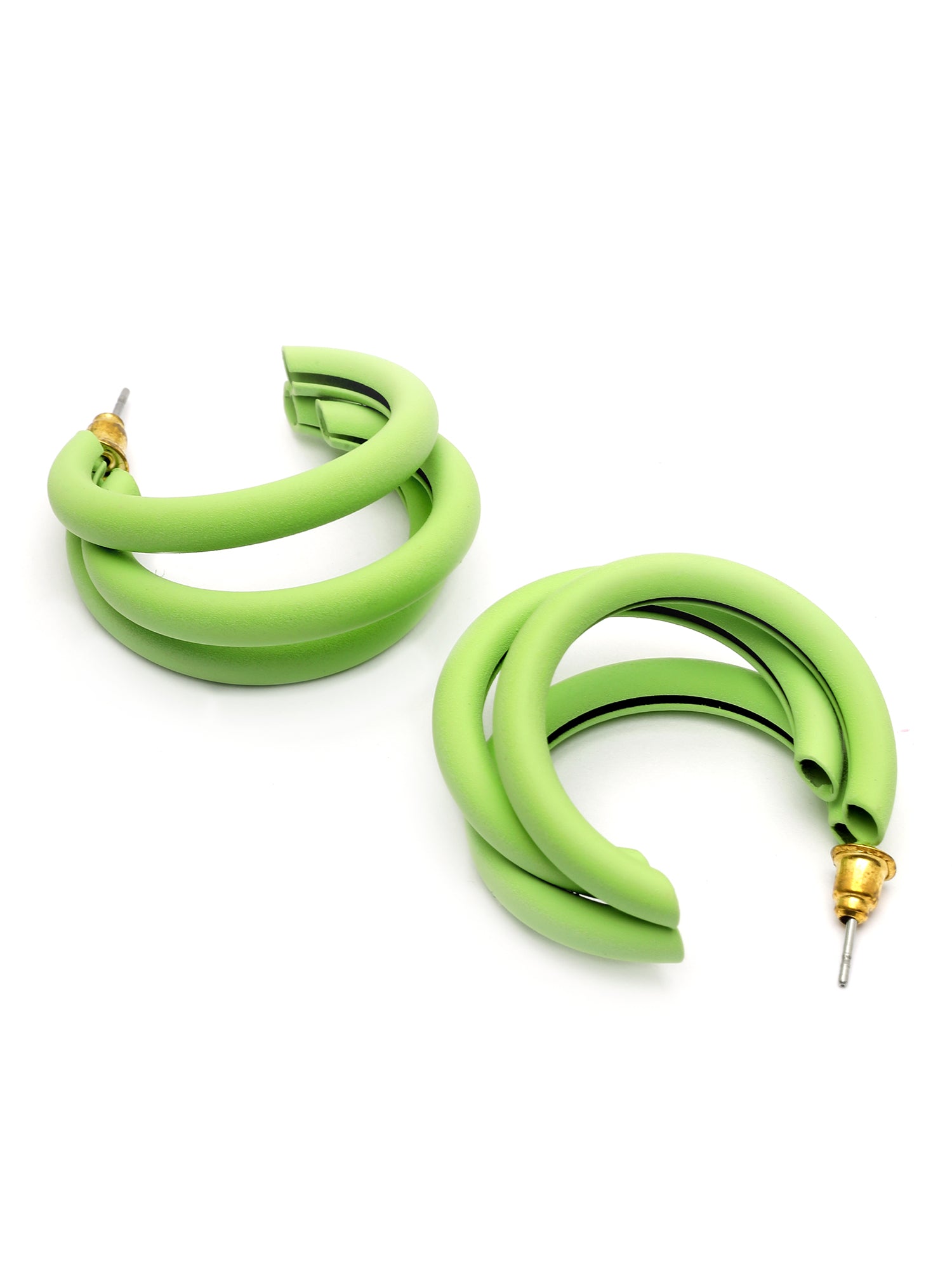 Bohey by KARATCART Matte Finish Light Green Half Hoop Earrings