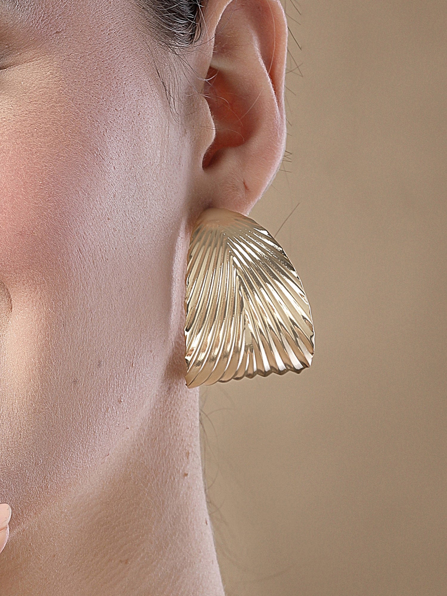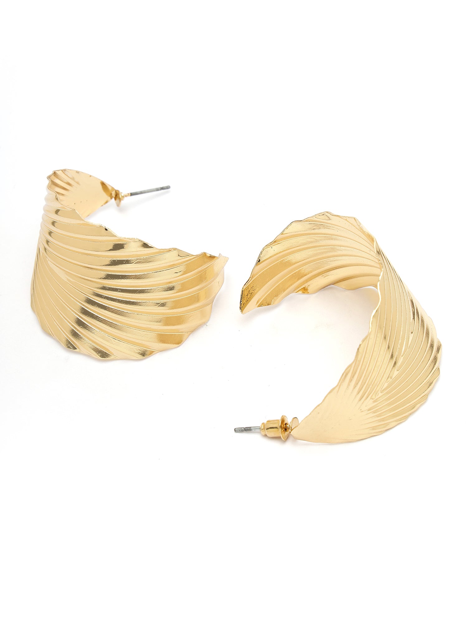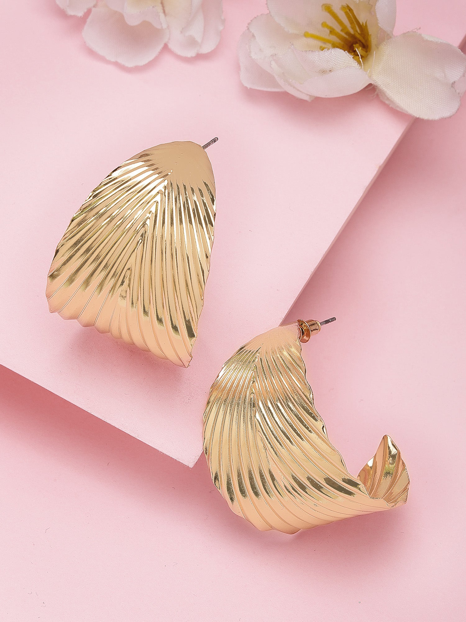 Bohey by KARATCART Gold Plated Graduating Leaf Design Half Hoop Earrings