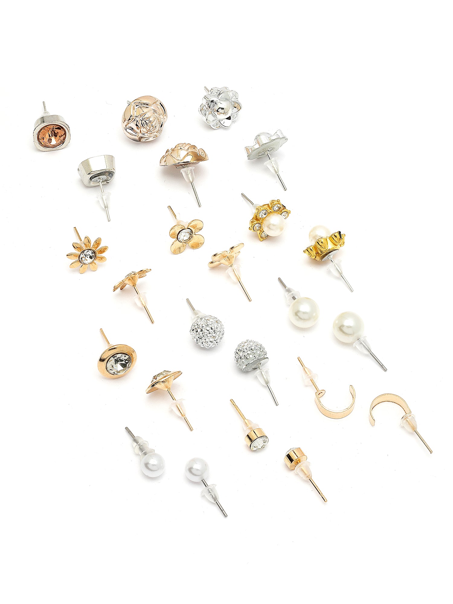 Bohey by KARATCART Set of 12 Gold and Silver Contemporary Studs Earrings Combo