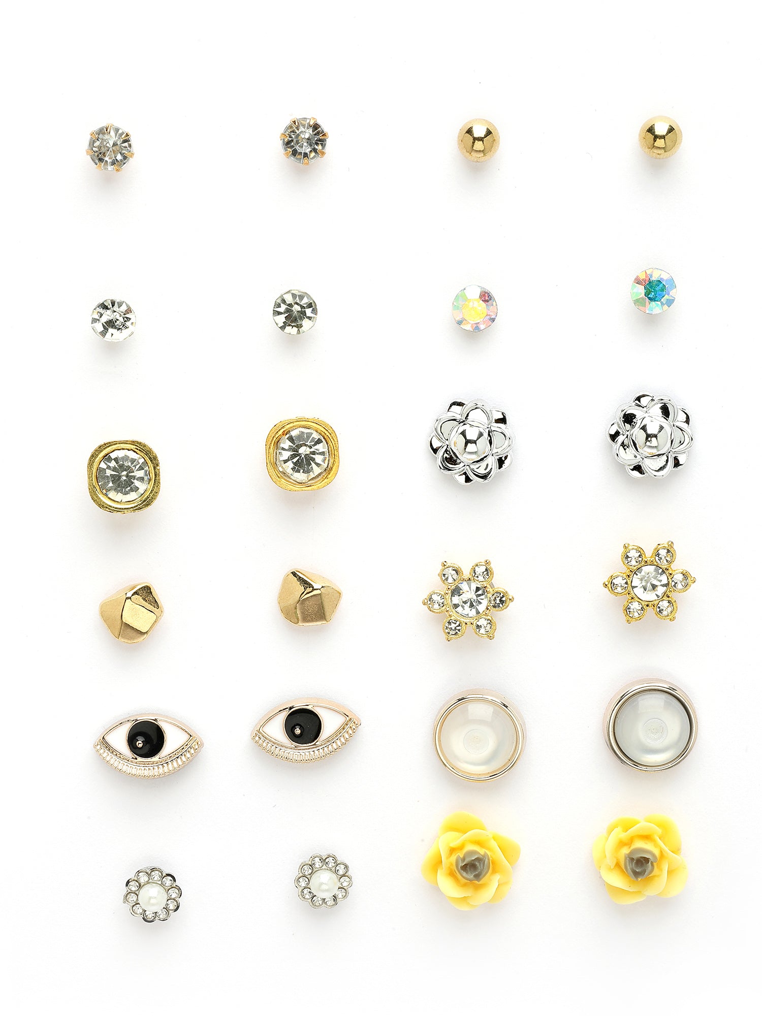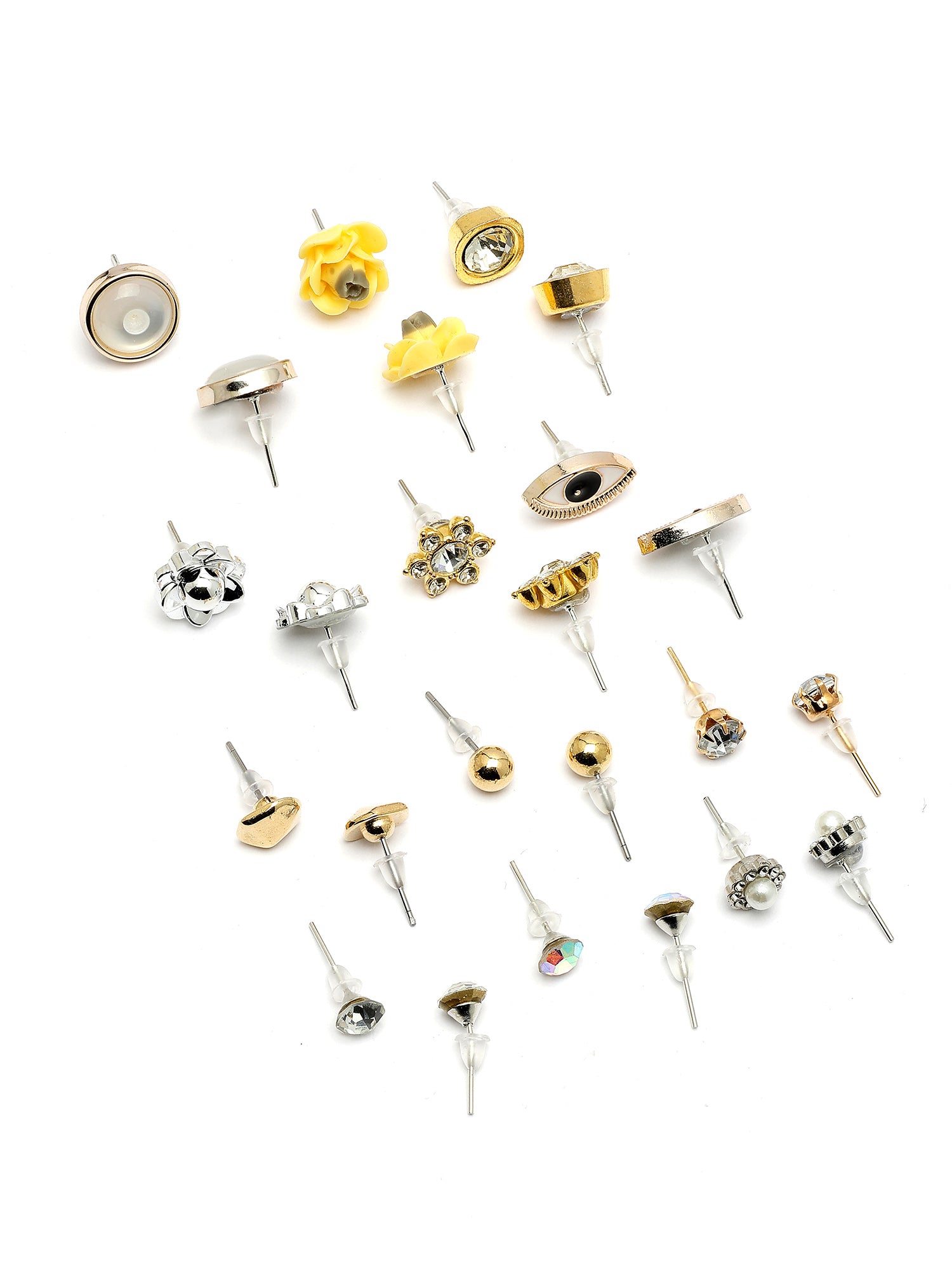 Bohey by KARATCART Set of 12 Gold and Silver Contemporary Studs Earrings Combo