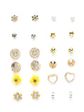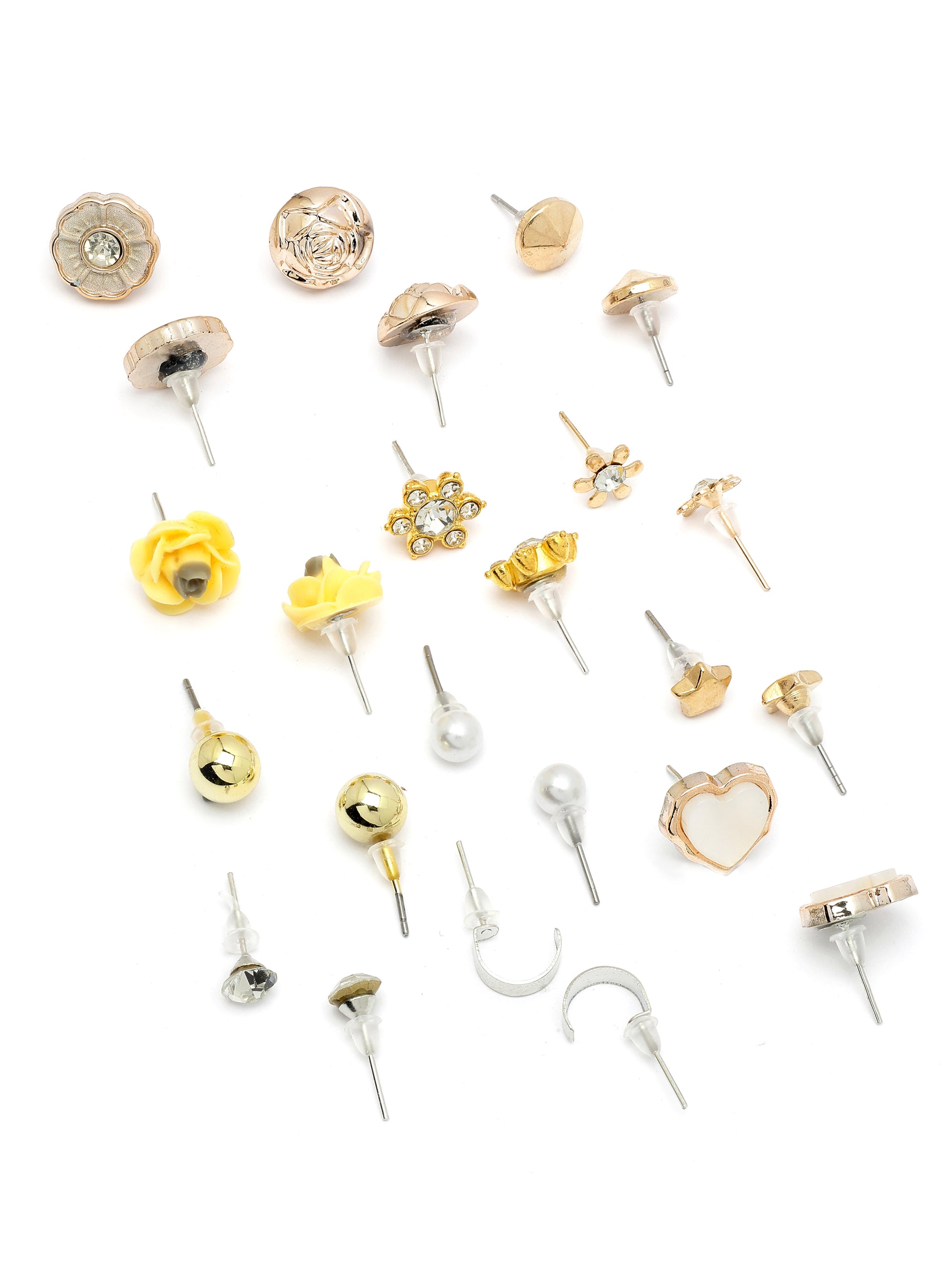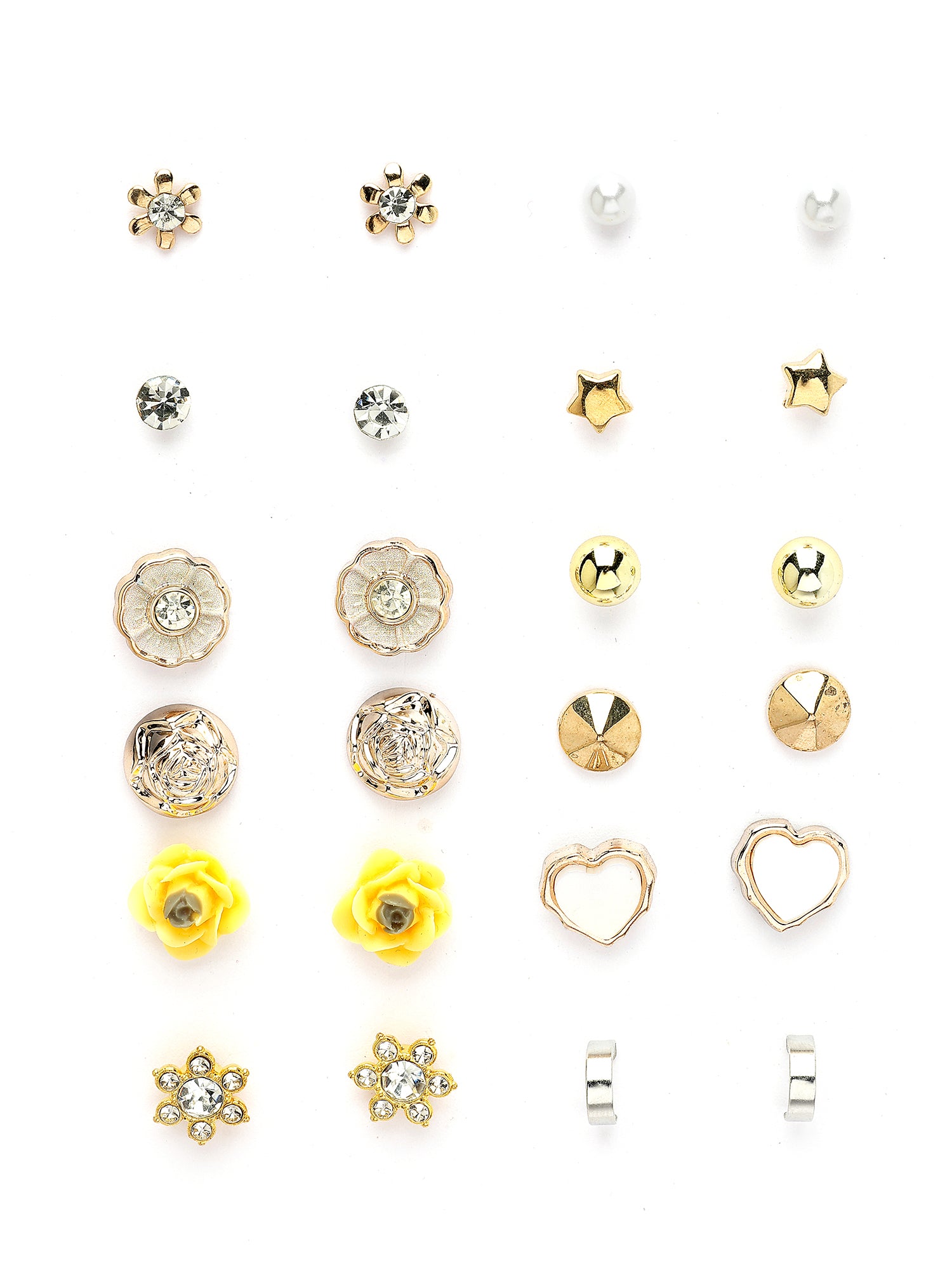 Bohey by KARATCART Set of 12 Gold and Silver Contemporary Studs Earrings Combo