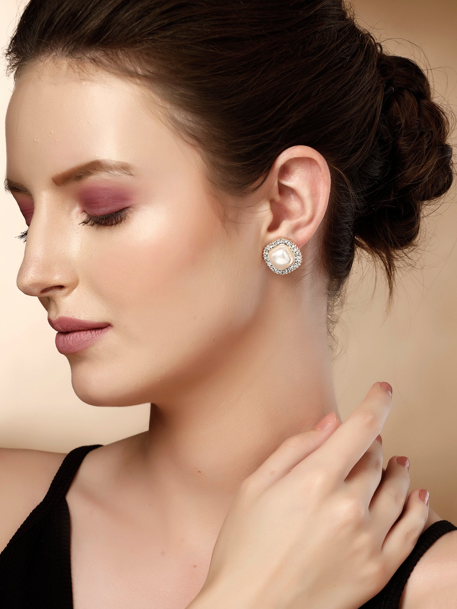 Bohey by KARATCART Gold Plated Cubic Zirconia Stud Earrings for Women