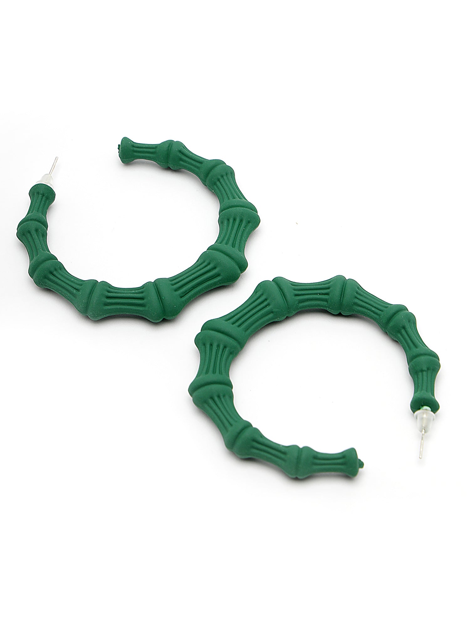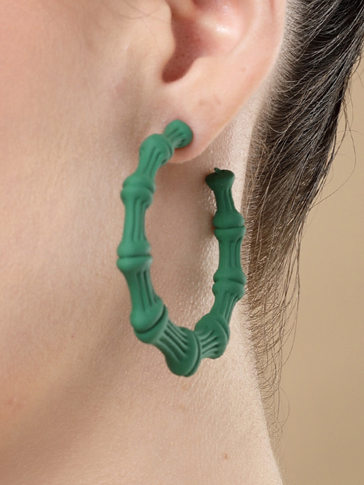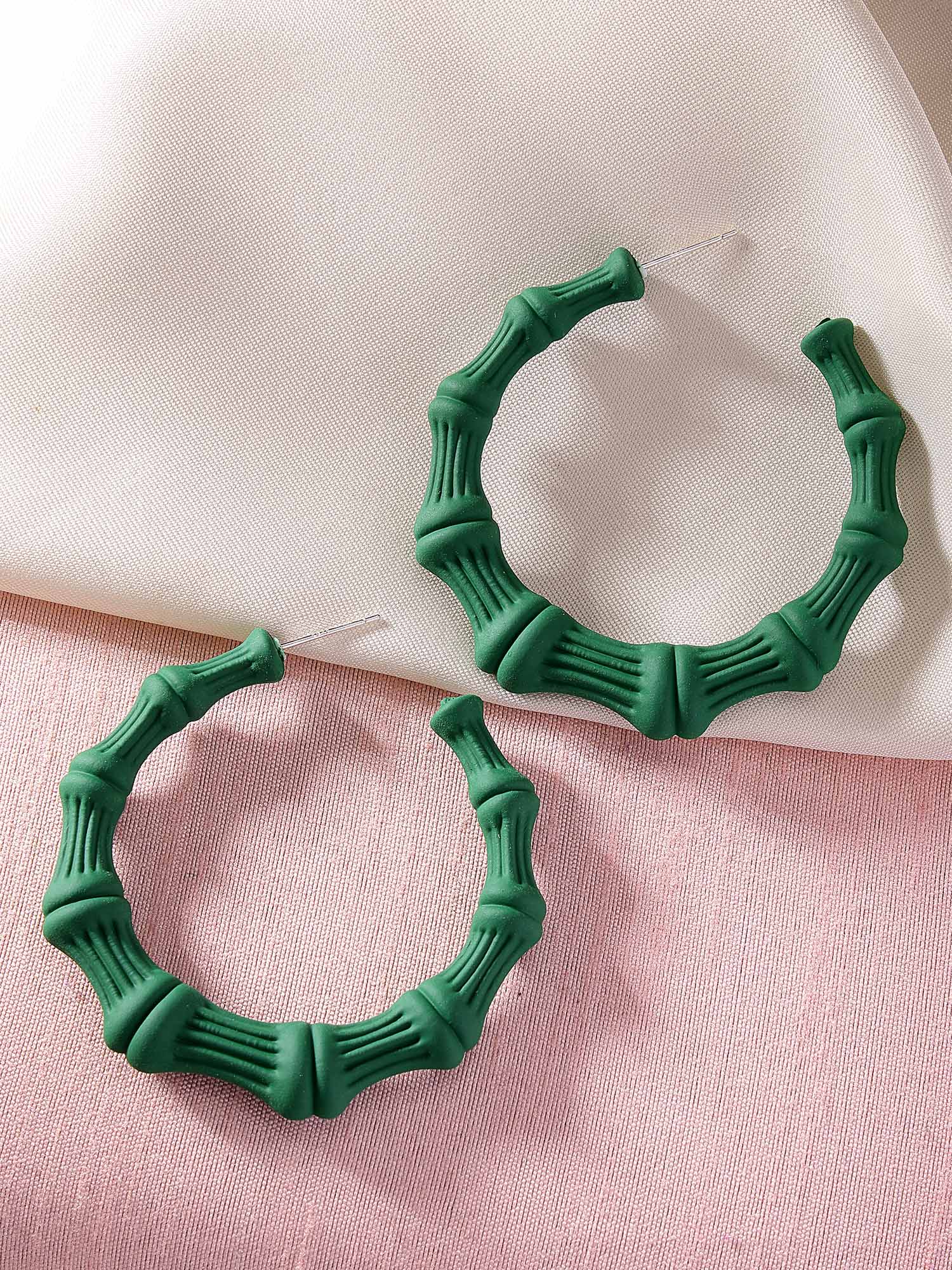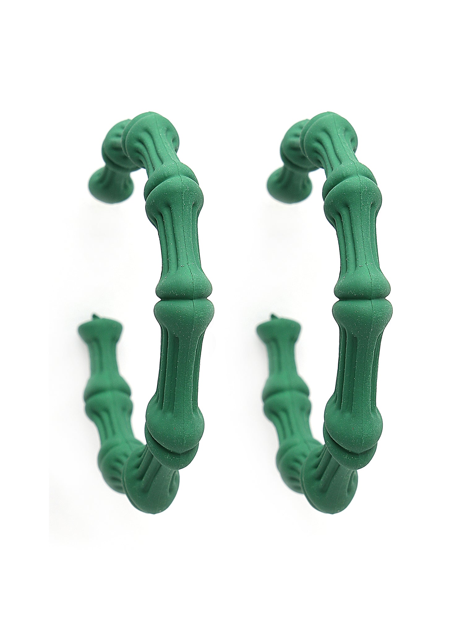 Bohey by KARATCART Matte Green Finish Bamboo Design Half Hoop Earrings for Women