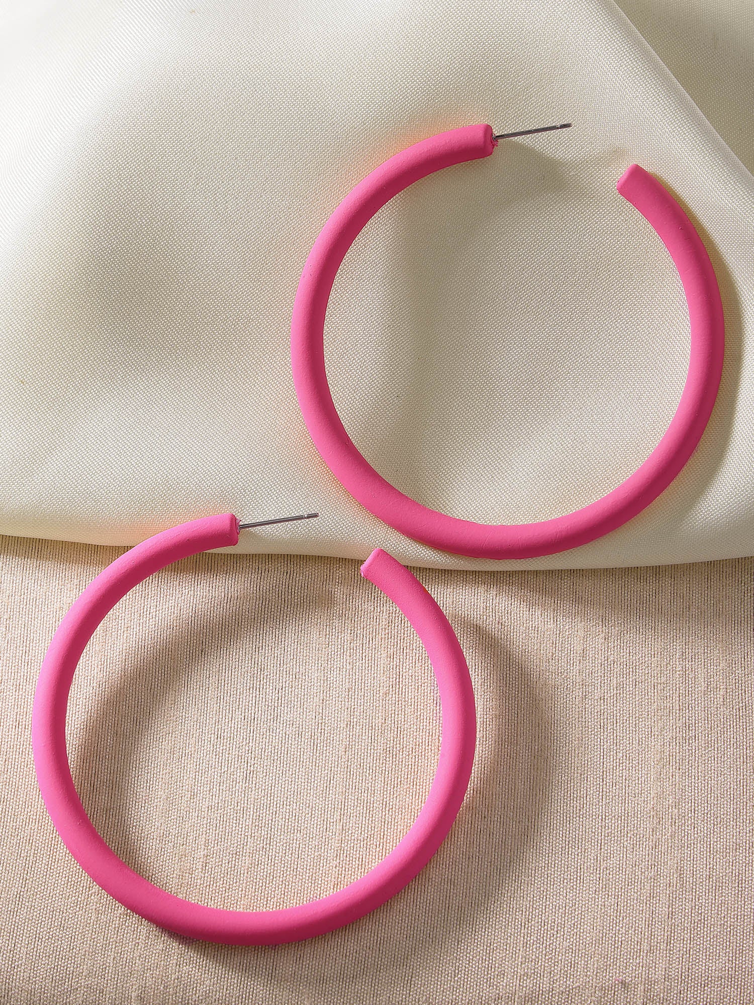 Bohey by KARATCART Matte Pink Finish Half Hoop Earrings for Women