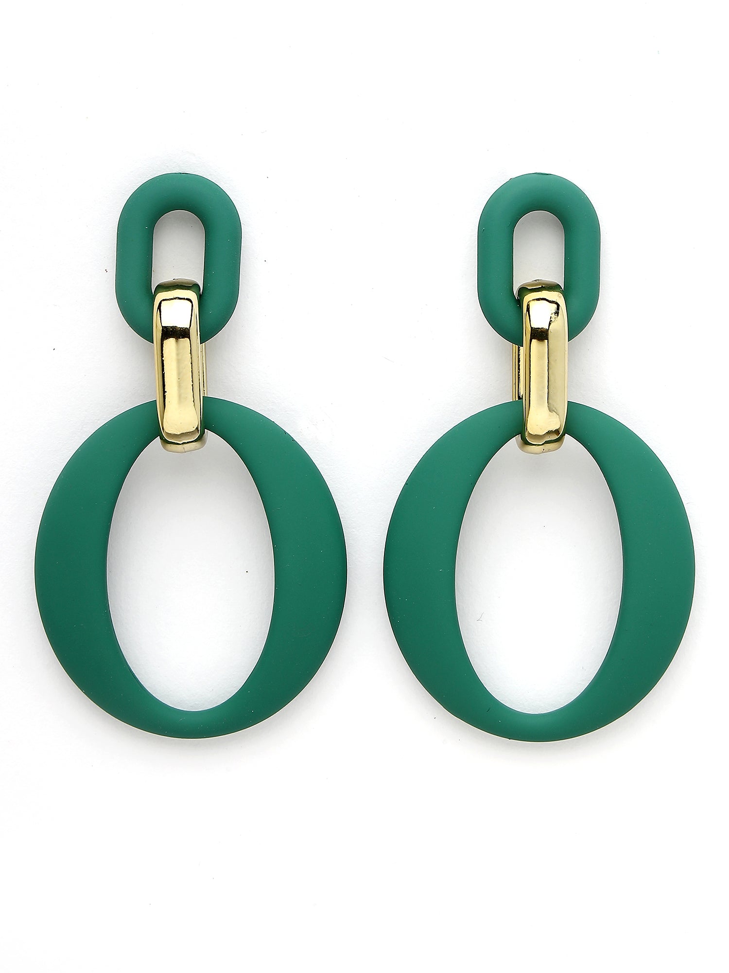 Bohey by KARATCART Matte Finish Green Linked Dangler Earrings for Women