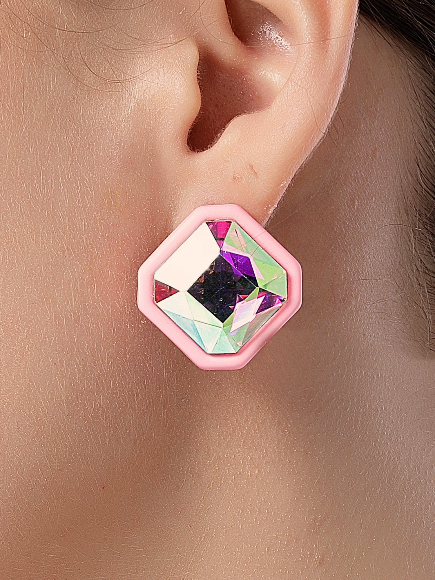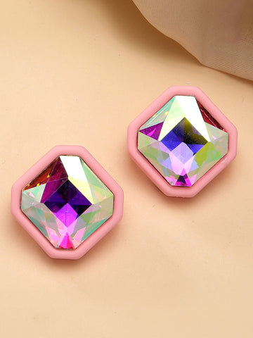 Bohey by KARATCART Pink Matte Finish Rhinestone Stud Earrings for Women