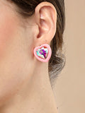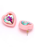 Bohey by KARATCART Pink Matte Finish Heart Shape Rhinestone Stud Earrings for Women
