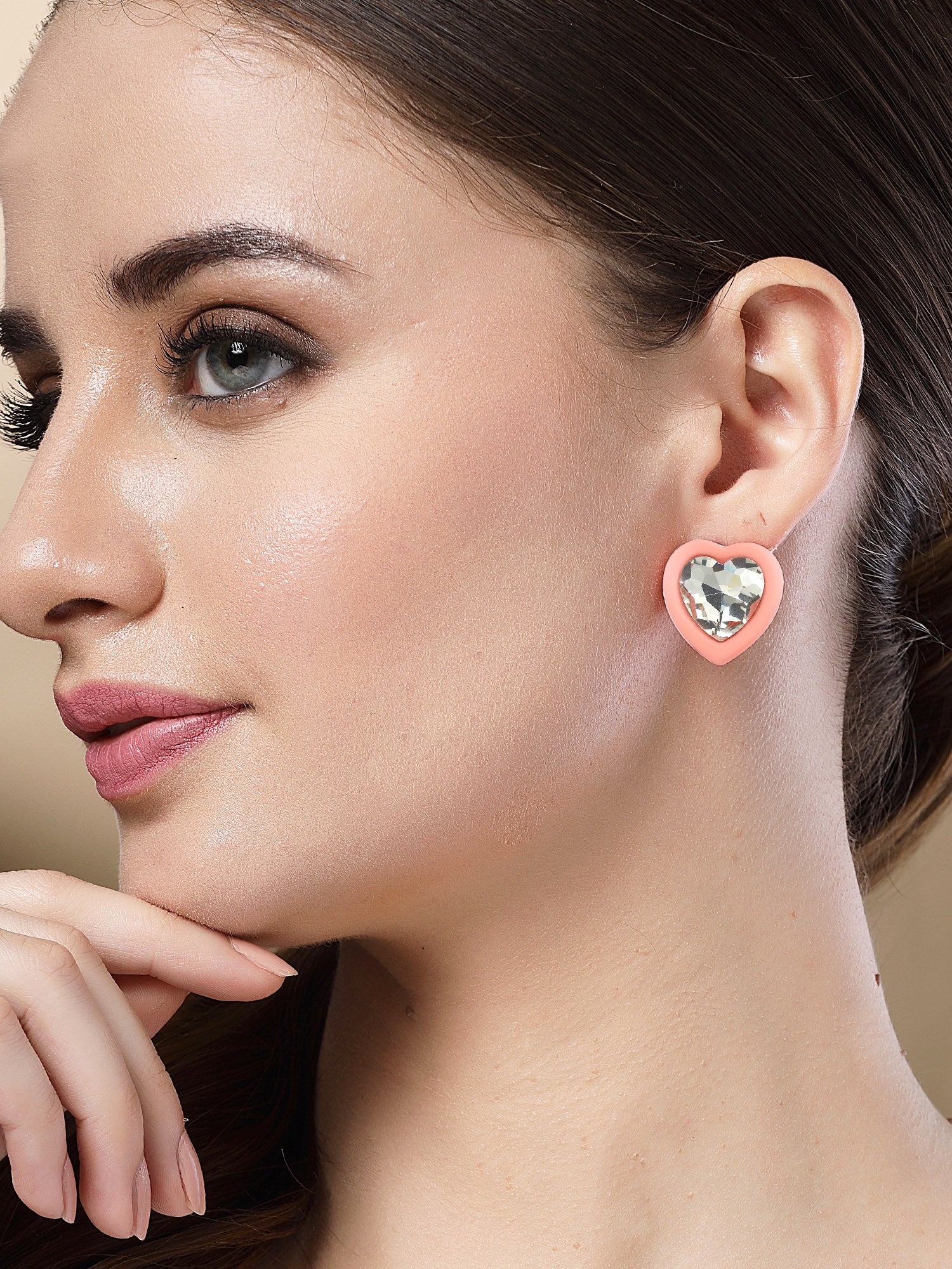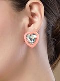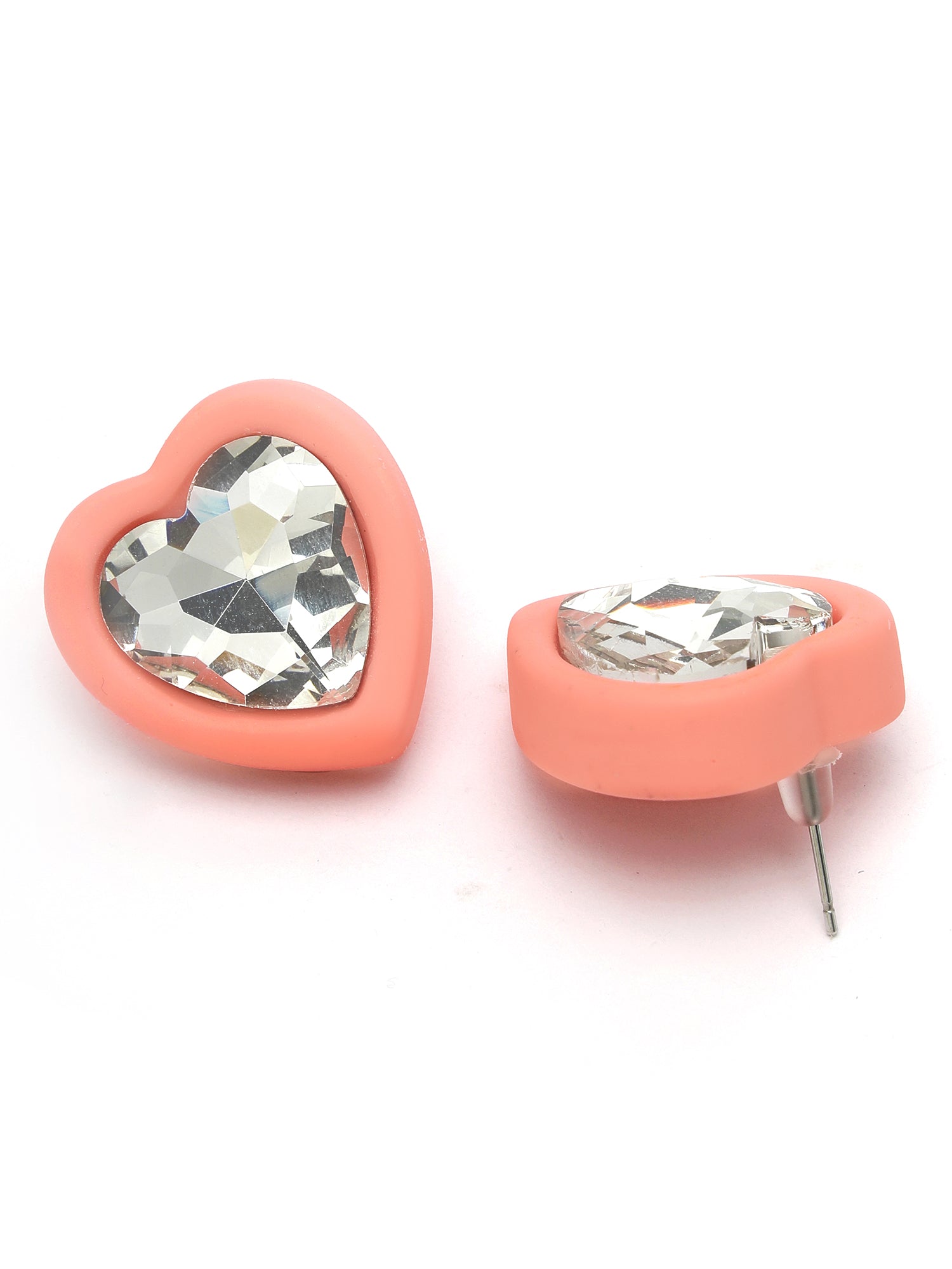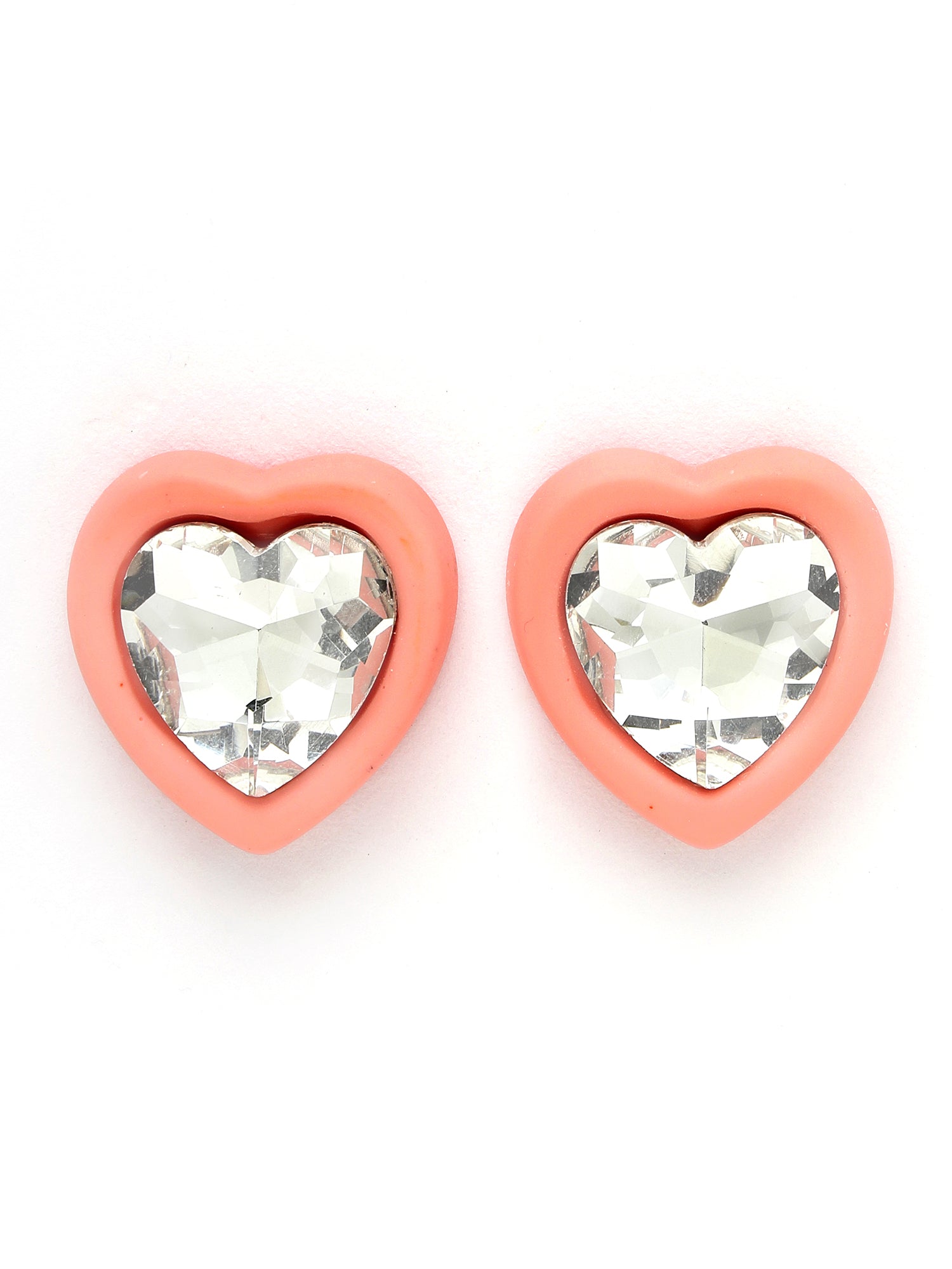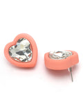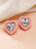 Bohey by KARATCART Pink Matte Finish Heart Shape Rhinestone Stud Earrings for Women
