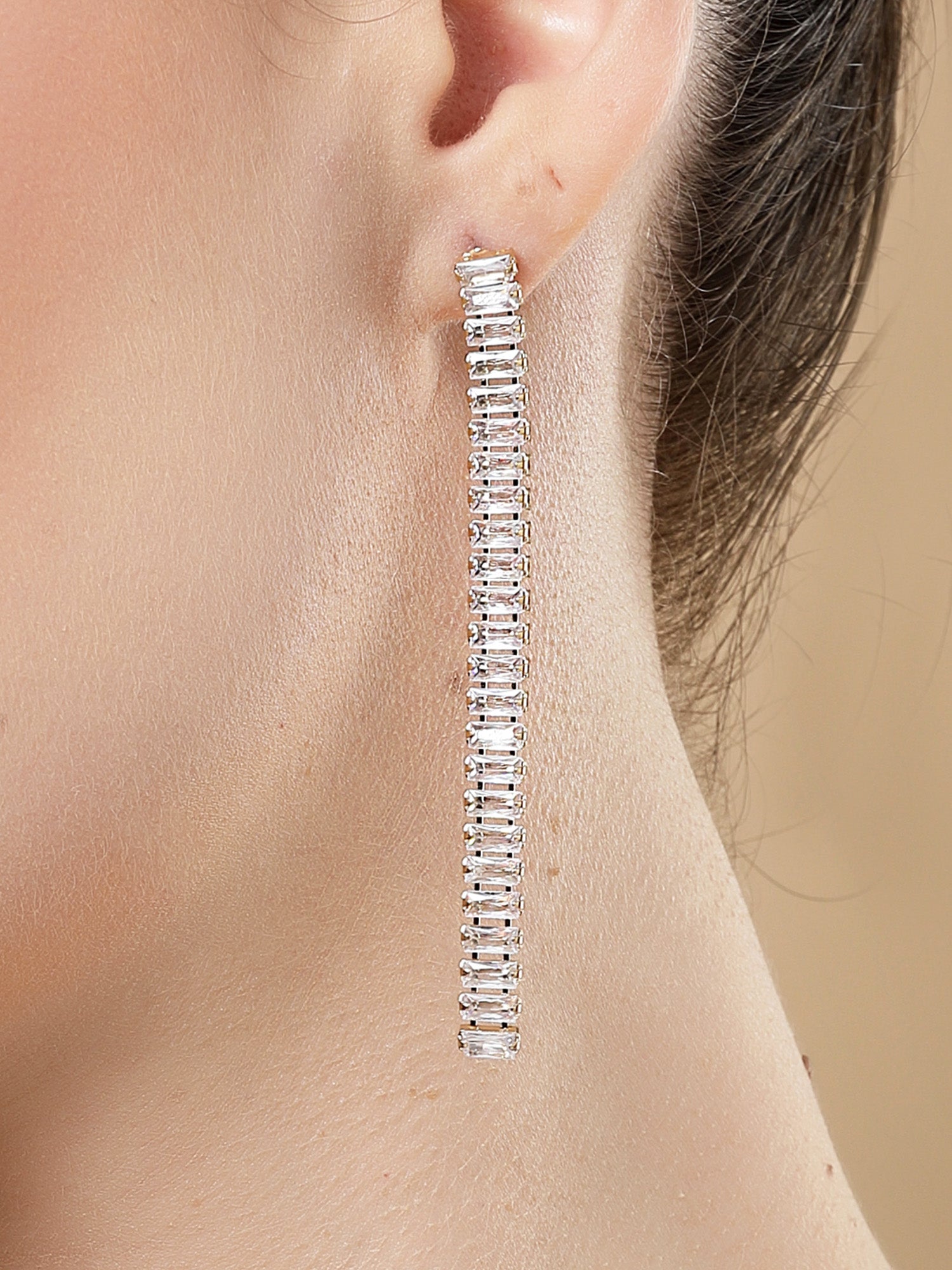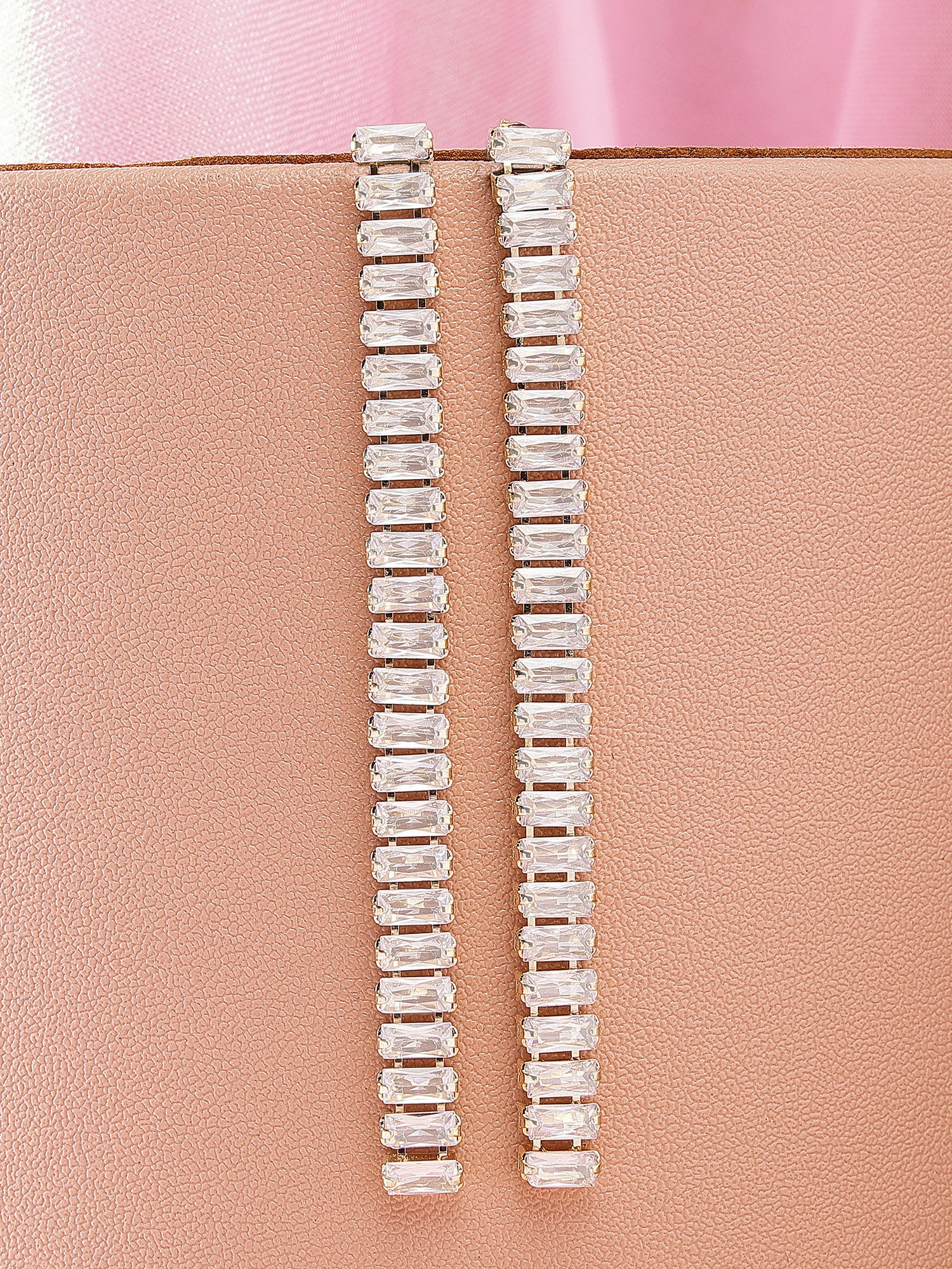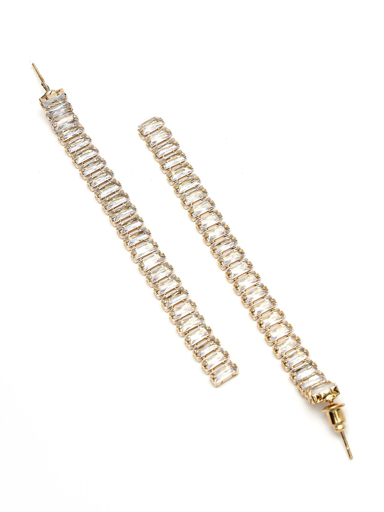 Bohey by KARATCART Gold Plated Cubic Zirconia Long Drop Earrings