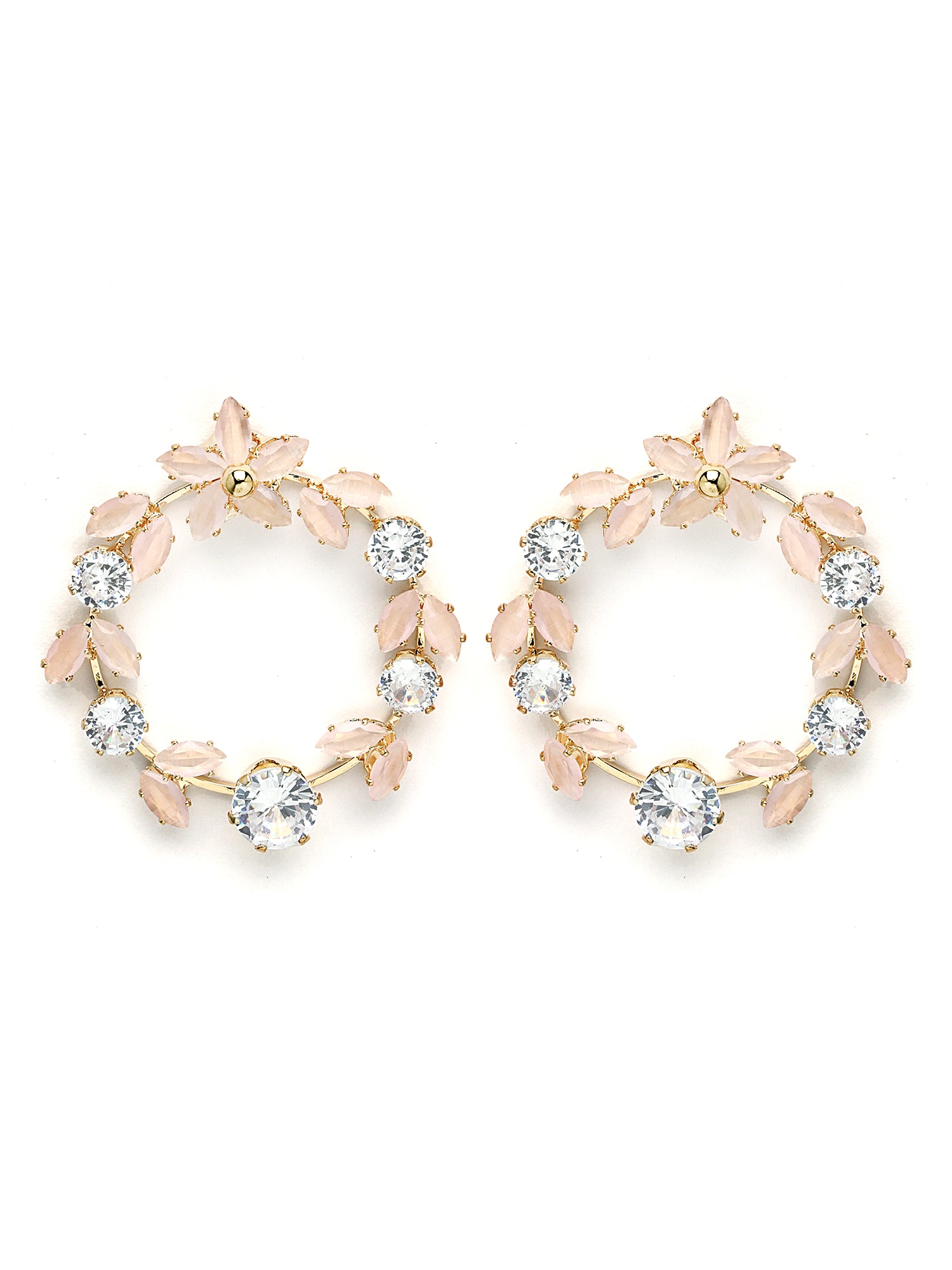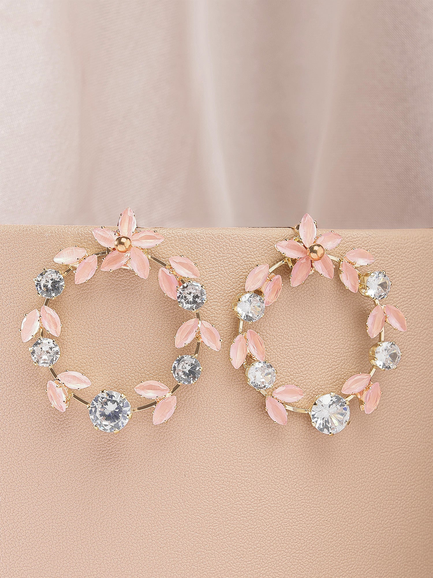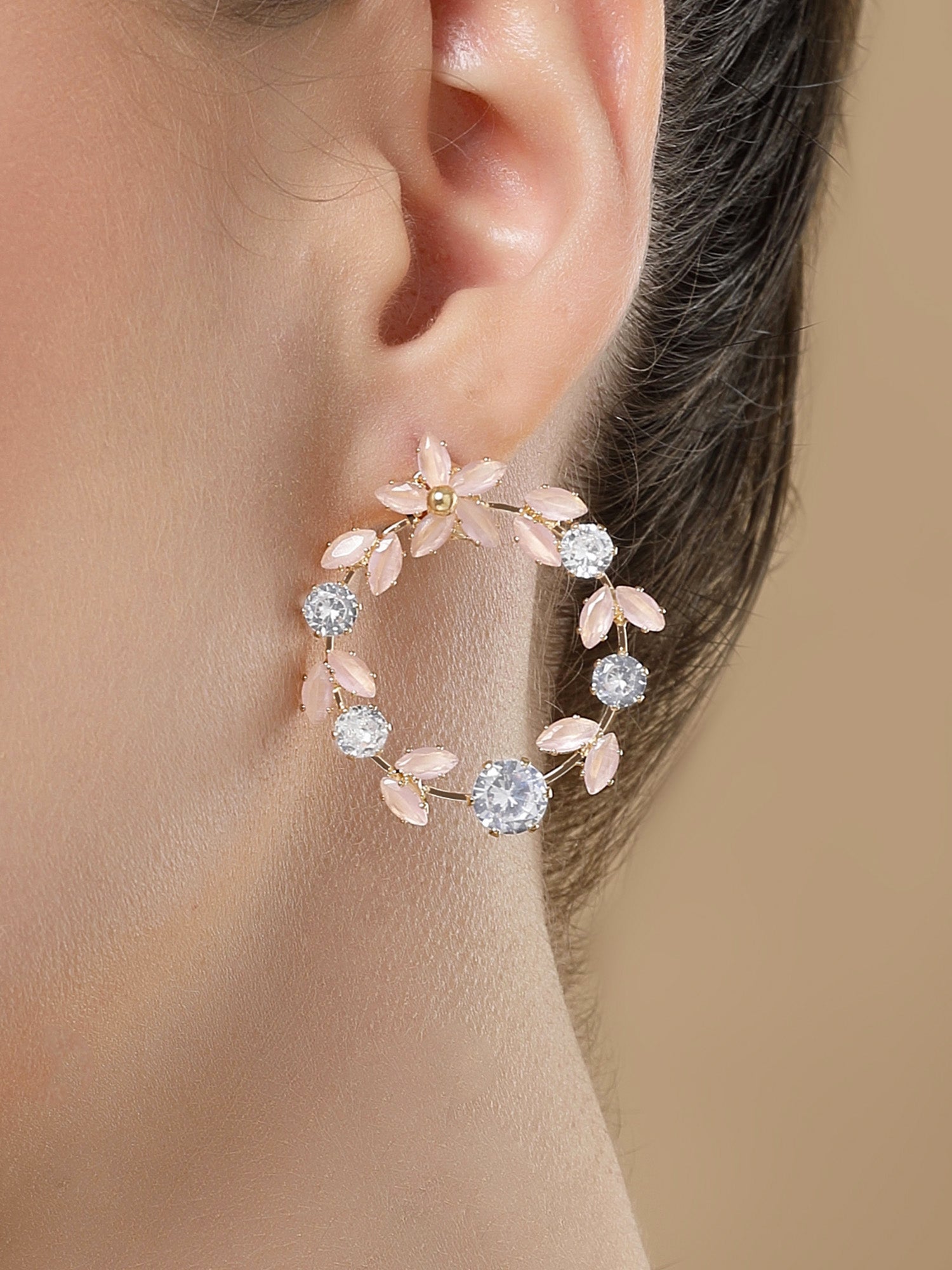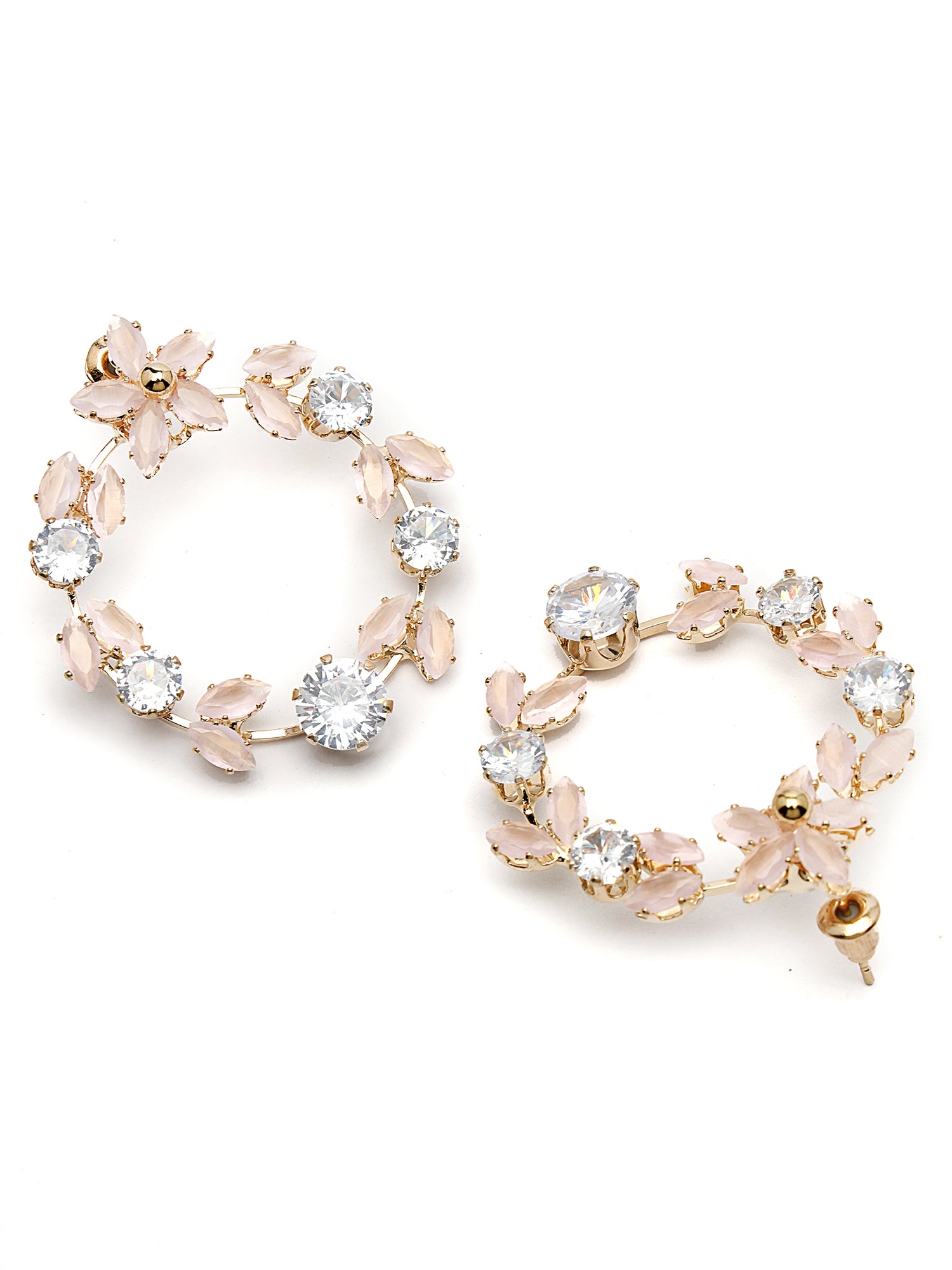 Bohey by KARATCART Gold Plated Pink Cubic Zirconia Round Dangler Earrings for Women