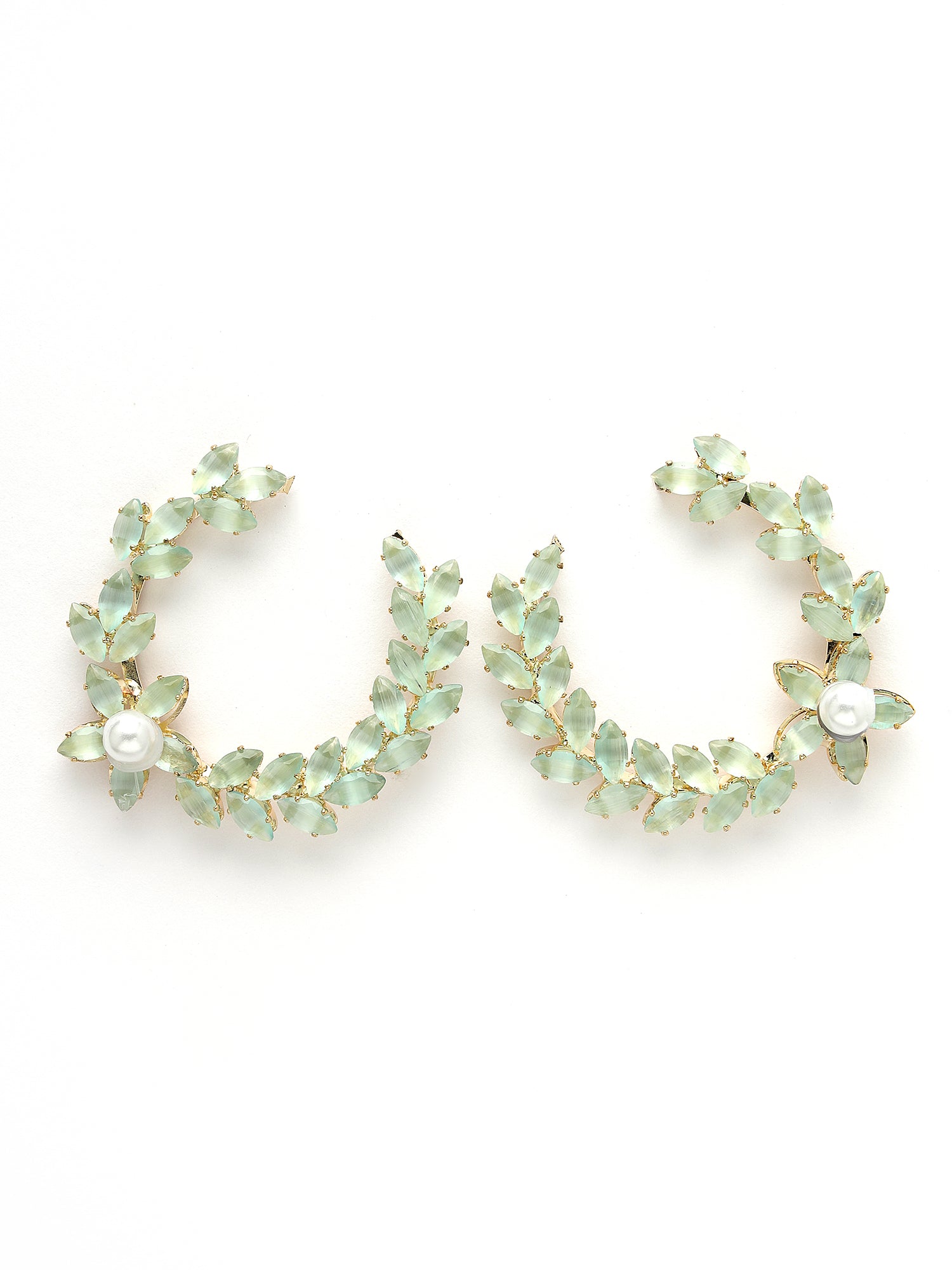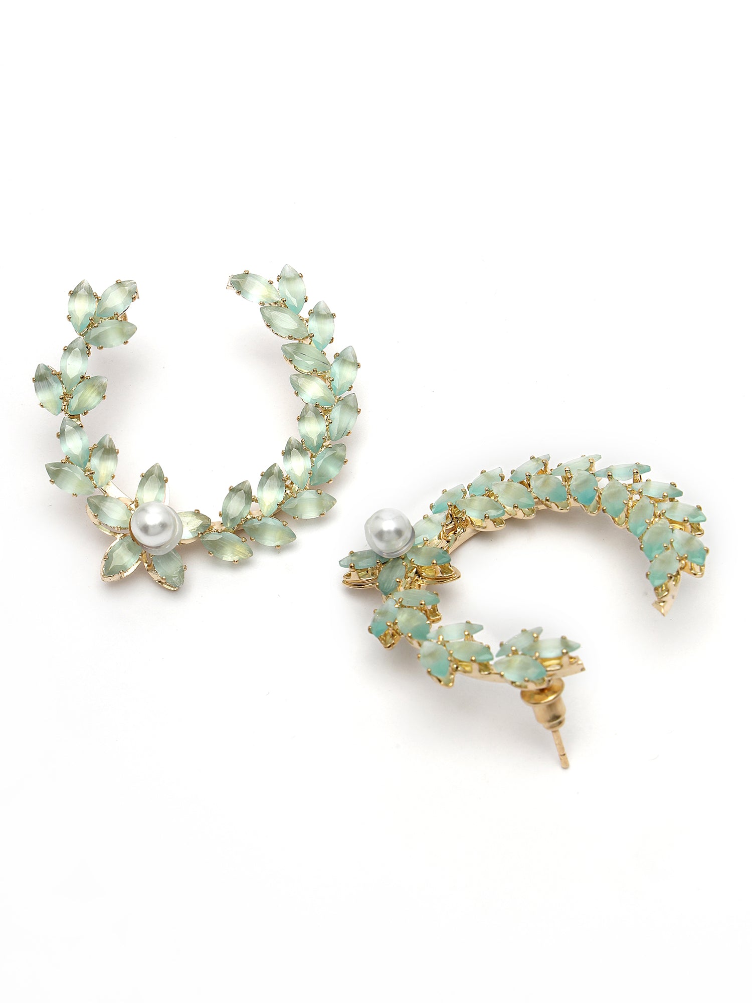 Bohey by KARATCART Gold Plated Sea Green Cubic Zirconia Round Dangler Earrings for Women