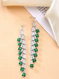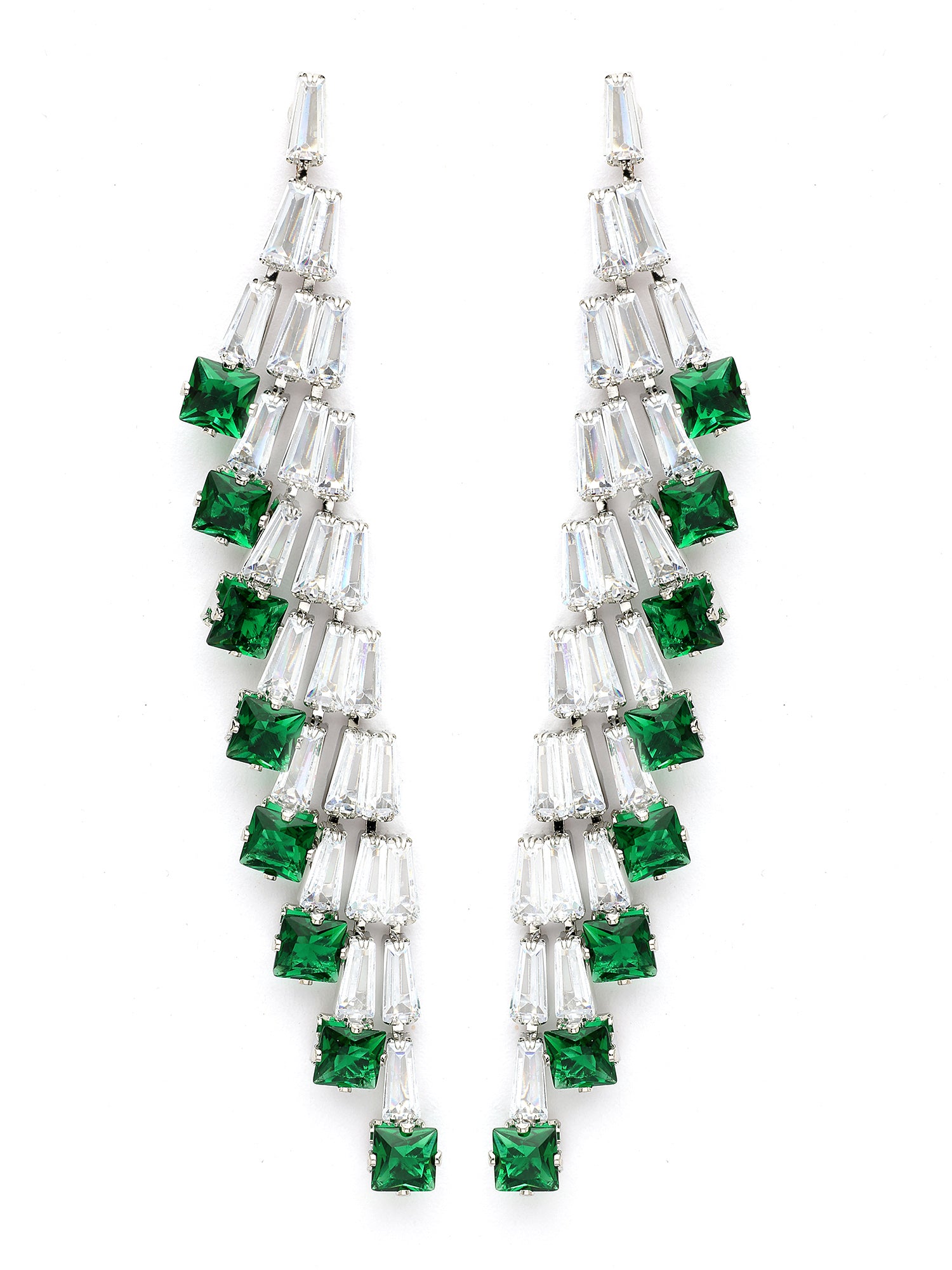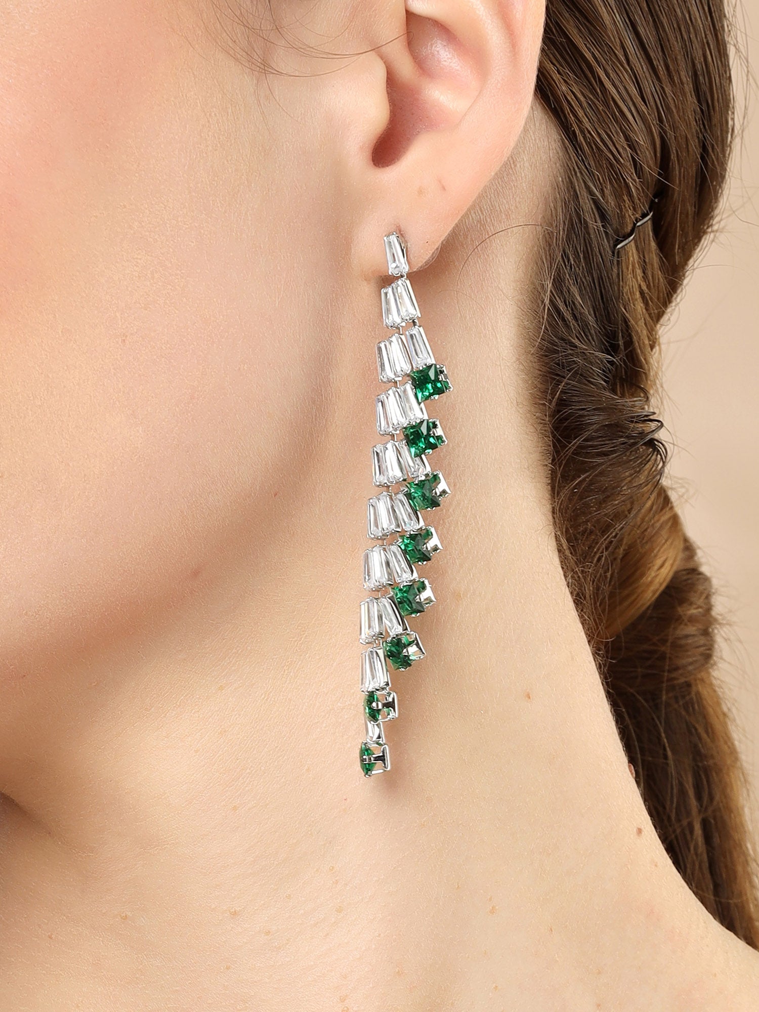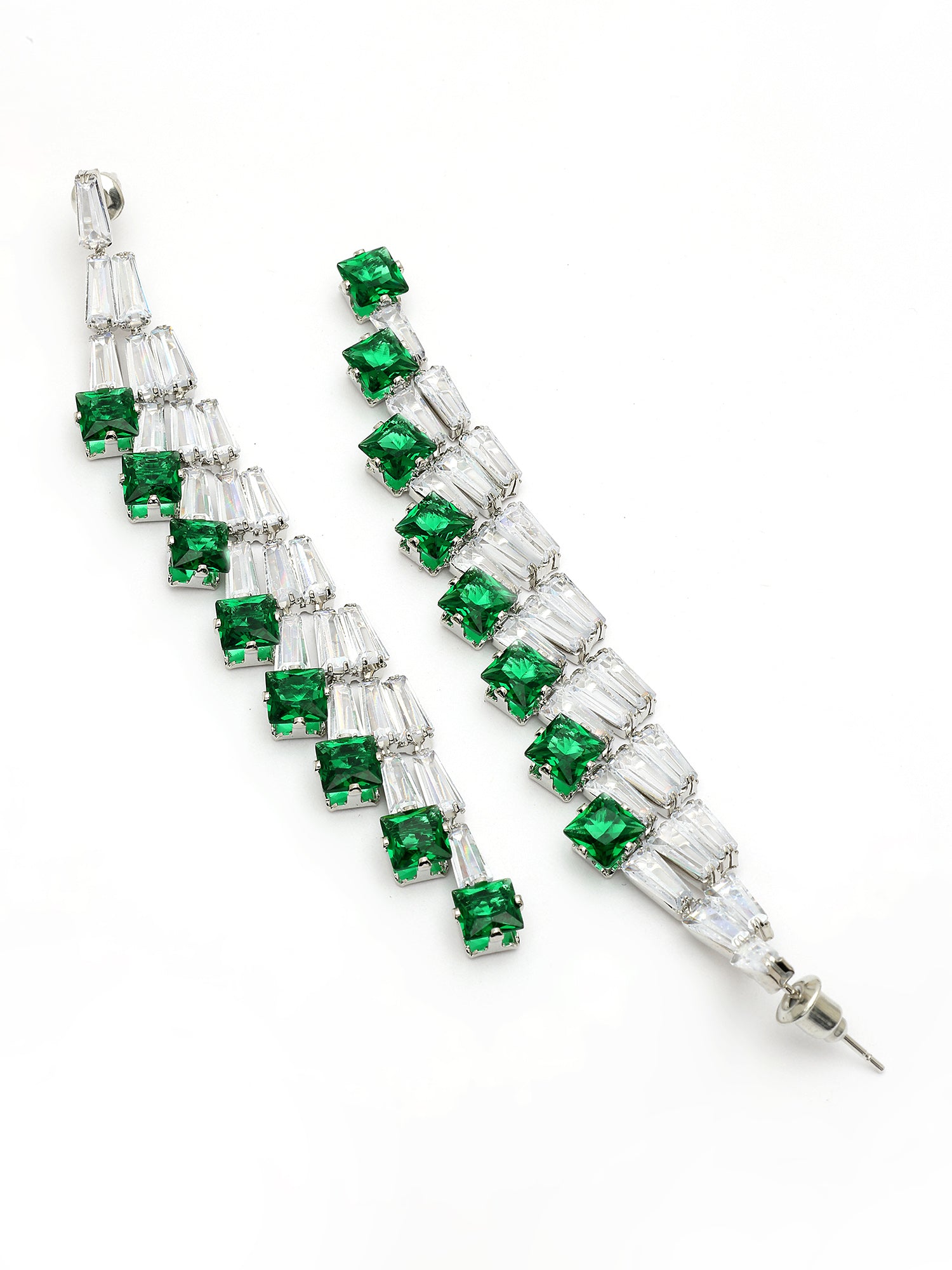 Bohey by KARATCART Silver-Plated Contemporary Green Drop Earrings for Women