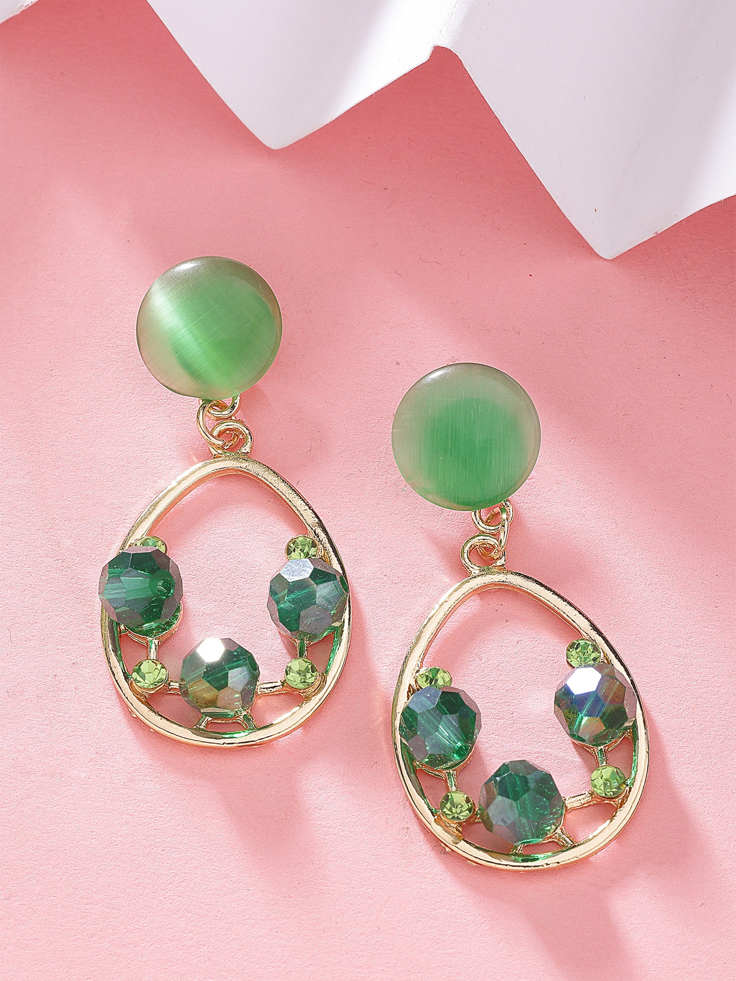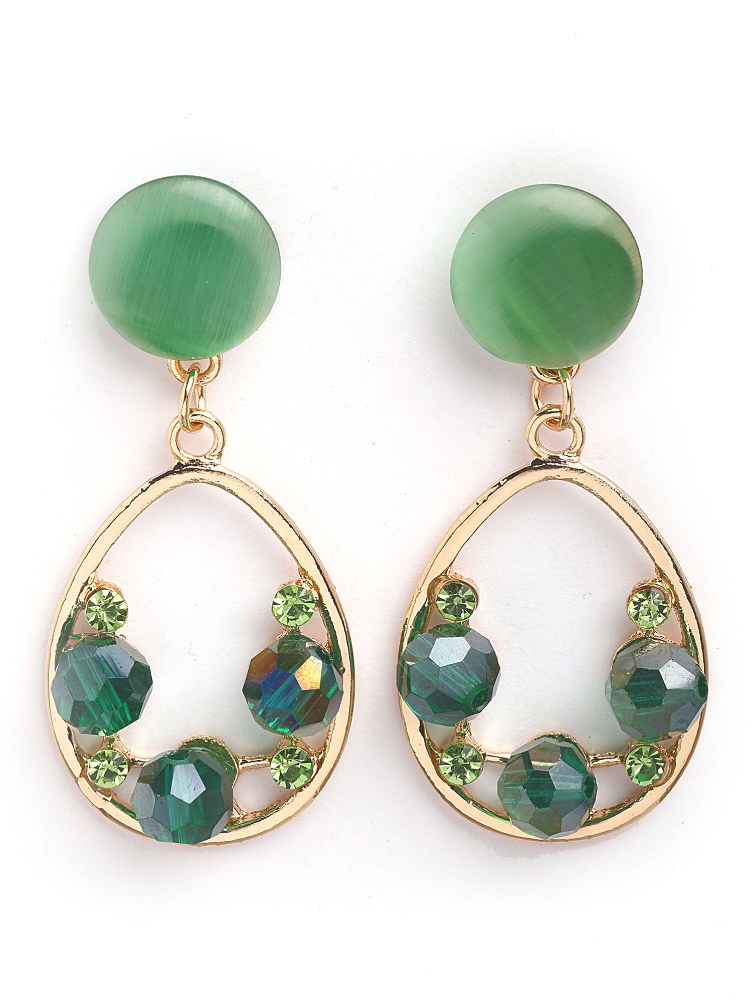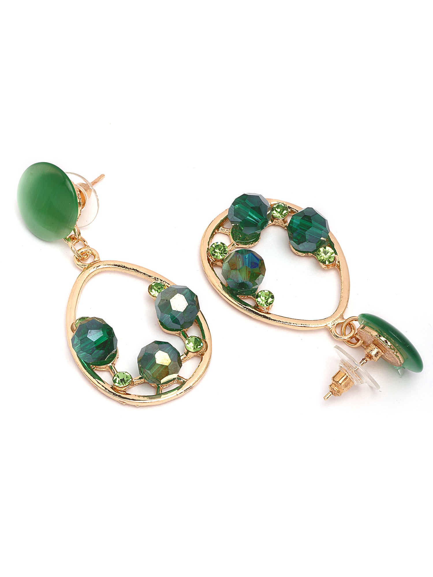 Bohey by KARATCART Gold-Plated Contemporary Green Drop Earrings for Women