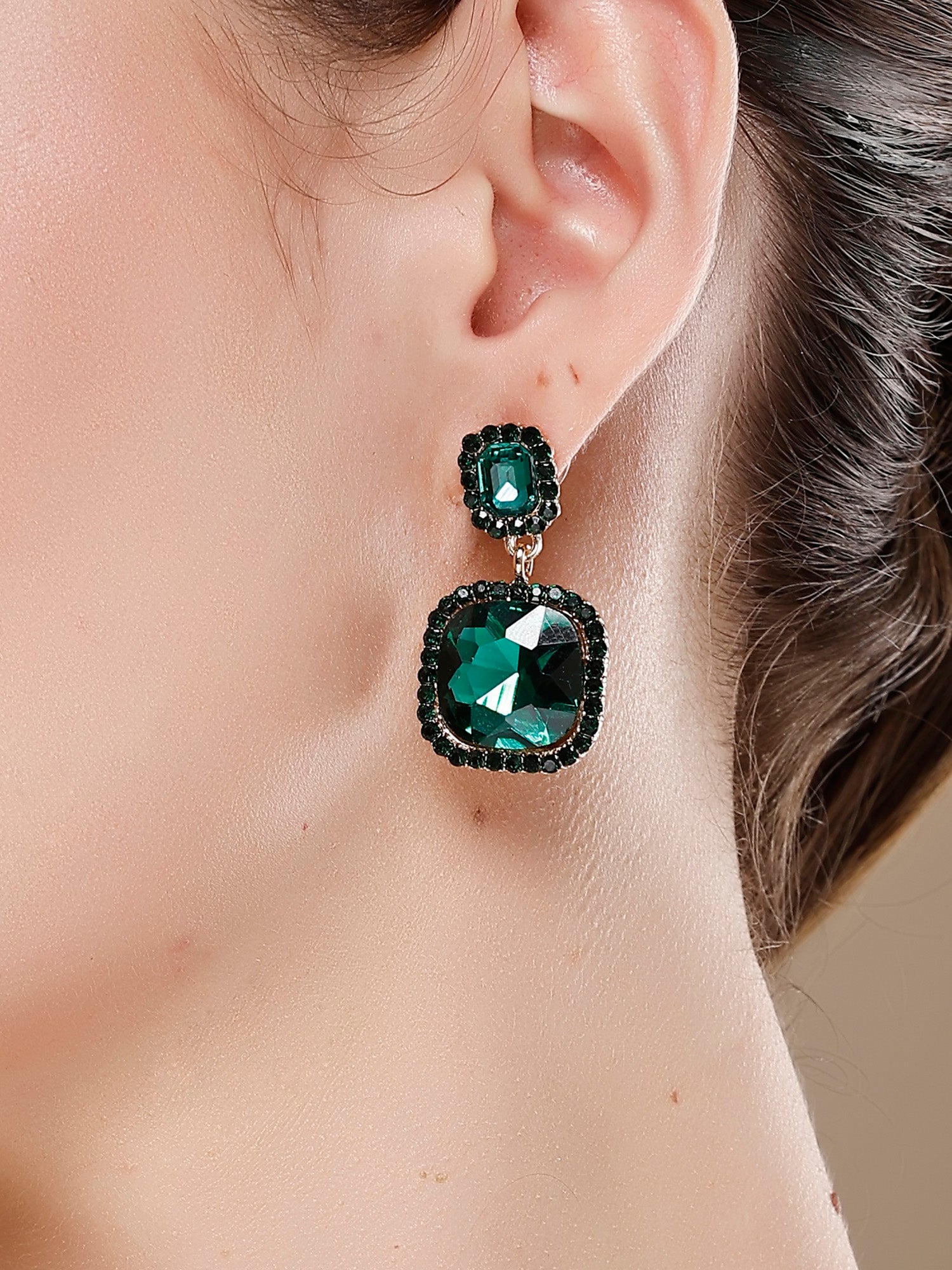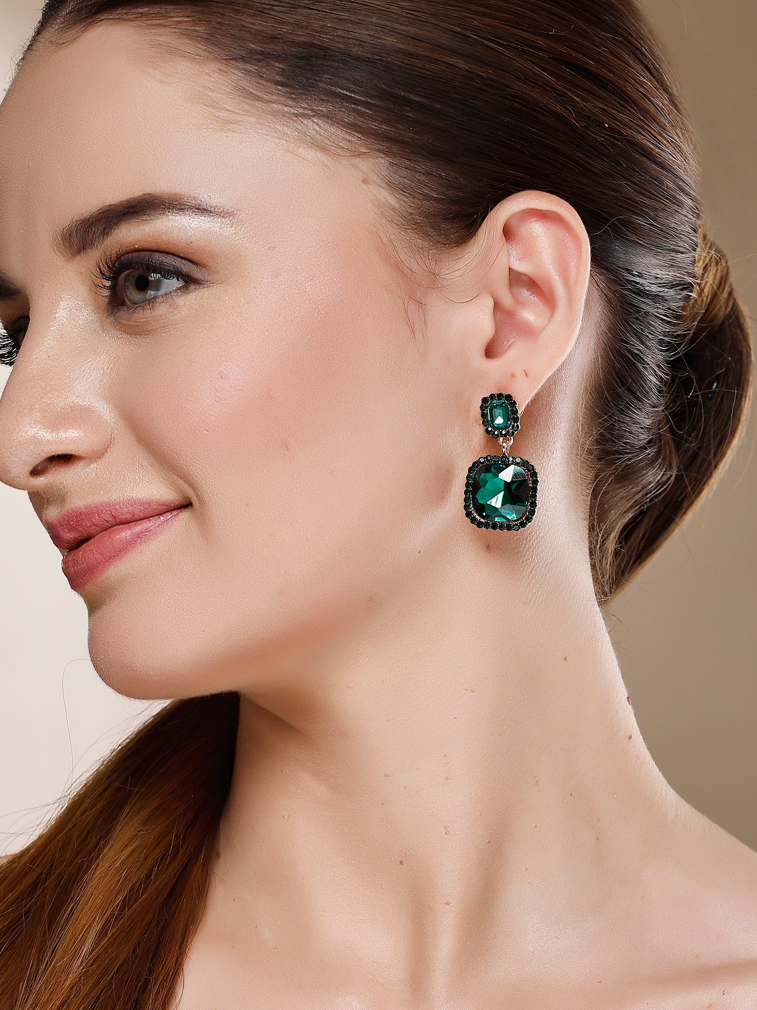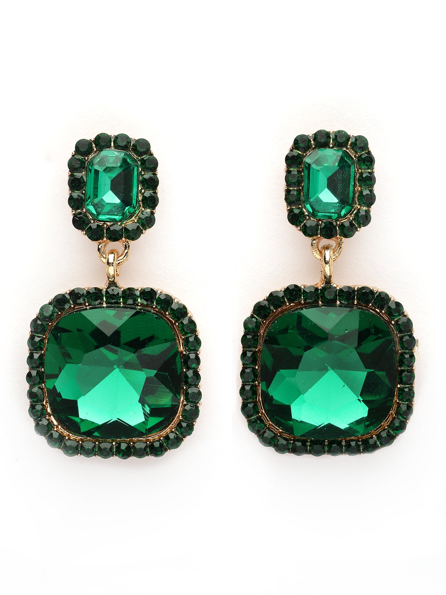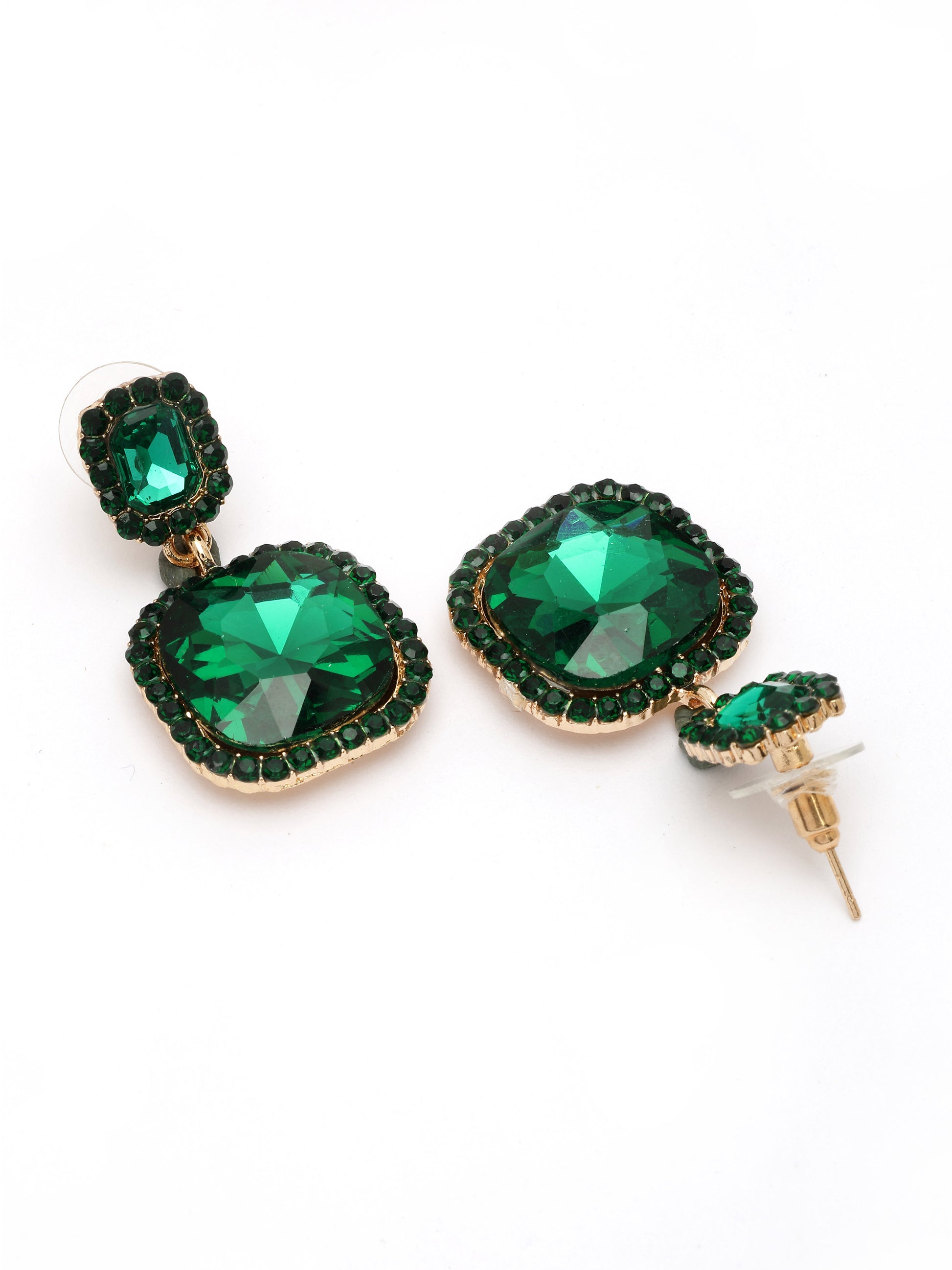 Bohey by KARATCART Gold-Plated Contemporary Green Drop Earrings for Women
