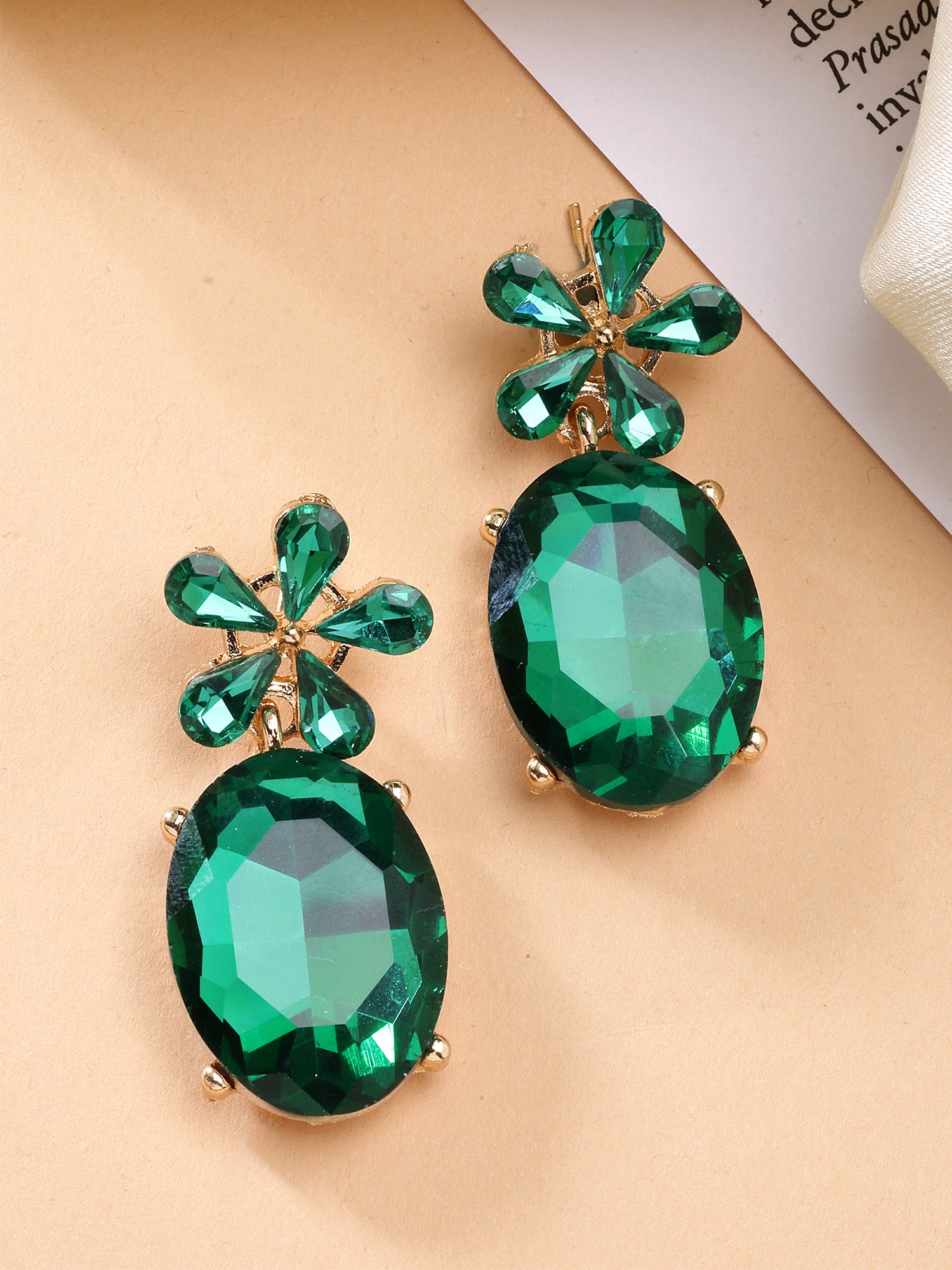 Bohey by KARATCART Gold-Plated Contemporary Green Drop Earrings for Women