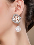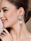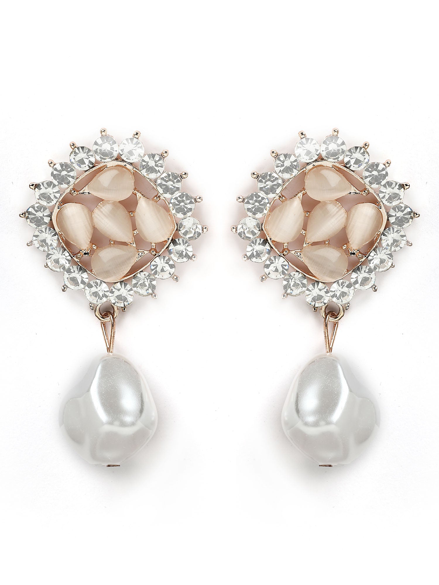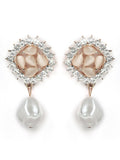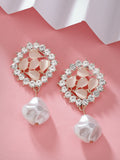 Bohey by KARATCART Gold-Plated Pearl and Peach Cubic Zirconia Studded Drop Earrings for Women