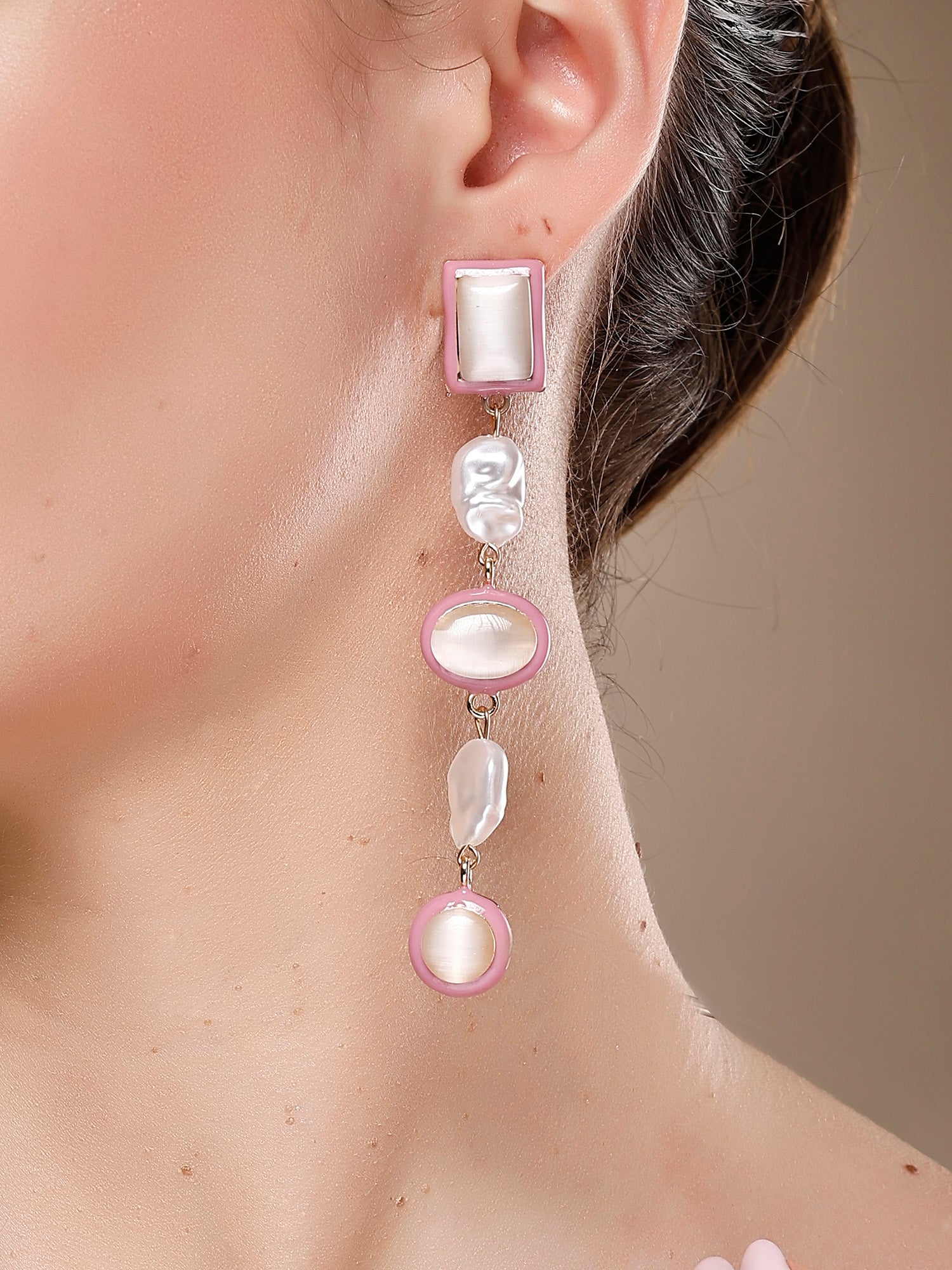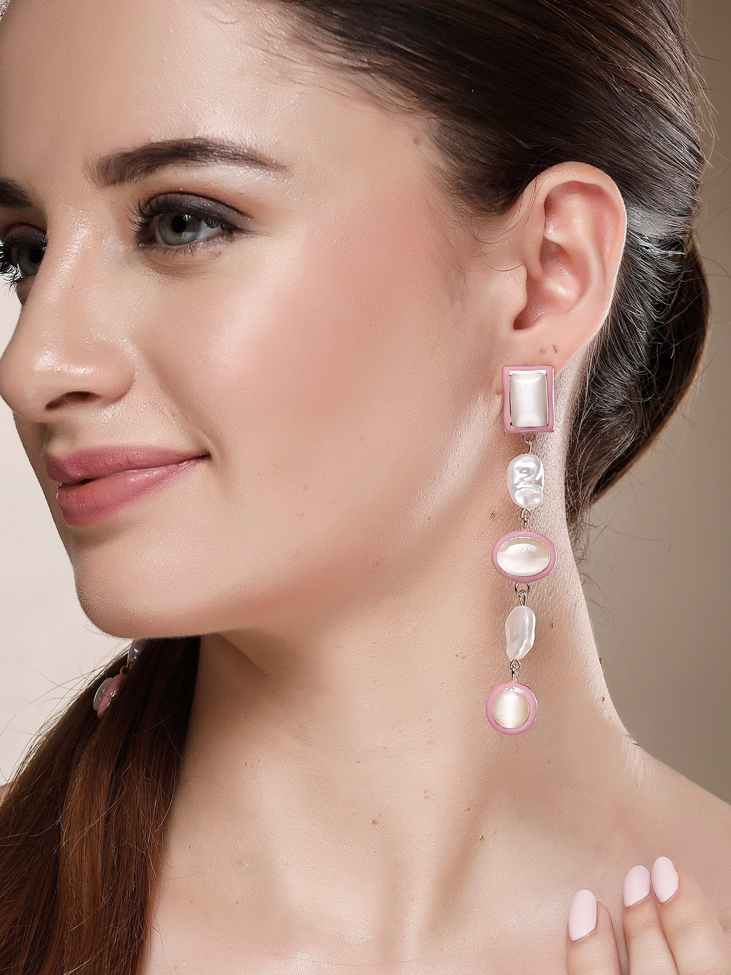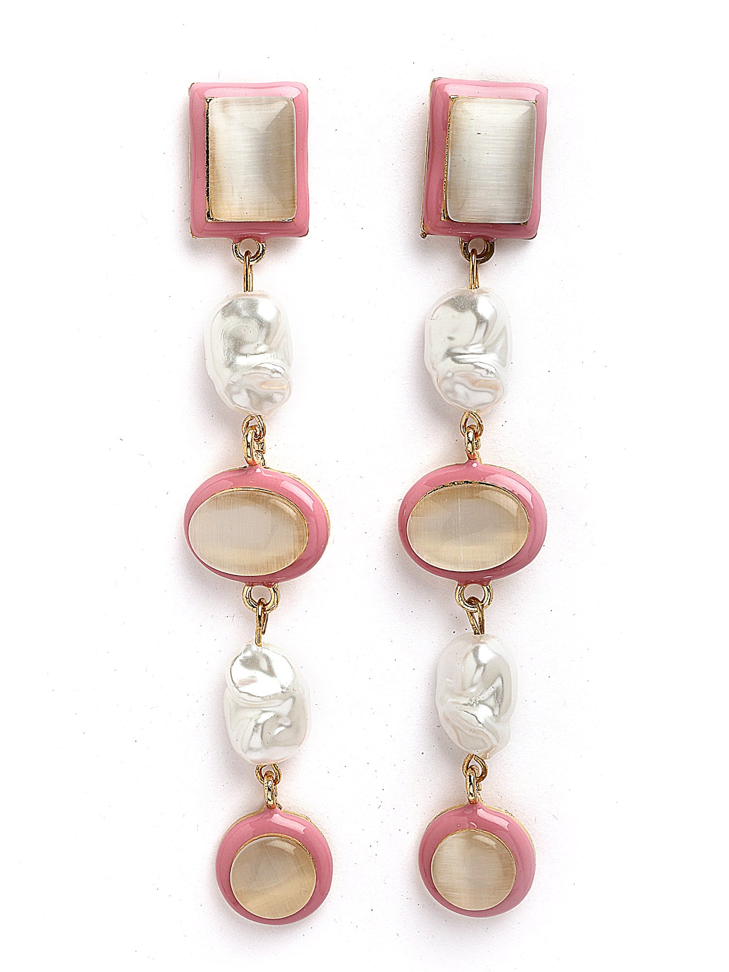 Bohey by KARATCART Gold-Plated Contemporary Pink Drop Earrings for Women