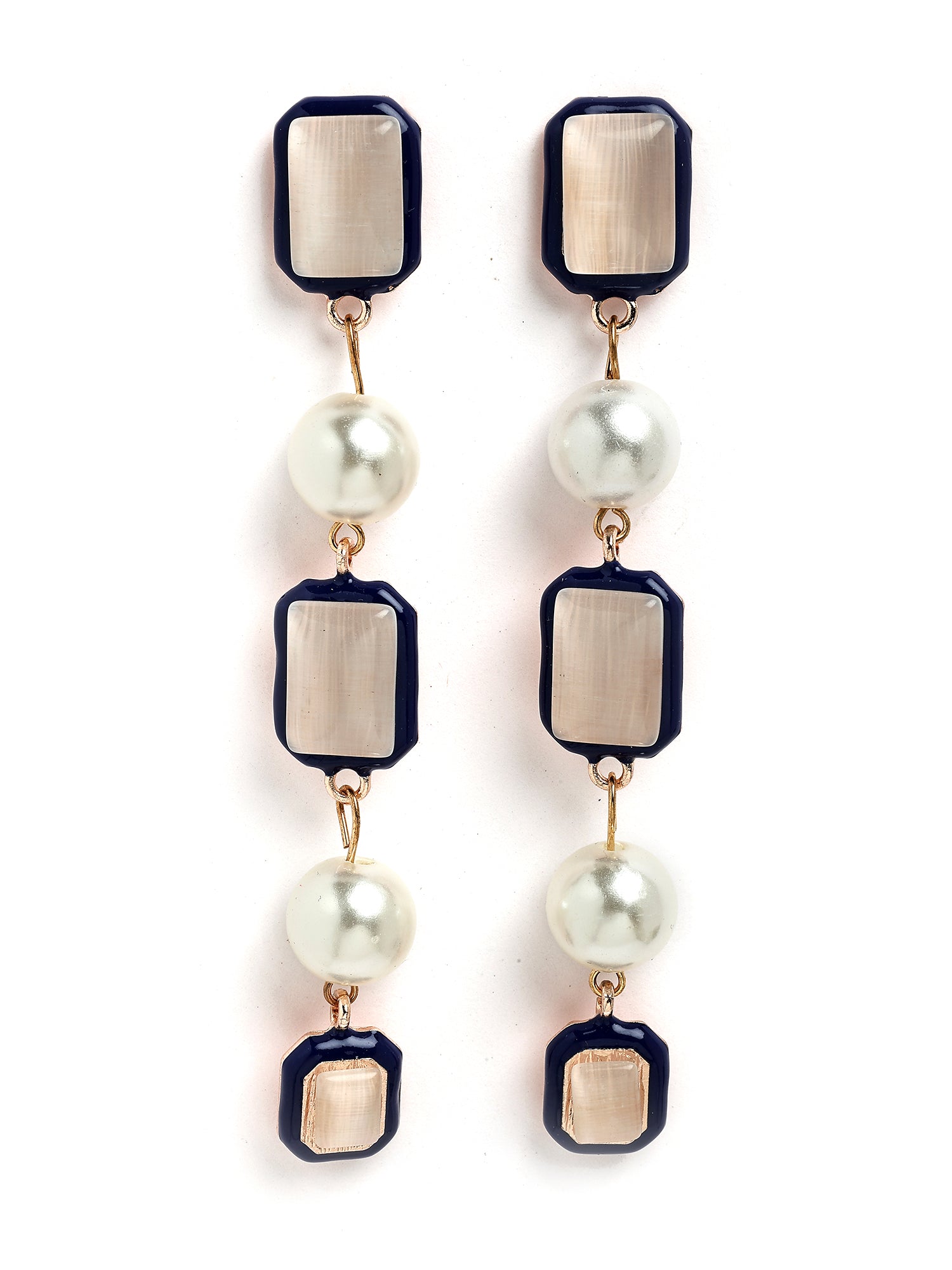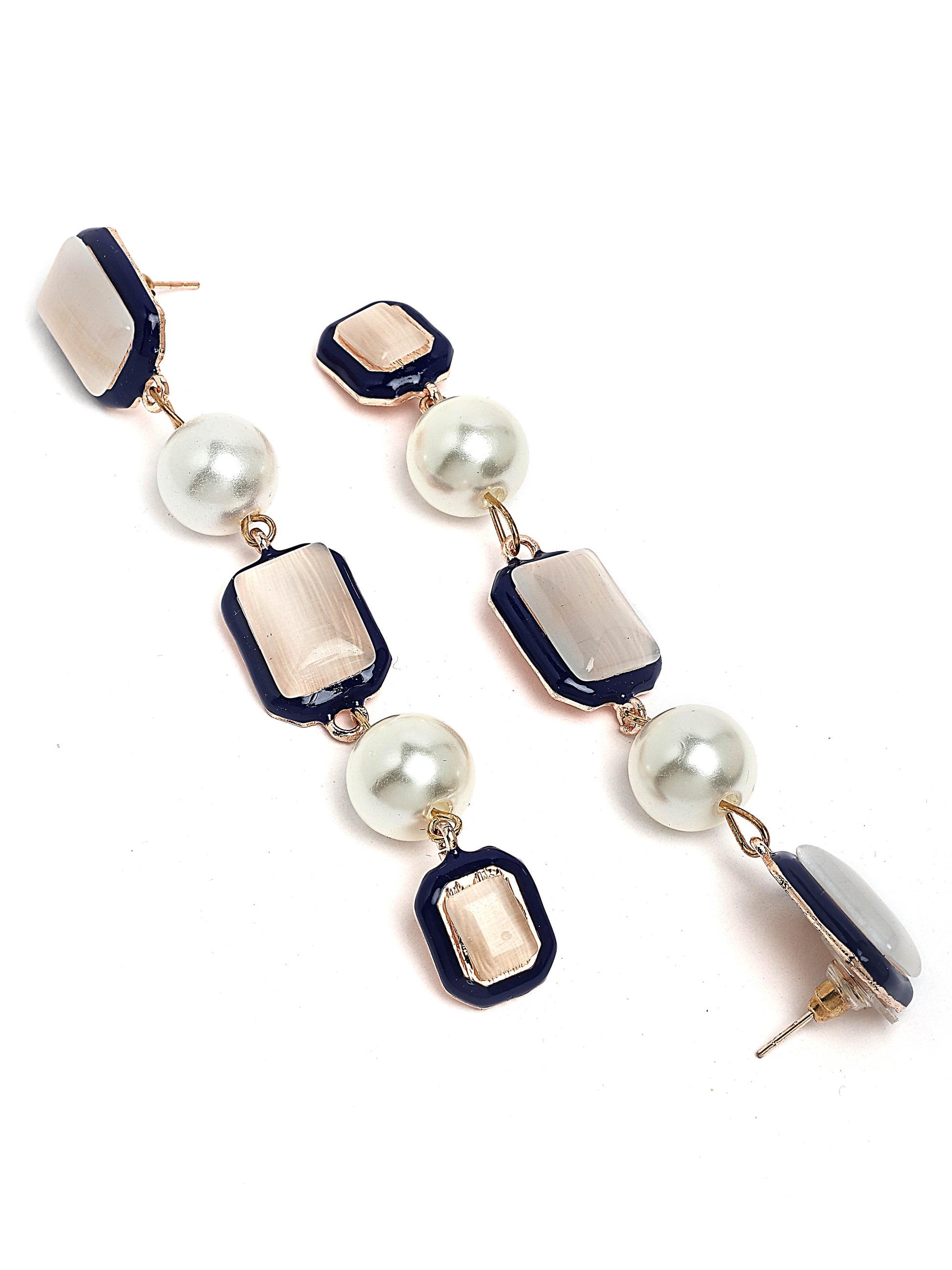 Bohey by KARATCART Gold-Plated Peach Stone Enamel Drop Earrings for Women