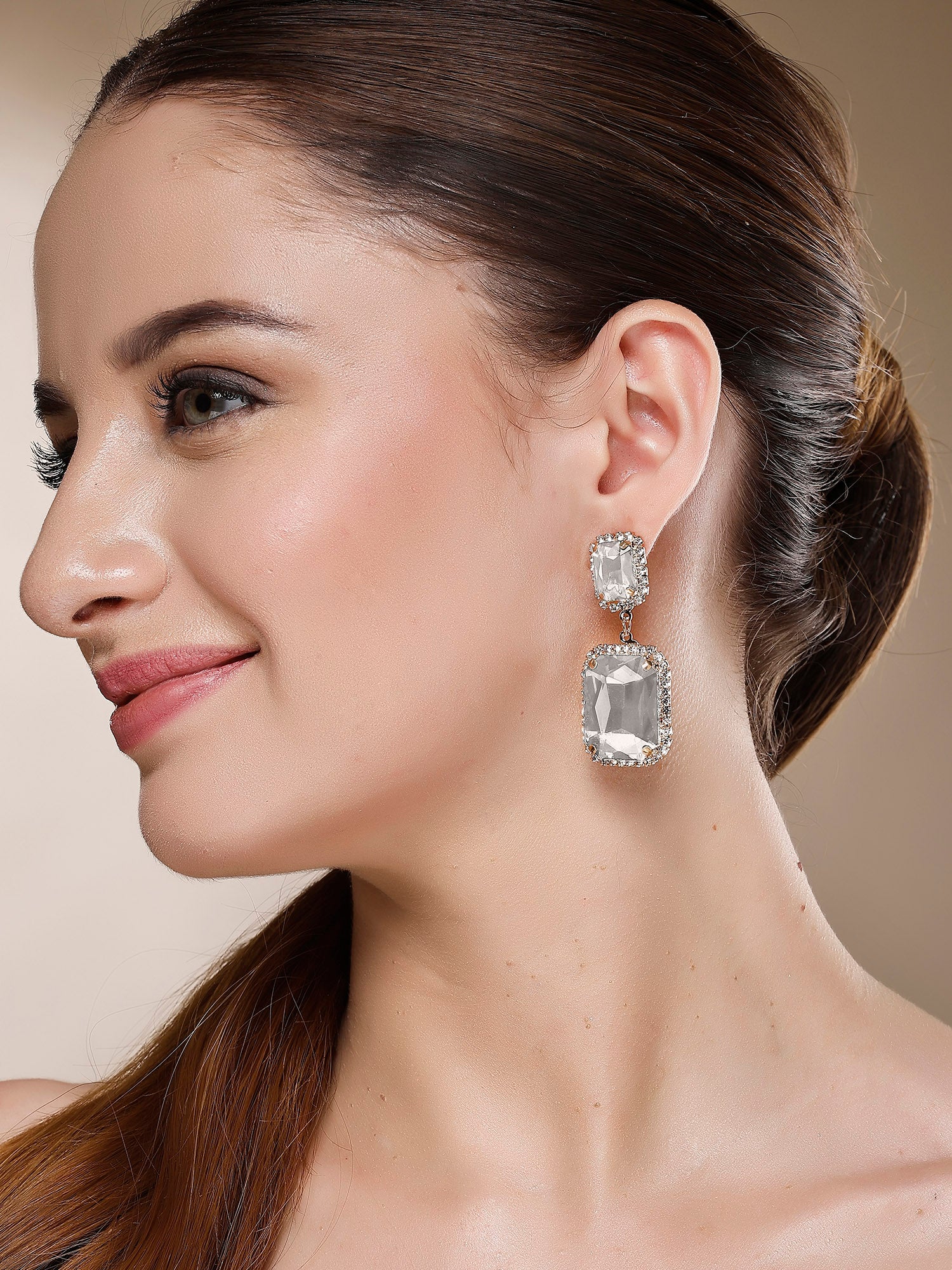 Bohey by KARATCART Gold-Plated Contemporary White Drop Earrings for Women