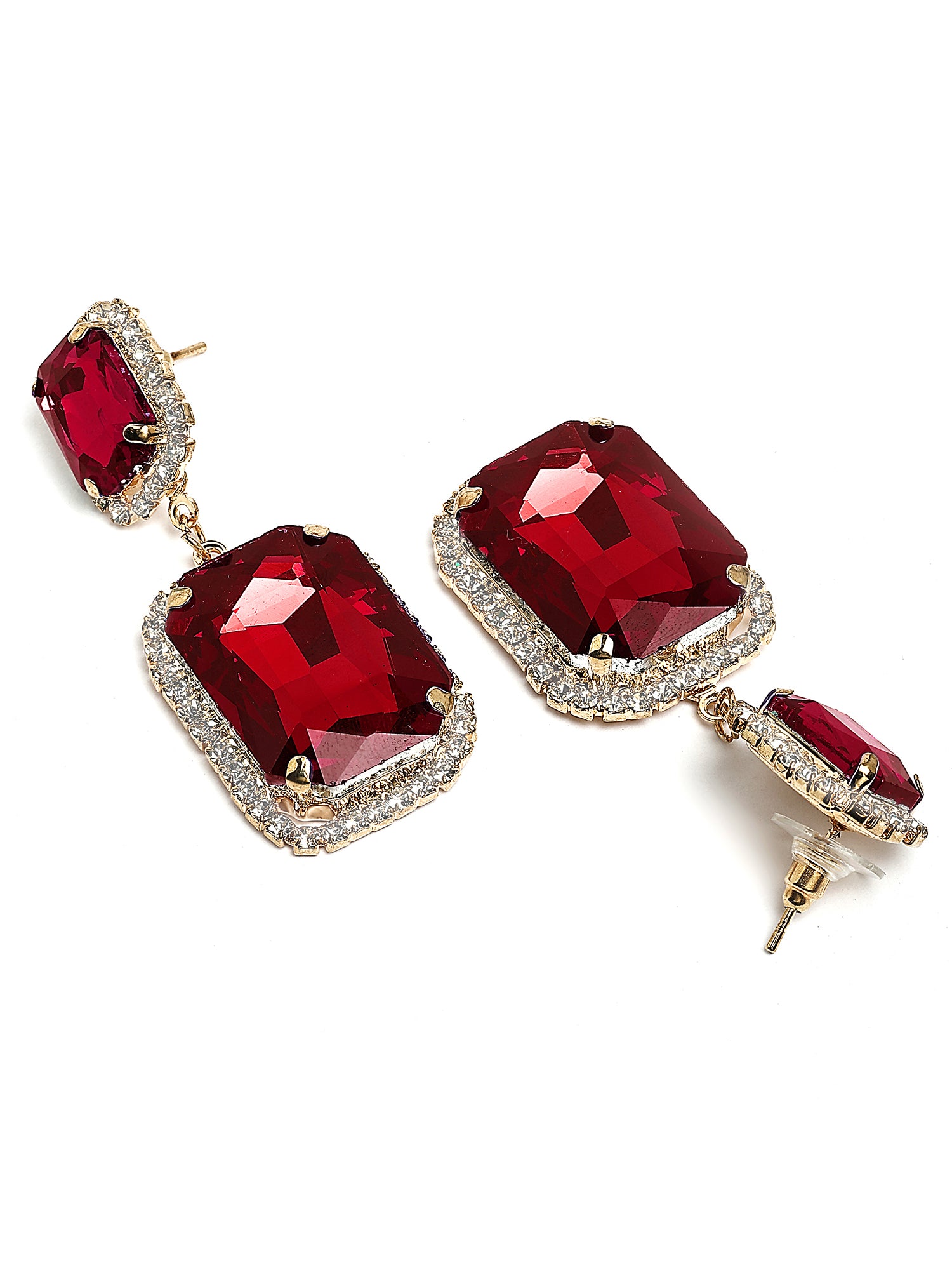 Bohey by KARATCART Gold-Plated Contemporary Red Drop Earrings for Women