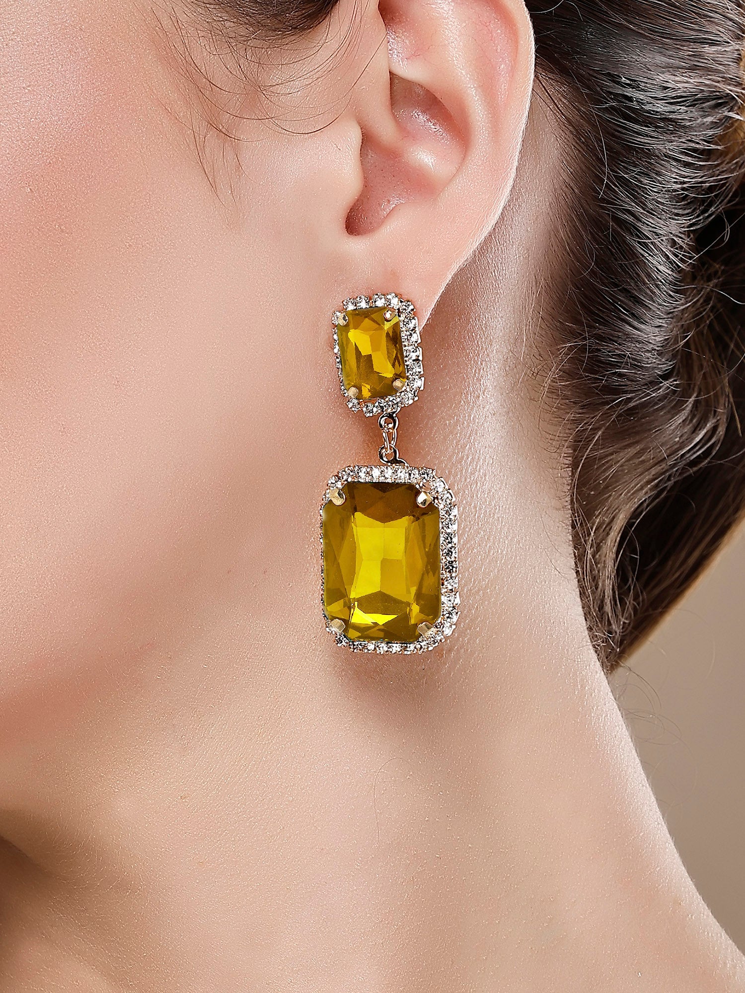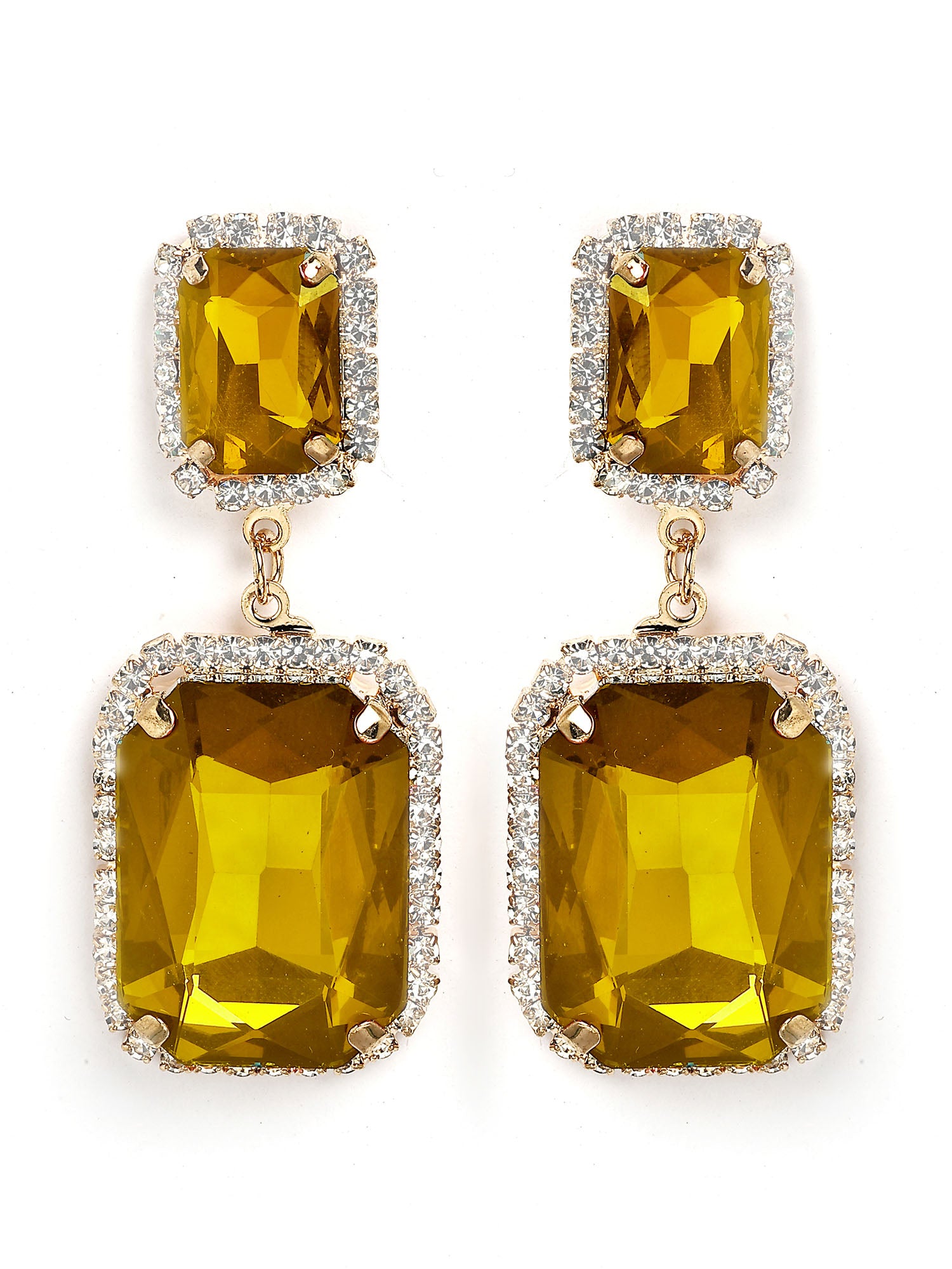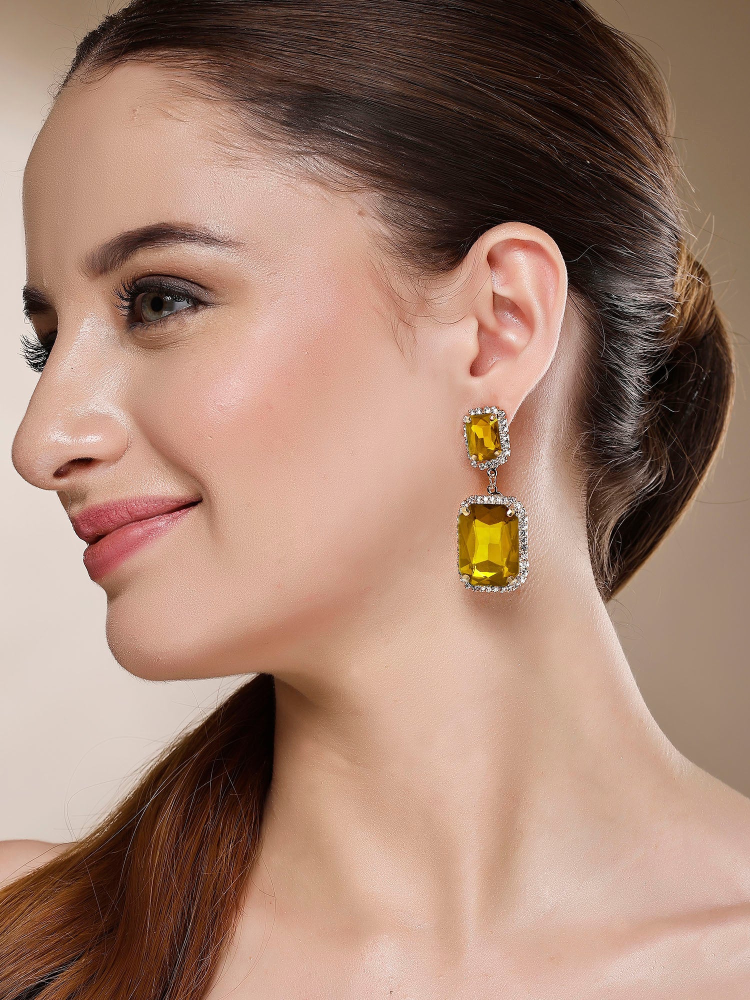 Bohey by KARATCART Gold-Plated Contemporary Yellow Drop Earrings for Women