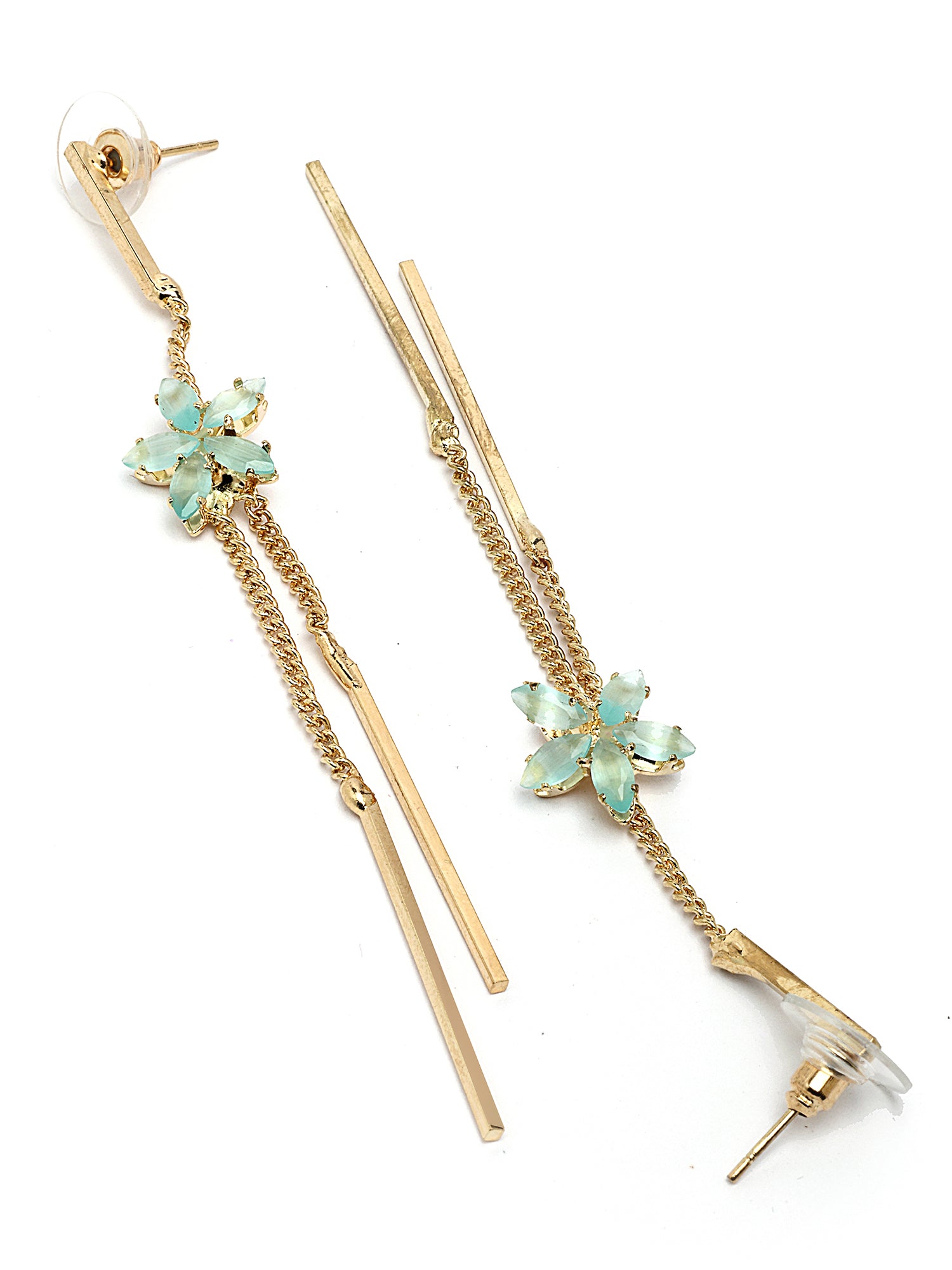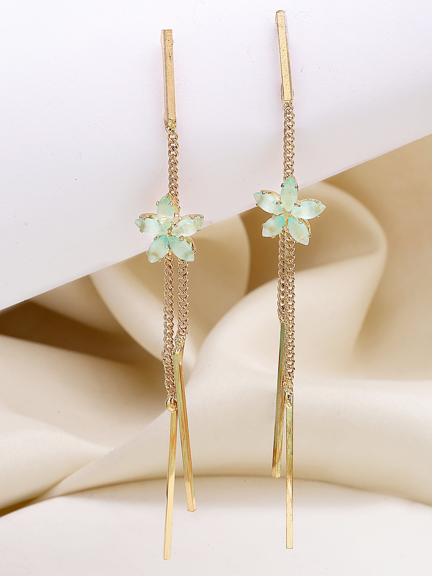 Bohey by KARATCART Gold-Plated Contemporary Sea Green Drop Earrings for Women