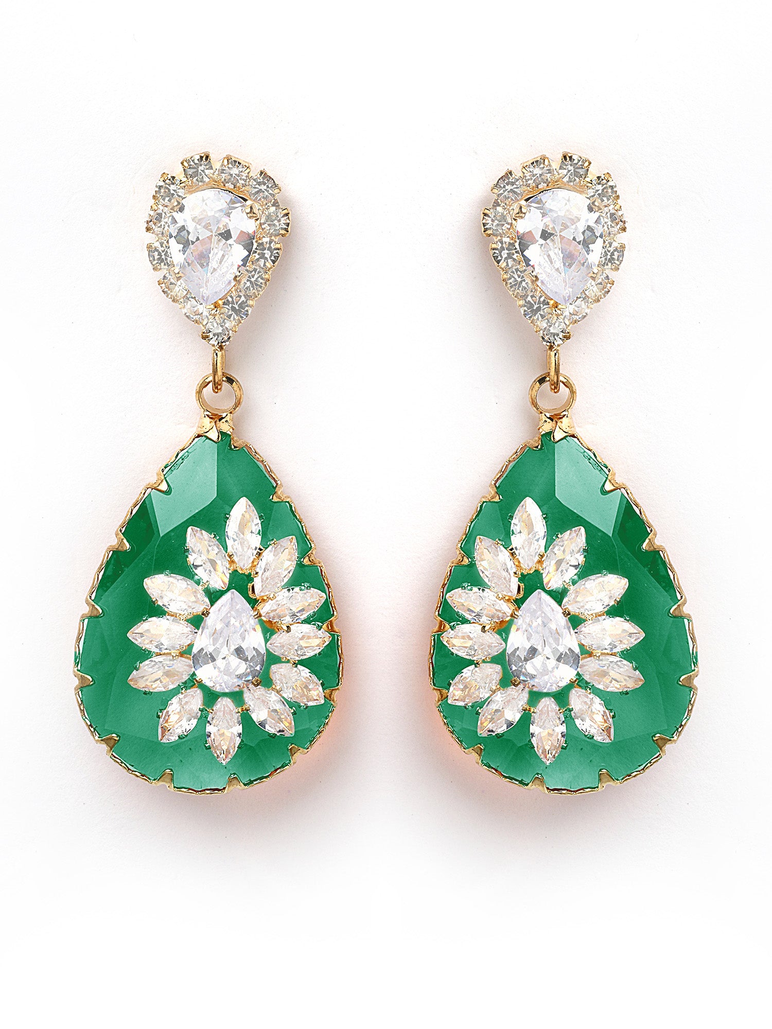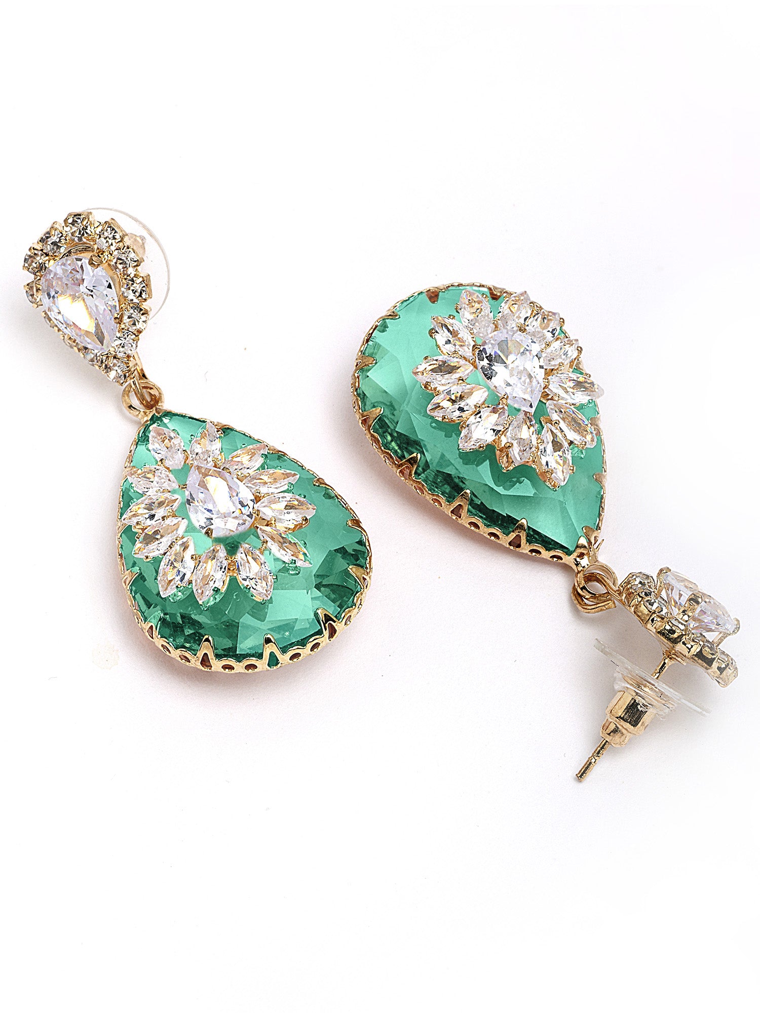 Bohey by KARATCART Gold-Plated Contemporary Green Drop Earrings for Women