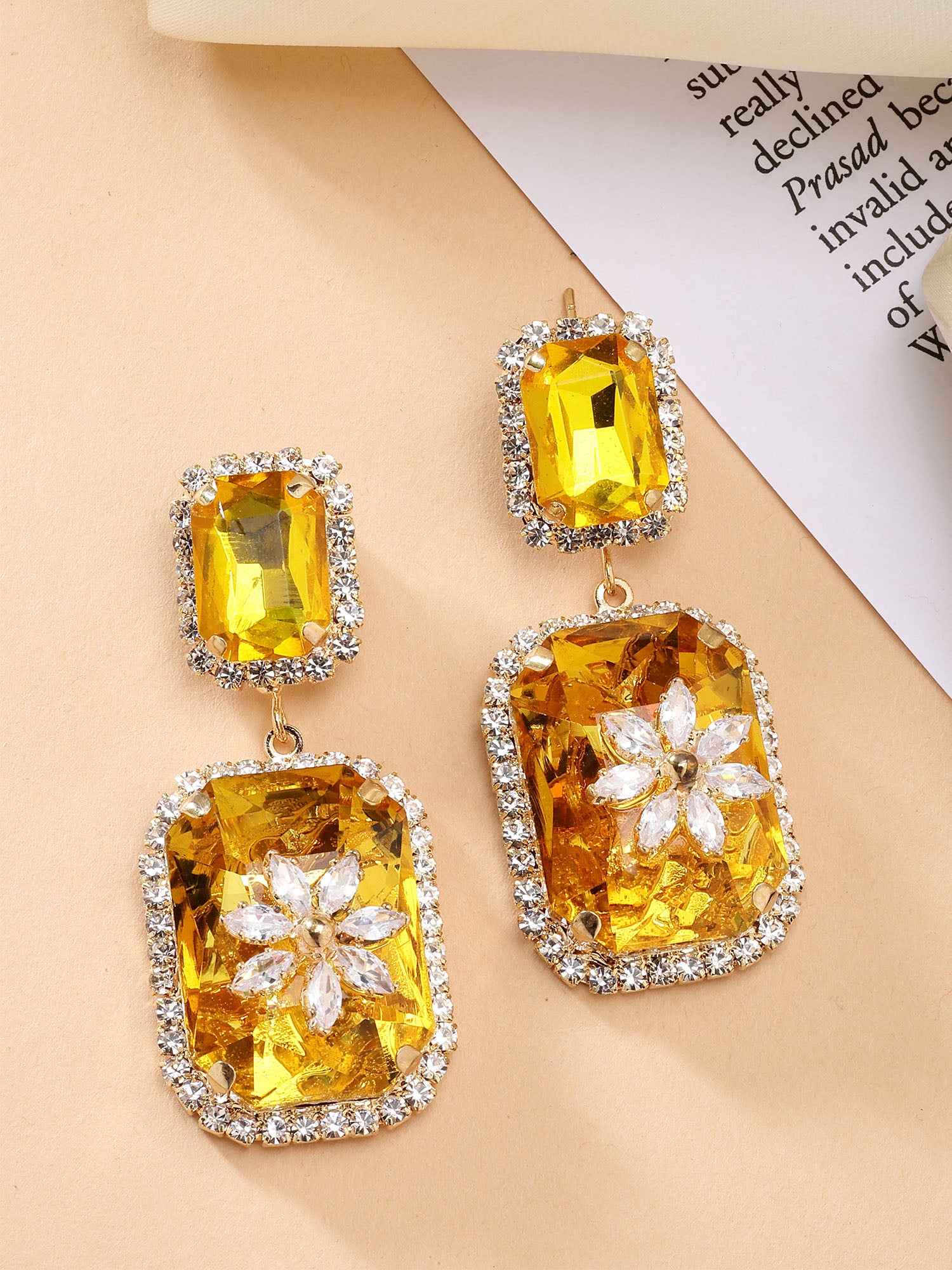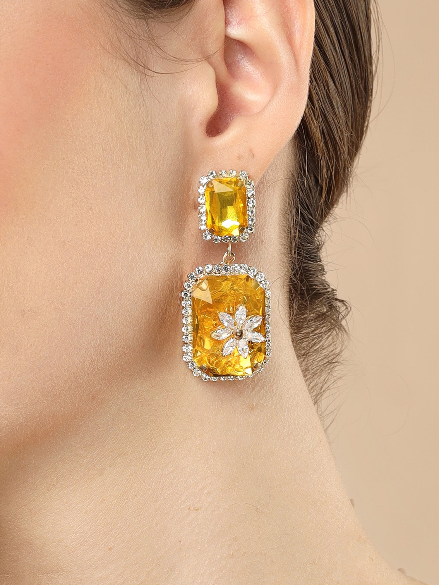 Bohey by KARATCART Gold-Plated Contemporary Yellow Drop Earrings for Women