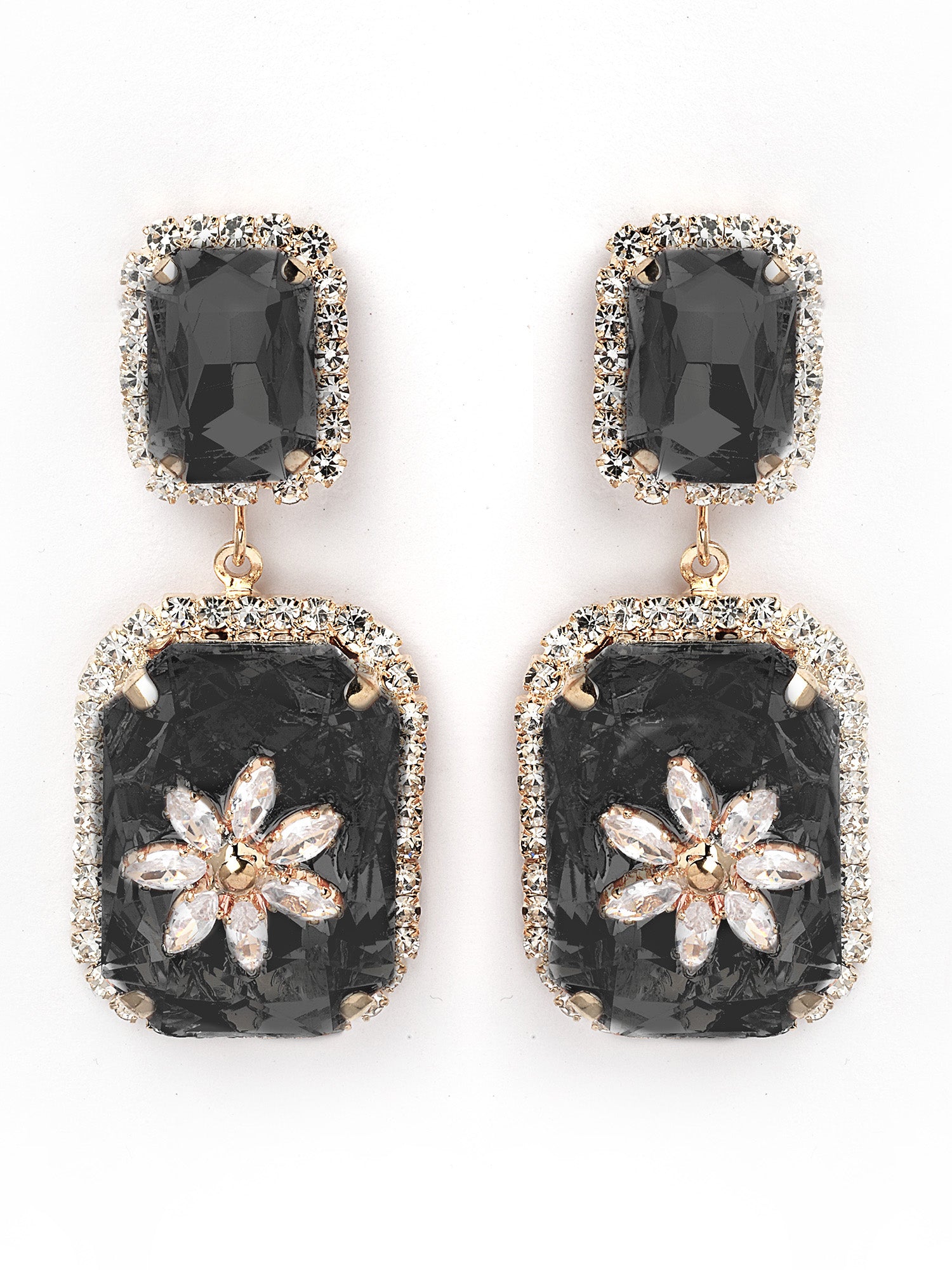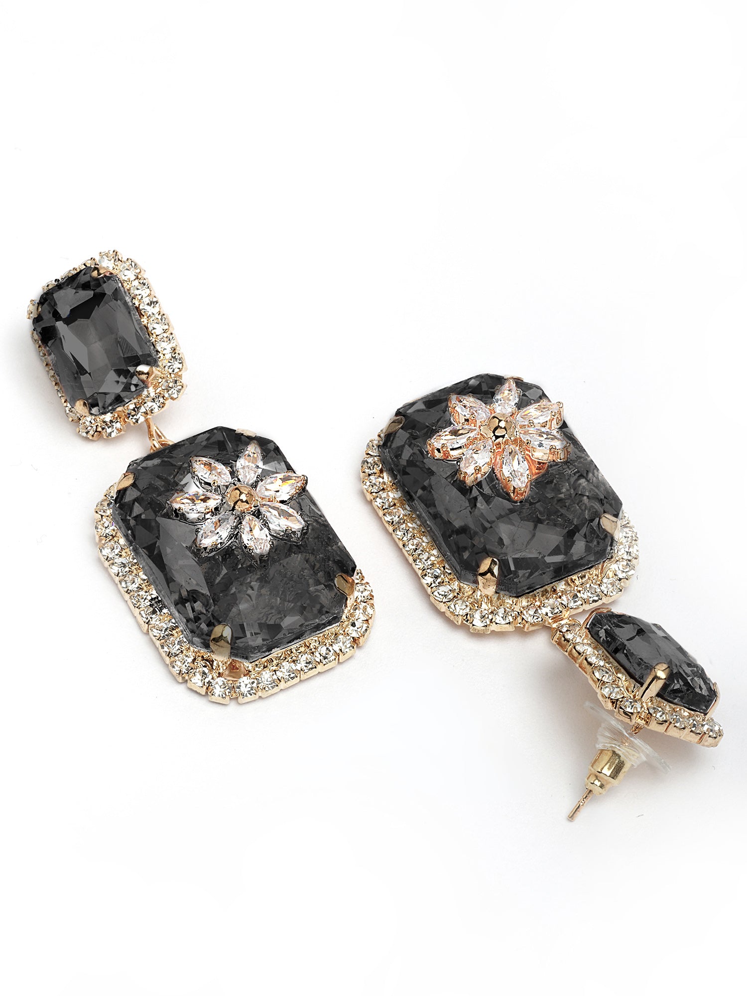 Bohey by KARATCART Gold-Plated Contemporary Black Drop Earrings for Women